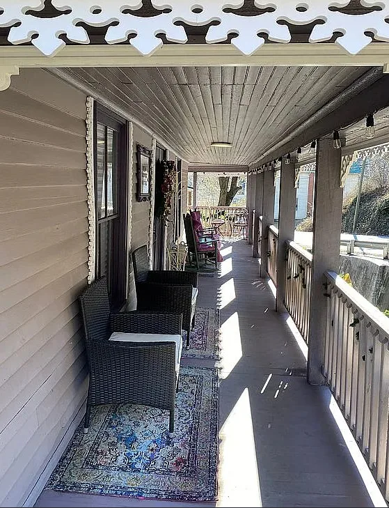 Plum Crooked Poet’s Cottage on Main Street in Marshall is a successful niche short-term rental property affording guests a downtown historical lodging option. Very low cost maintenance, operating expenses and taxes. On offer fully furnished and stocked, the property is a downtown favorite on airbnb and has a robust booking history. A prime Main Street location on the North end of town with the adjacent second old homesite also included for an acre of road frontage. The adjacent lot has direct access from the main driveway bridge but also has an old bridge site which could be replaced for easy in and out accessibility for multiple parking spots.The cottage was originally 2 bedroom but we converted the 2nd into a dining nook and could be reconverted to a 2nd bedroom. The property was untouched by the flood waters and would make a perfect historic location as an office, gallery, shop, short-term rental or a downtown residence. We completed a total renovation in 2020. New Metal Roof Insulation Water Line and Plumbing Electrical Septic line Kitchen Cabinets Granite Countertops Stainless Sink and Faucet Refrigerator Gourmet Convection Stove Bathroom Fixtures Wood Floors Covered Back Porch Deck French Drain Paint Interior/Exterior Gingerbread Trim Driveway Safety Posts Wraparound Porch Restoration Landscape Garden Beds Windows Front Door Fiber Internet with French Broad It is move in ready for a downtown residence or office/shop location.