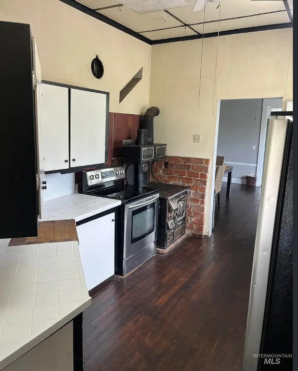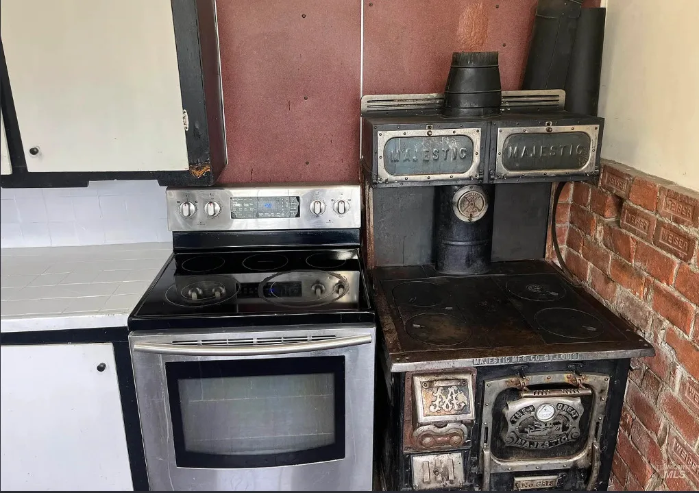 This is a nice house! Love the old stove! The house was built in 1907. It is located on .65 acre in Midvale, Idaho. The house features a covered front porch, wood floors, crown moulding, picture rails, wide baseboards, window seating and a great antique stove. There is a detached garage. Four bedrooms, two bathrooms and 2,310 square feet. $275,000