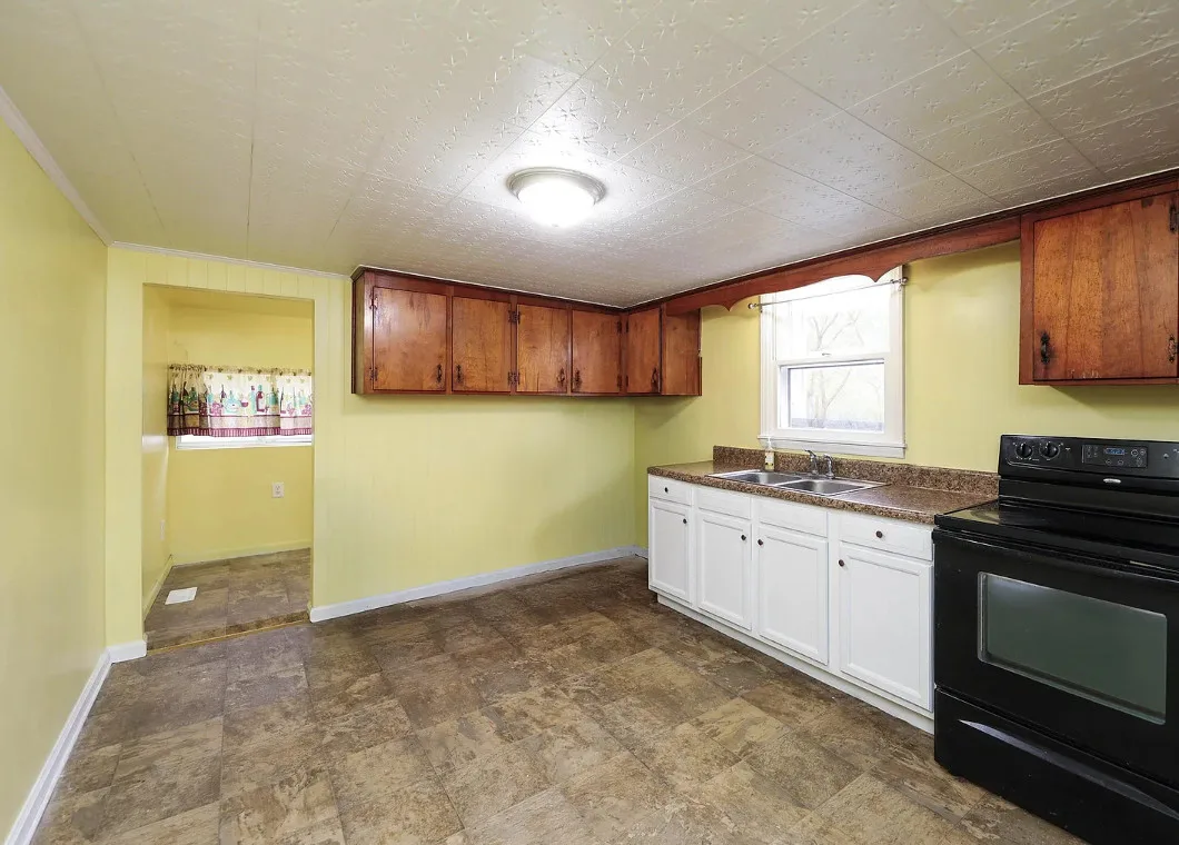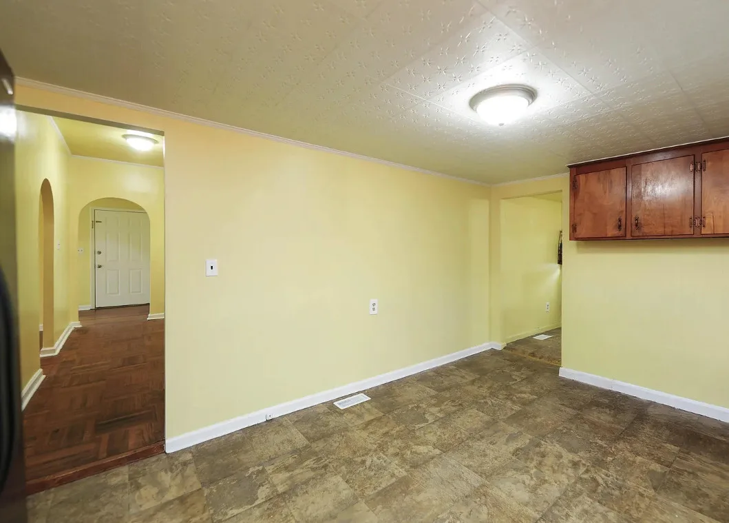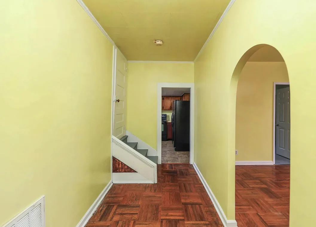 This house has a lot of potential! Looks livable. One could move in and work room by room! The house was built in 1900.It is located on two acres in Troutdale, Virginia. The house features wood floors, arched entryways, parquet flooring and baseboards. This is a pretty area of Virginia. Four bedrooms, one bathroom and 1,454 square feet. $150,000