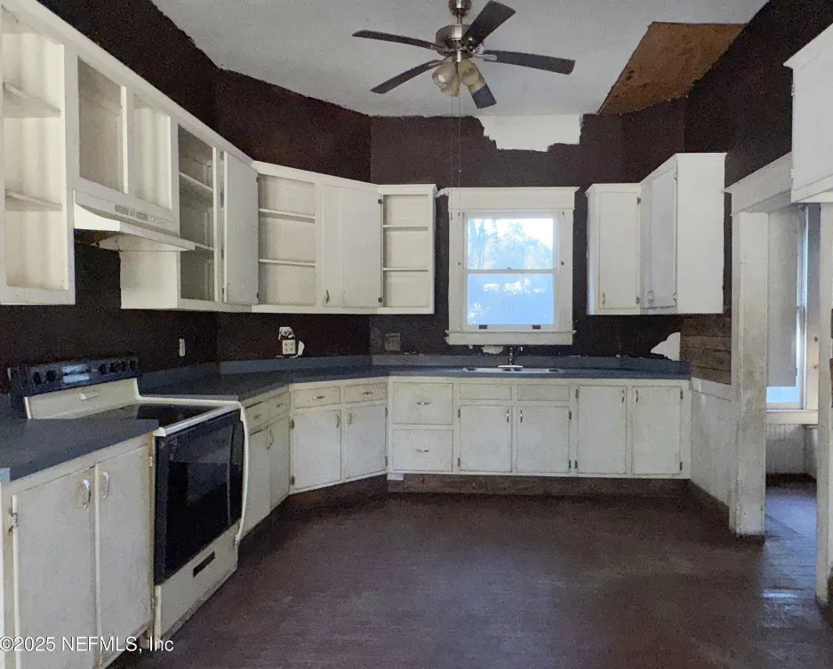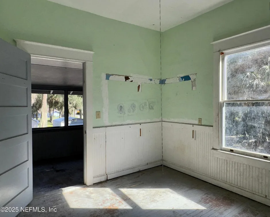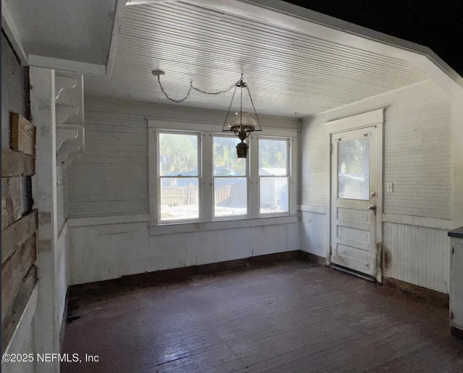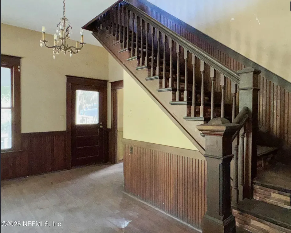 This house has a pretty staircase! There is a lot of potential! The house was built in 1910. It is located on .43 acre in Seville, Florida. The house features a wrap around porch, screened in back porch, original wood floors, nice staircase, crystal chandelier, bead board wainscoting and tall ceilings. There are a couple of storage sheds on the property. Four bedrooms, two bathrooms and 2,391 square feet. $212,900