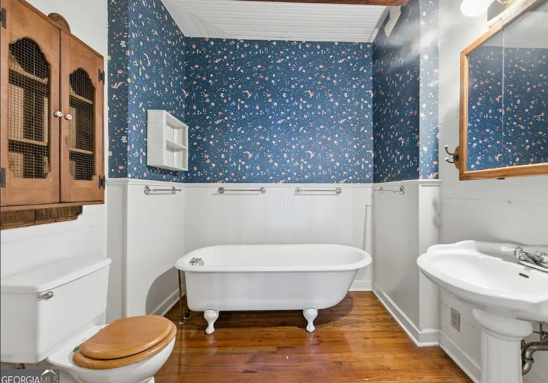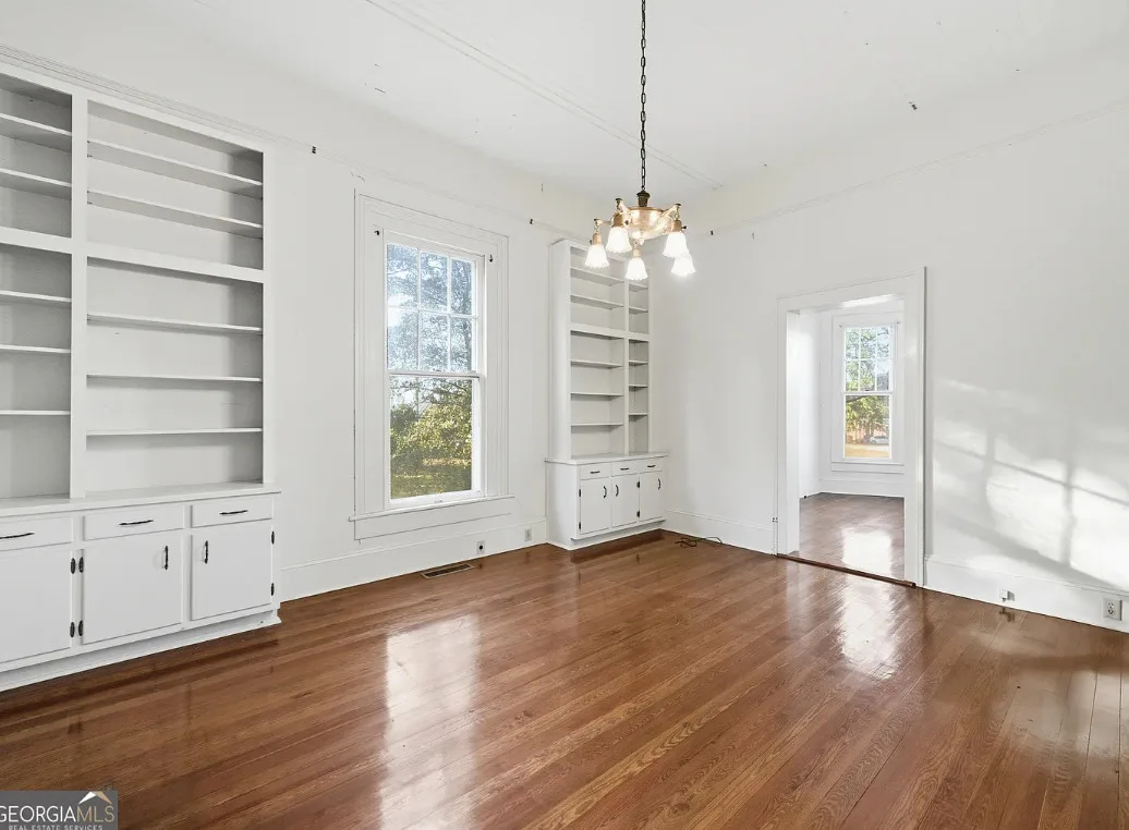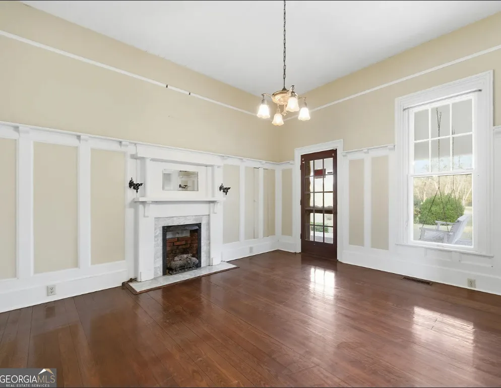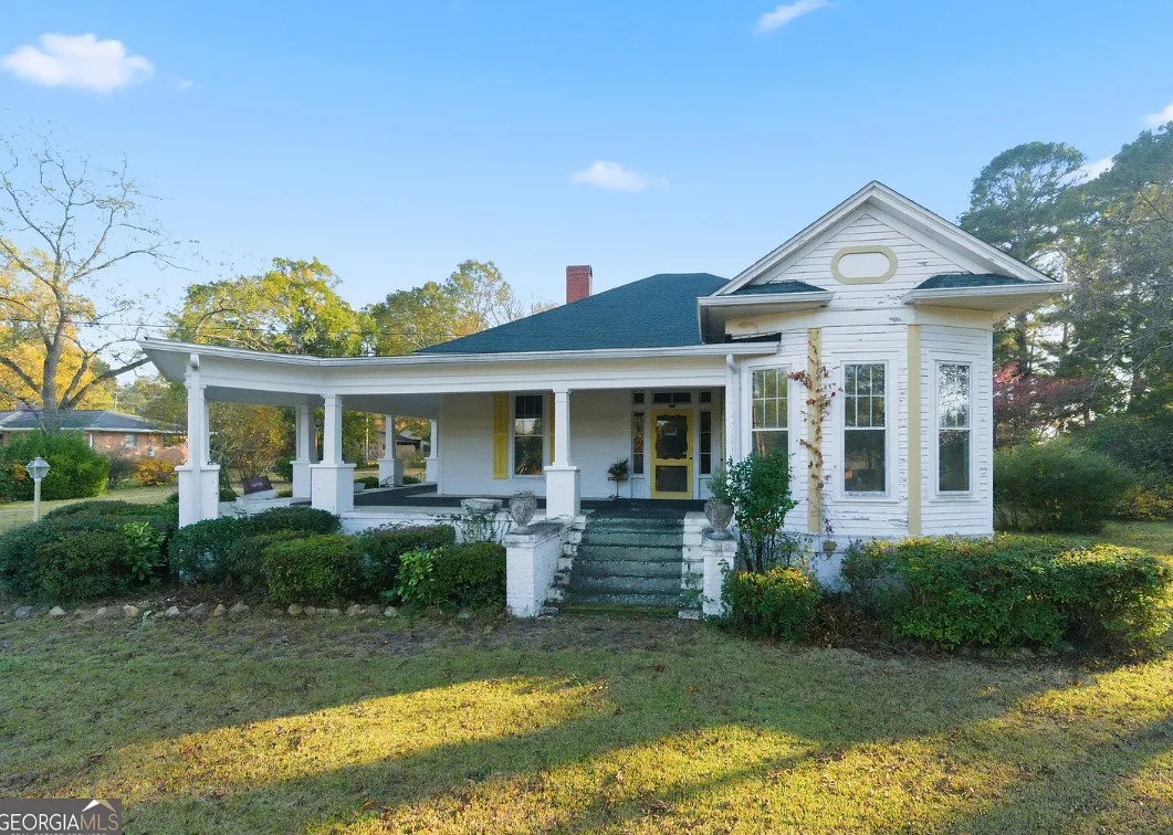 This house has a unique looking porch! The house was built in 1858. It is located on 2.08 acres in Barnesville, Georgia. The house features a large wrap around front porch, wood floors, wainscoting, baseboards, picture rails, vintage light fixtures, built-ins and a carport. There is a large detached garage. Three bedrooms, two bathrooms and 2,091 square feet. $265,000