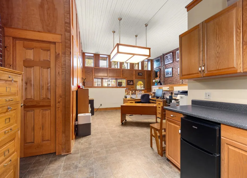 A unique opportunity to experience studio/loft living on Holton’s thriving, Downtown Square. Live in the loft and utilize the ground level office yourself or rent it out. Or vice versa. Let the natural light shine in as you soak up the high end finishes with brick and hardwoods in the open floor plan! The office space offers large reception area and 3 offices/conf rooms PLUS a large rec room. High windows front and back offer more natural light in office space on ground level.
