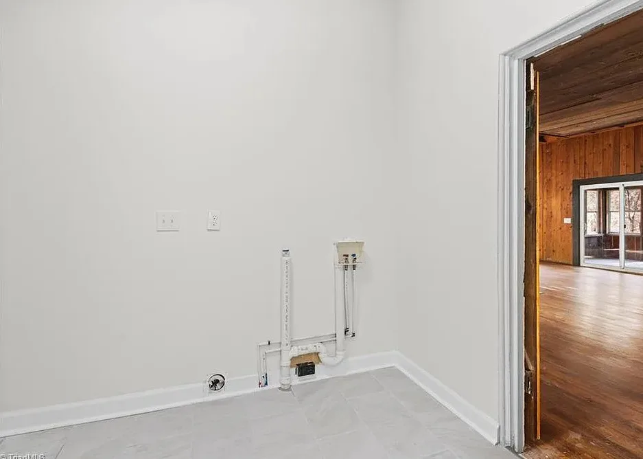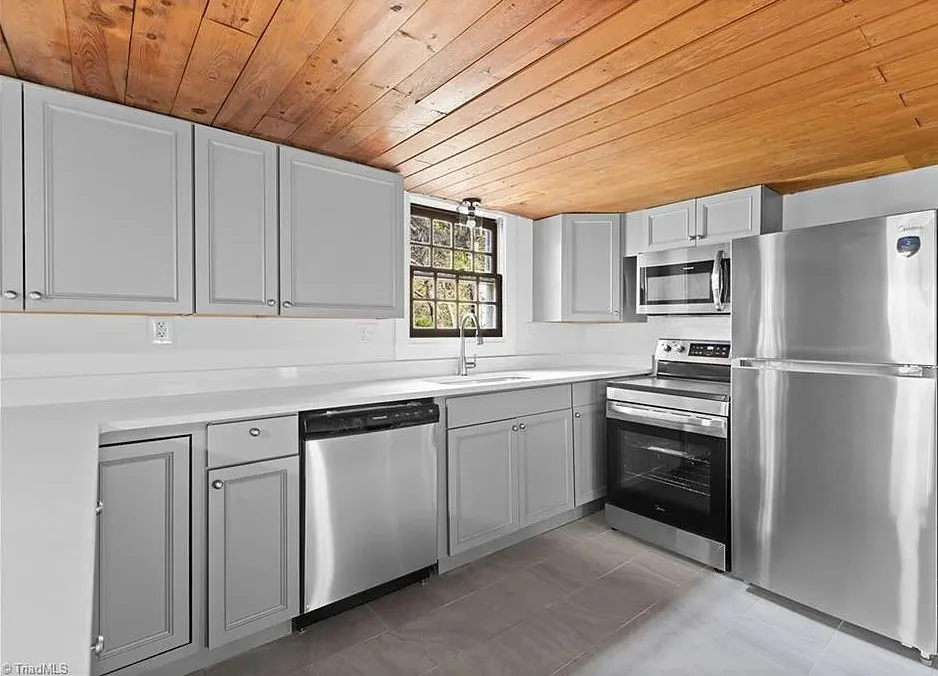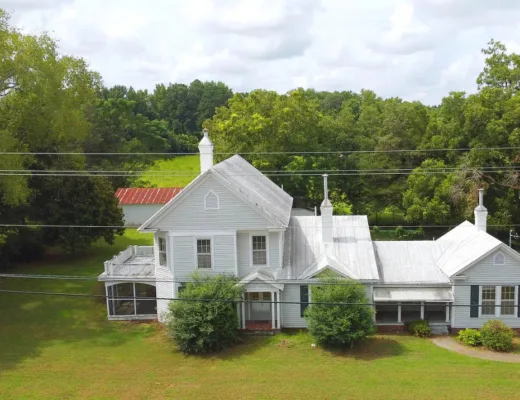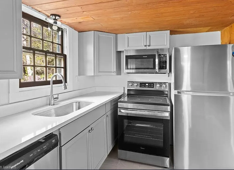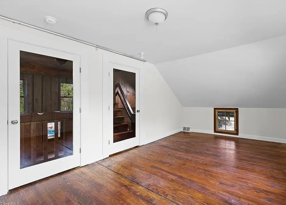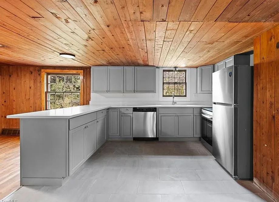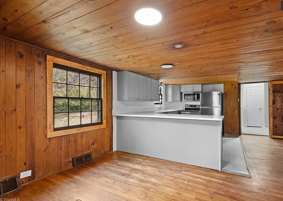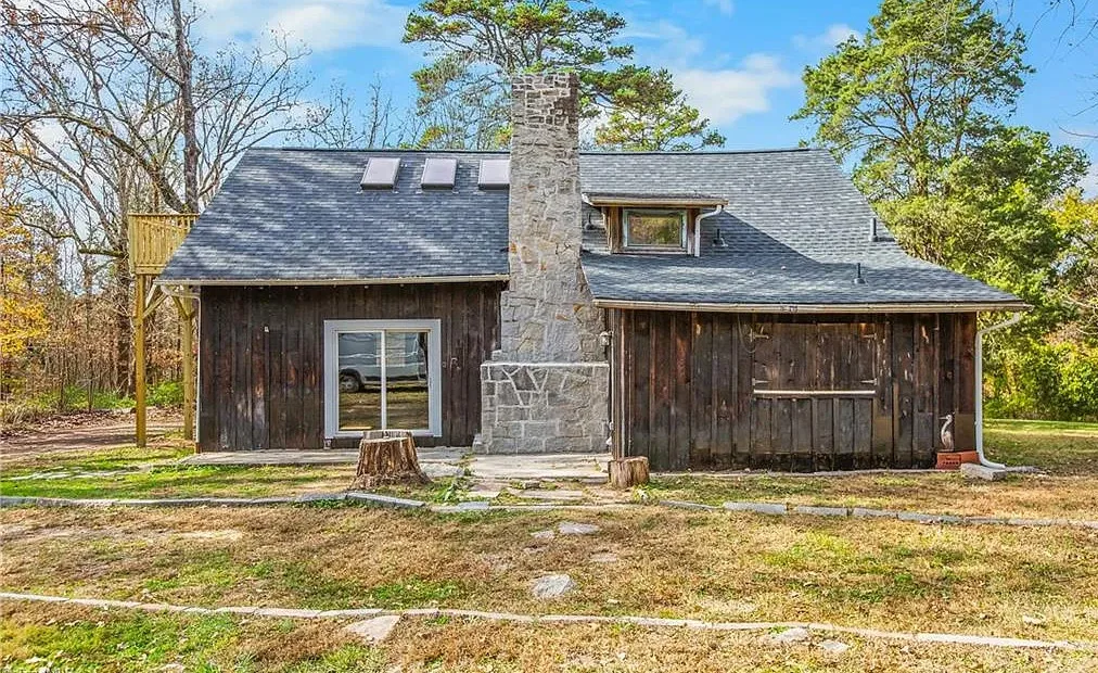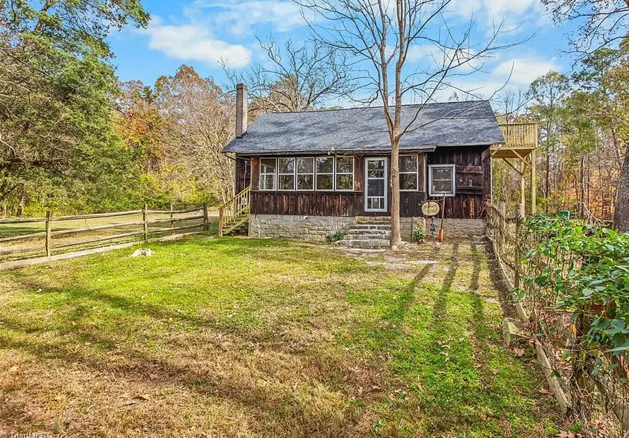 I love a house with a long driveway! I bet this one is really pretty in spring and summer! This is known as Woodland Lodge. It was built in 1930. Woodland Lodge is located o 1.47 acres in Granite Quarry, North Carolina. The house features a large stone chimney, enclosed porch, large fireplace, wood floors, exposed beams and rich woodwork. I am not a fan of that kitchen. It needs a total overhaul. This price seems reasonable. Two bedrooms, two bathrooms and 1,696 square feet. $250,000