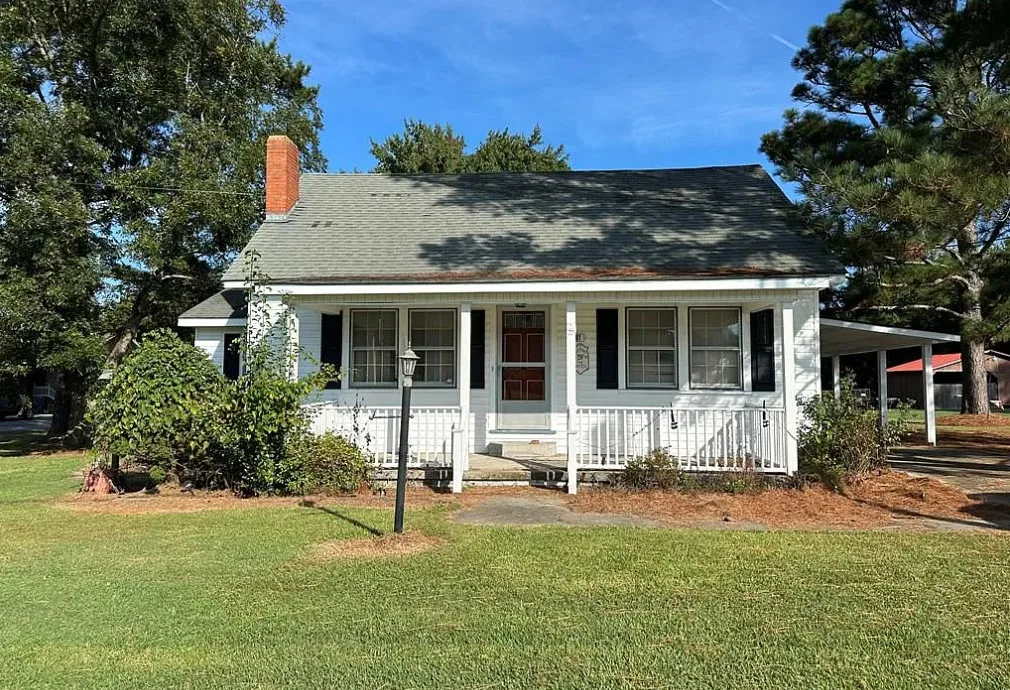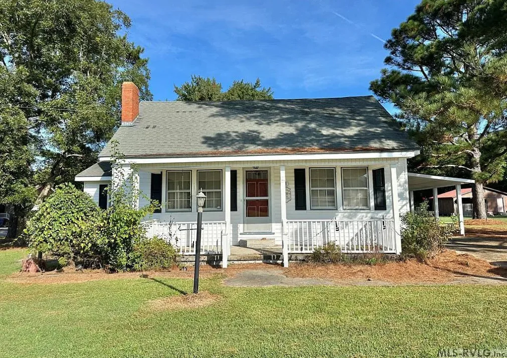 This house has a lot of potential! It could be really cute! The house was built in 1950. It is located on .80 acre in Ahoskie, North Carolina. The house features a covered front porch, carport, original wood floors, vintage tile, wide baseboards, original mantels, crown moulding and a spacious kitchen. There is a detached storage building on the property. Three bedrooms, two bathrooms and 1,580 square feet. $134,900