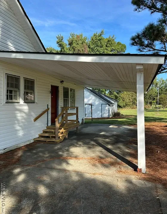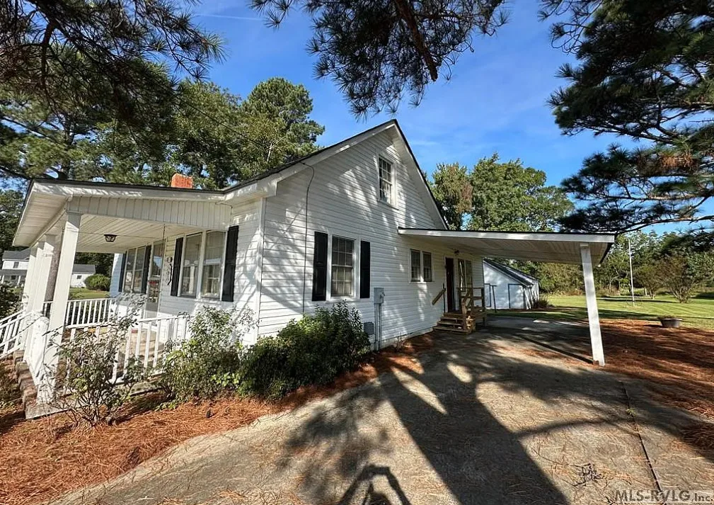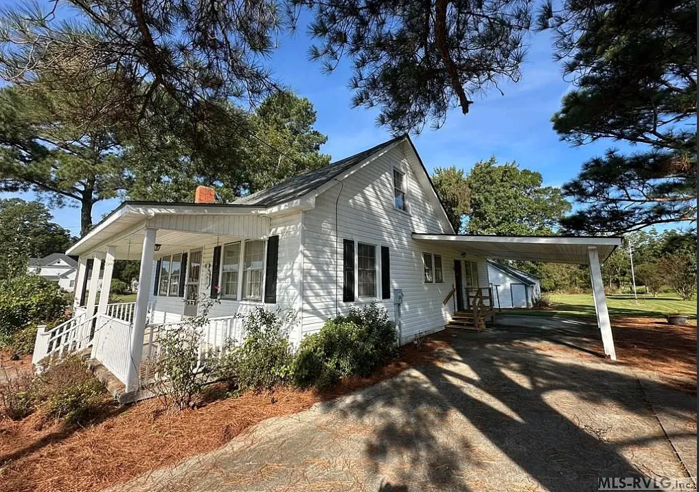 Put your own finishing touches and updates on this cozy farmhouse style home that is just waiting for a new family. Located in the quaint town of Powellsville, NC, this home is situated on a beautiful lot and features a welcoming front porch and attached carport. Walk in the side door, to a country style porch entry with a place for washer & dryer hookup and room for a freezer and a place to kick off your shoes and hang your hat. The eat-in kitchen has ample cabinet space and includes the range & refrigerator. The adjoining dining room and living room both have beautiful hardwood floors and archways and you’ll also find a cozy fireplace in the living room. Down the hall you’ll find three bedrooms. The primary bedroom is spacious and has double closets and a private bath with walk in shower. The other two bedrooms share a 2nd full bath with tub. This home has nice floored attic space, a concrete drive and a storage shed in the back yard. Bring your farmhouse vision to life, as you update and make this the home you’ve been dreaming about.