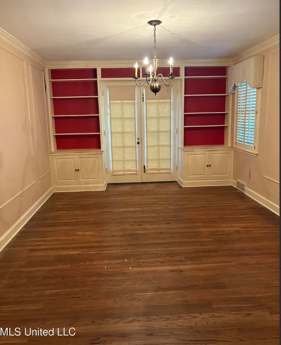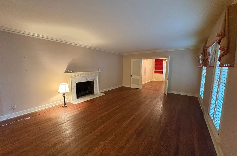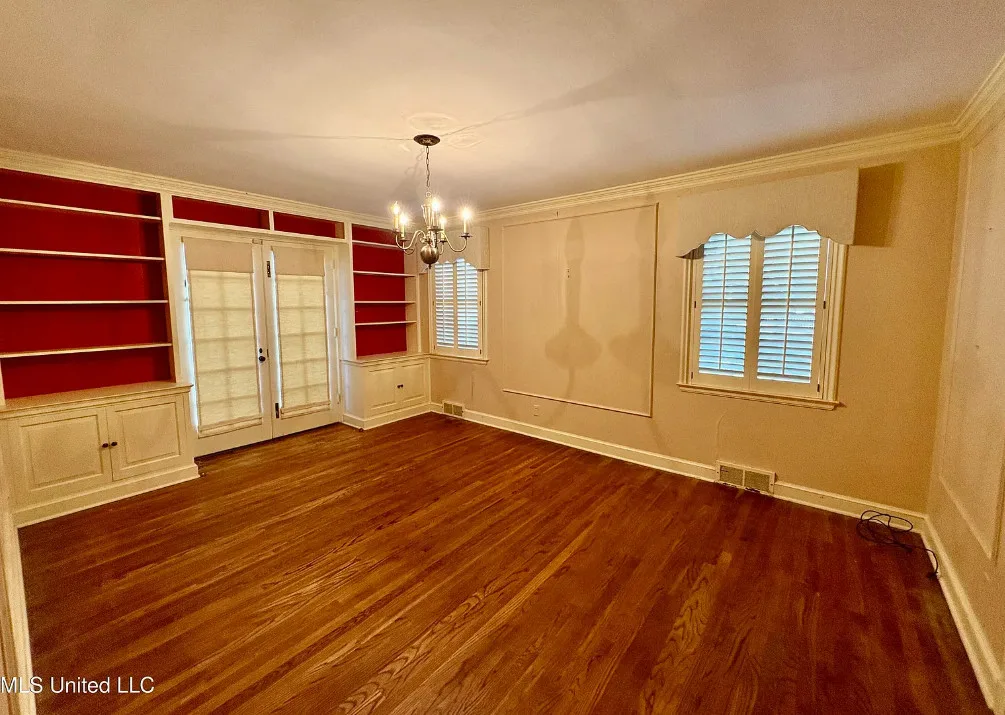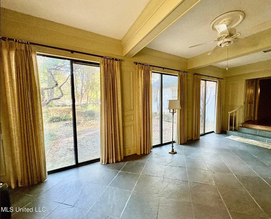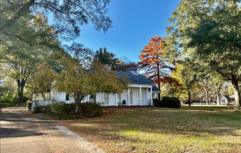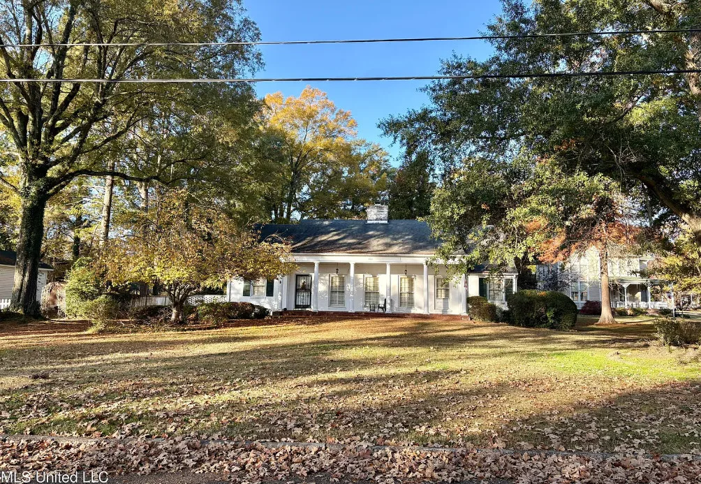 This house has a park-like setting! I love the front porch! The house was built in 1947. It is located on .72 acre in Senatobia, Mississippi. The house features a large covered front porch, wood floors, pretty mantels, french doors, wide baseboards, crown moulding, wainscoting, built-in bookshelves and exposed beams. There is a detached garage on the property. Three bedrooms, three bathrooms and 3,152 square feet. $299,900