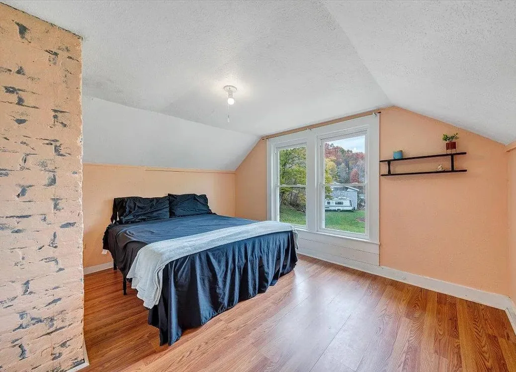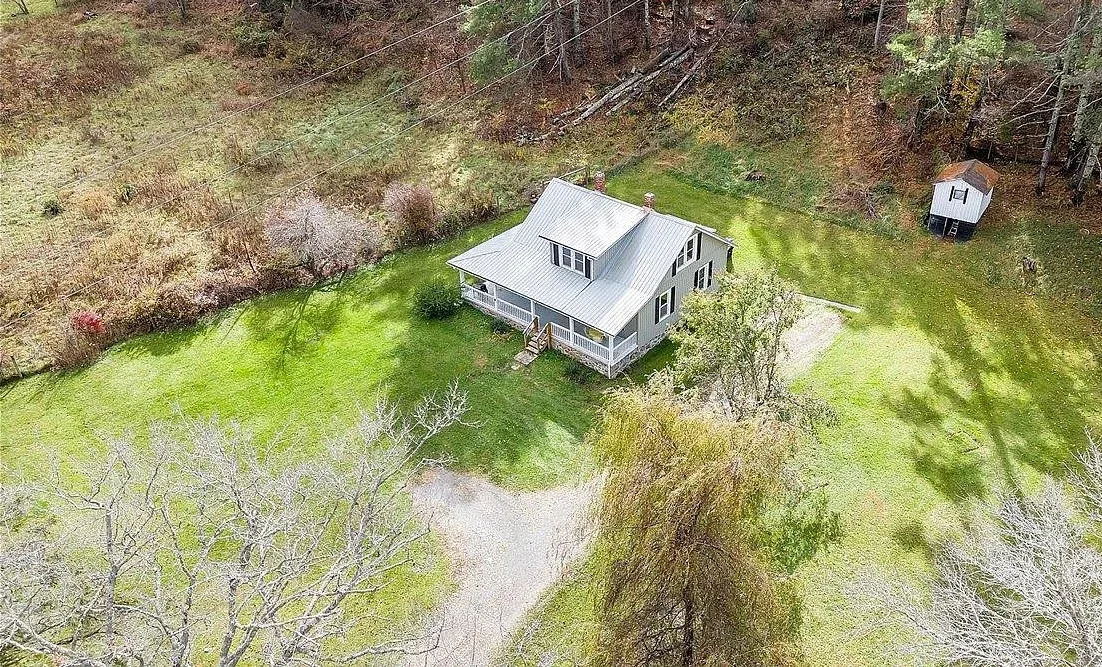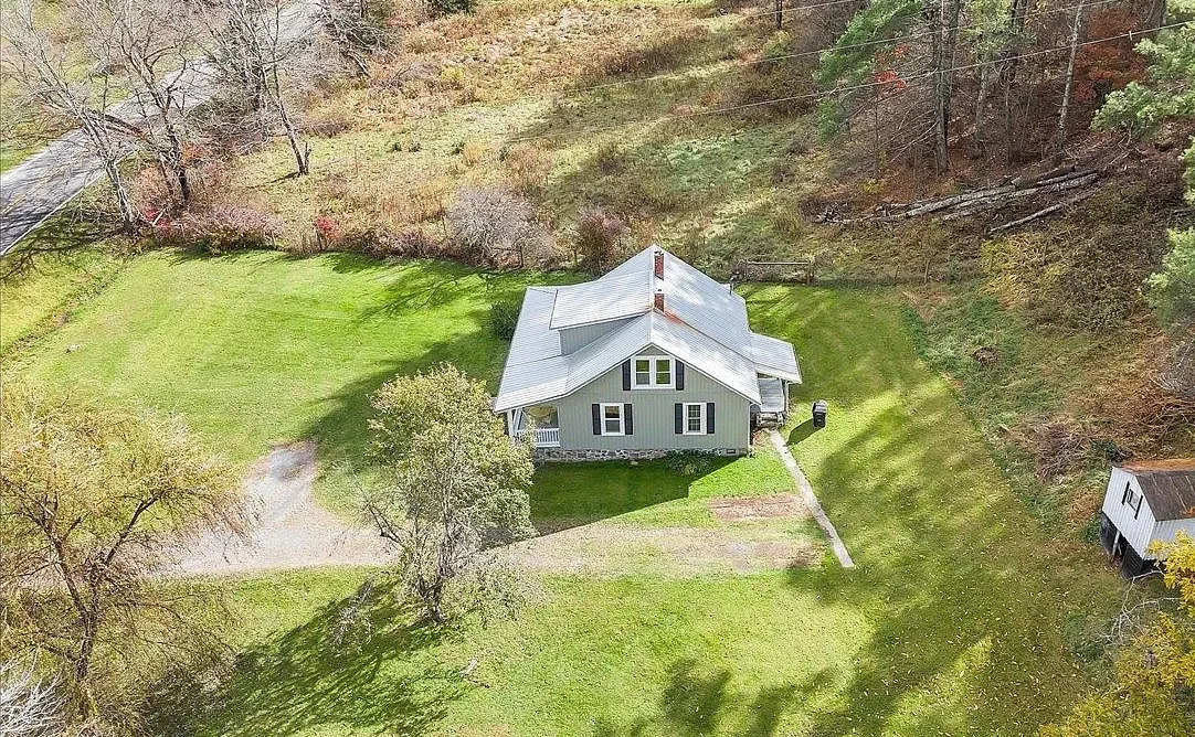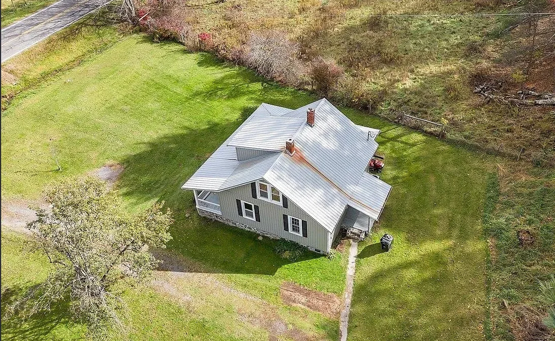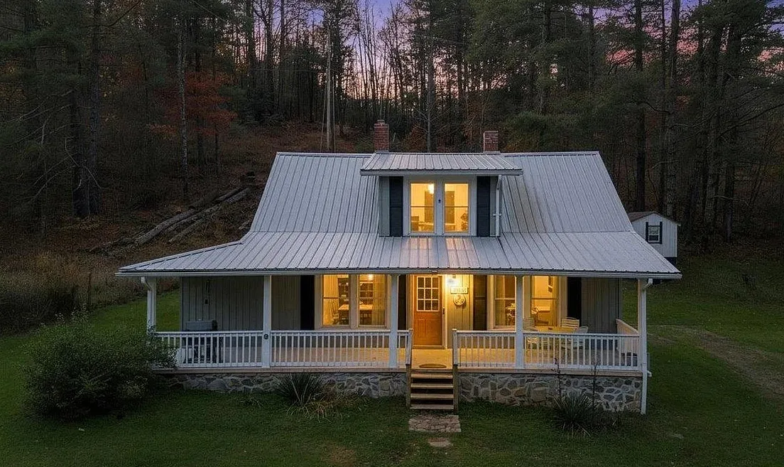 Welcome to this beautifully refreshed farmhouse set on just over half an acre with peaceful creek frontage! The main level features a warm, inviting living room with a freestanding gas fireplace, solid wood floors, and an eat-in kitchen with all major appliances. There’s also a dining area, a main-level bedroom with built-in shelving, and a full bath with washer and dryer hookups for added convenience. Upstairs, you’ll find three bright bedrooms and two large hallway closets for extra storage. Recent updates include new vinyl siding, a metal roof, replacement windows, fresh paint, and a heat pump for year-round comfort. Enjoy outdoor living on the spacious covered front porch or the private back porch overlooking the water. Conveniently located just minutes from downtown Hillsville, I-77, and the Blue Ridge Parkway—this move-in-ready home blends modern comfort with timeless charm!