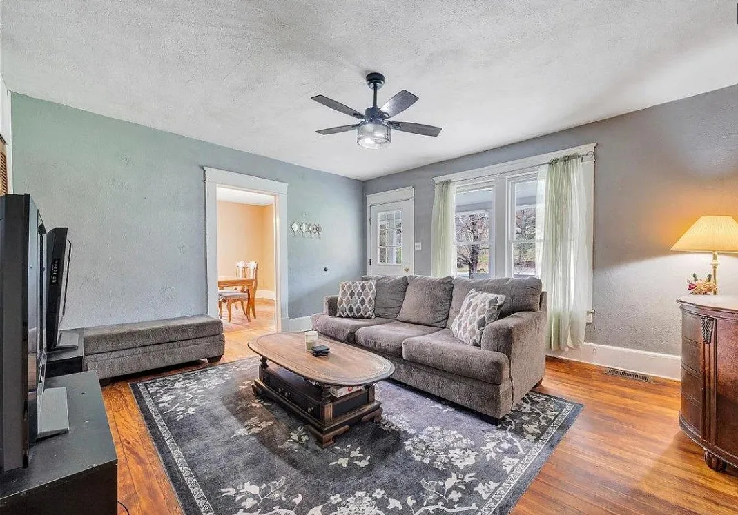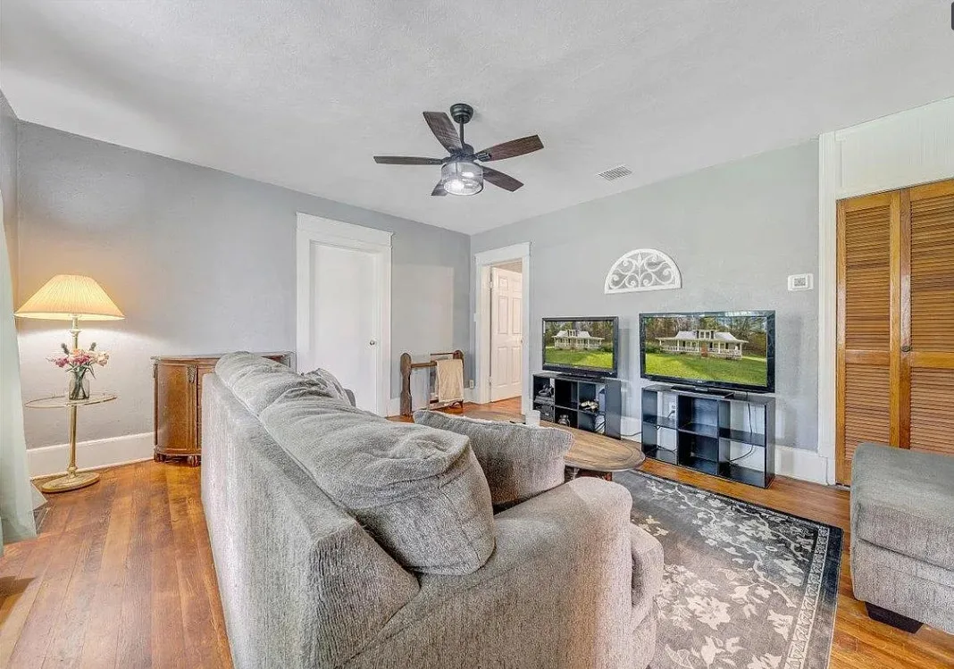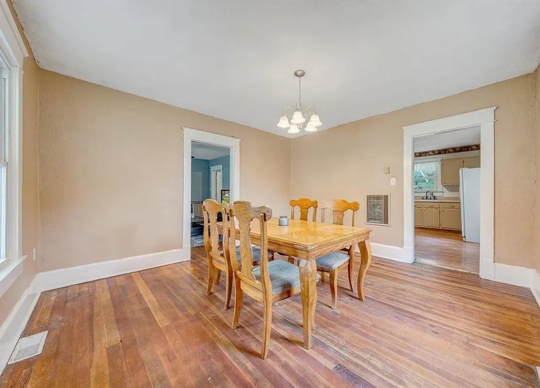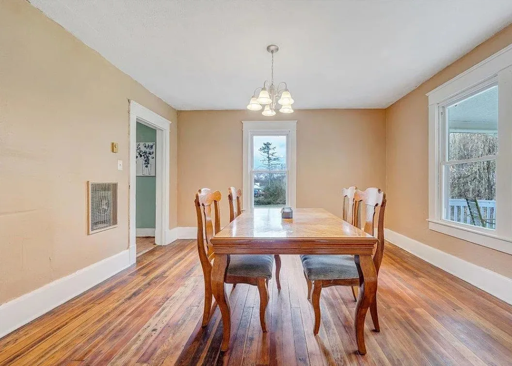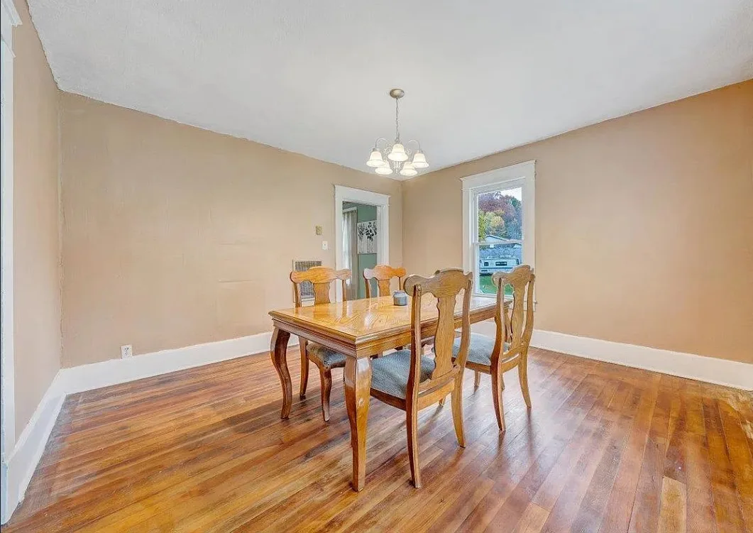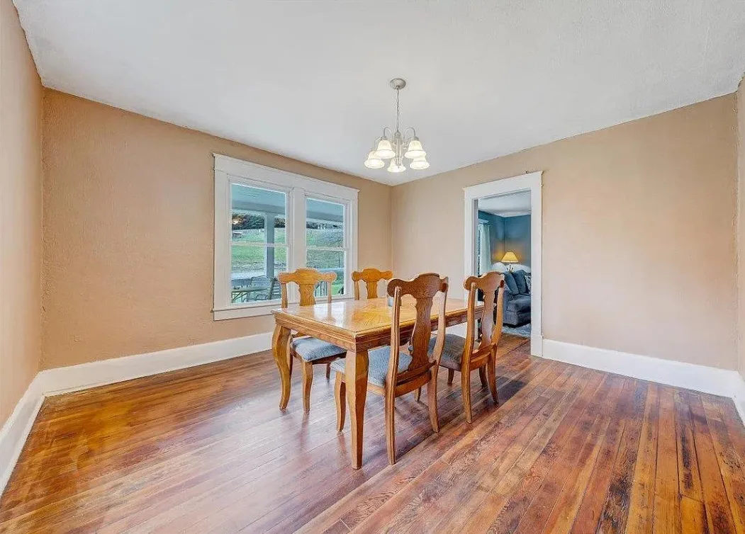 This is a cute house! Nice interior! Pretty area. The house was built in 1940 It is located on .55 acre in Hillsville, Virginia. The house features a covered front porch, wood floors, a lot of natural light, wide baseboards and a spacious kitchen. There is a covered back porch and a detached building on the property. Four bedrooms, one bathroom and 1,468 square feet. $175,000