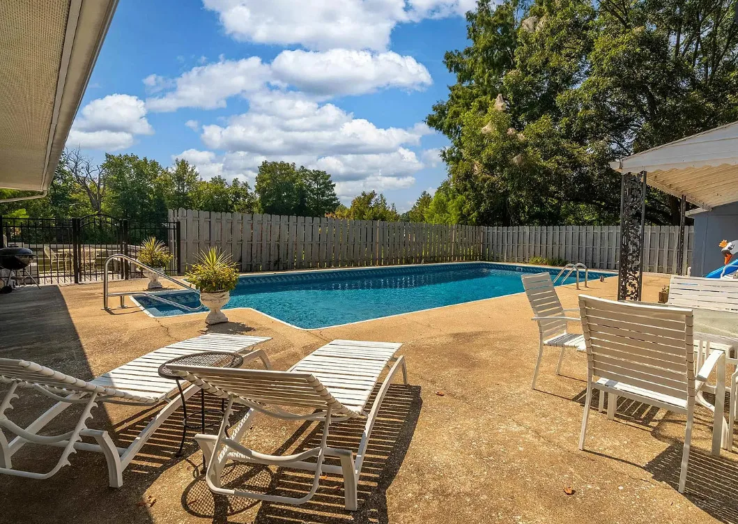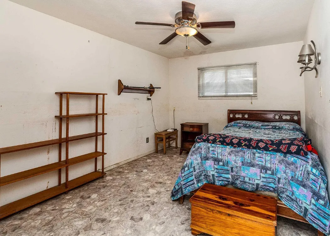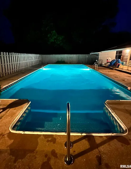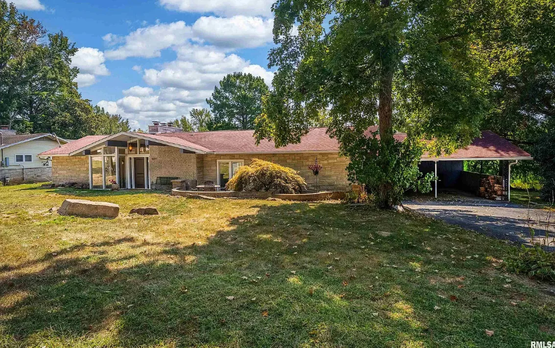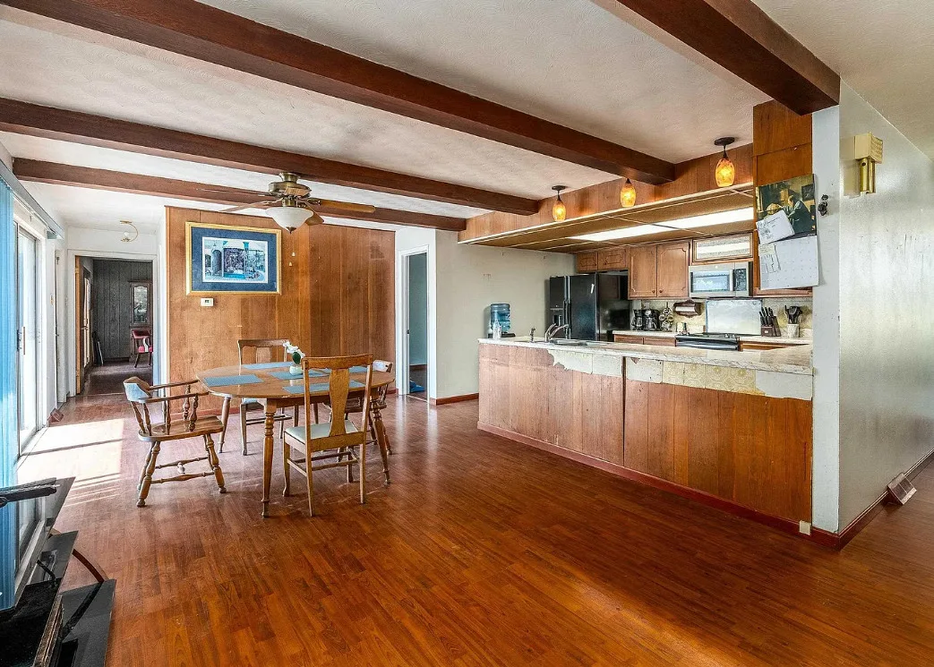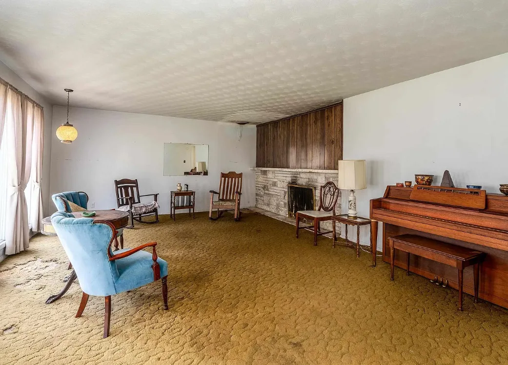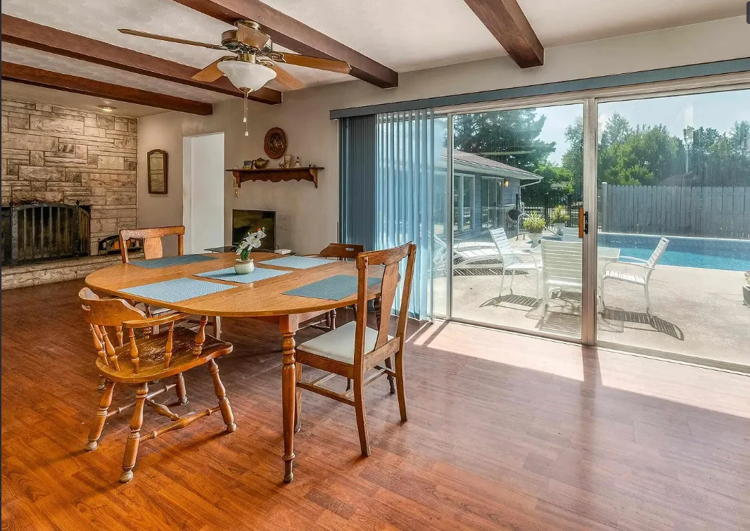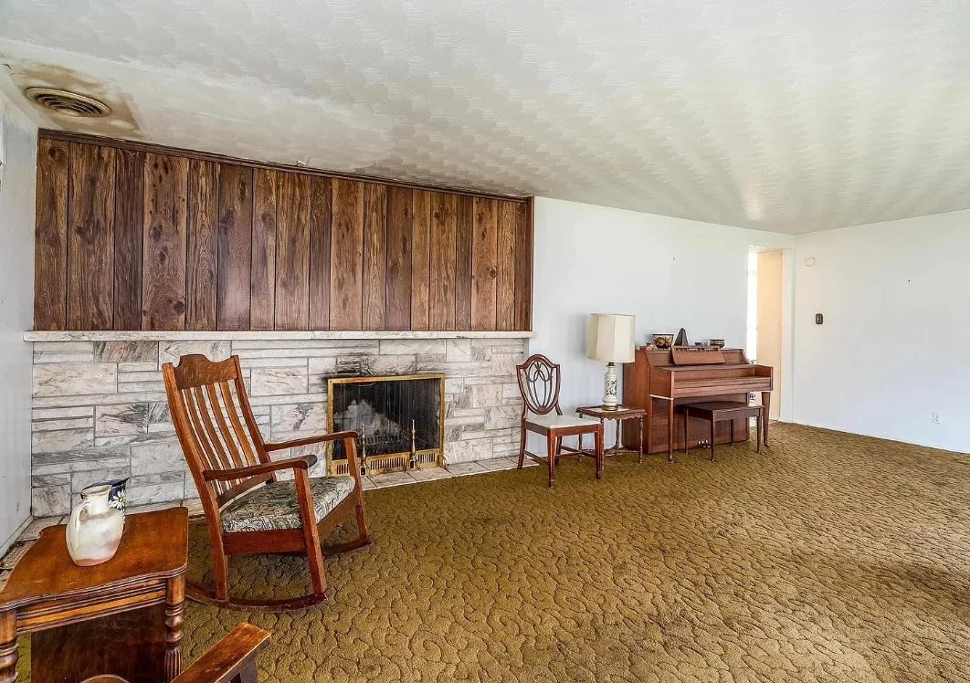 This sure would be a fun house to work on! The pool is nice! The house was built in 1960. It is located in Murphysboro, Illinois. The house features a covered front porch, large patio, neat entryway and a large fireplace. How about that built-in grill beside the fireplace. There are exposed beams and a large kitchen. The backyard is fenced with a large pool and patio. Four bedrooms, three bathrooms and 3,267 square feet. $150,000