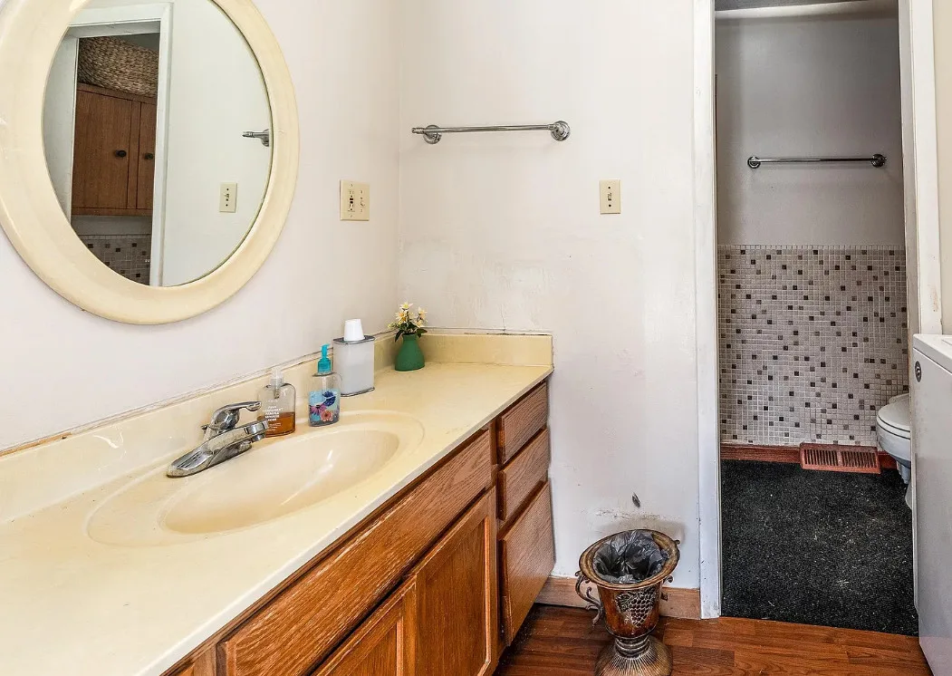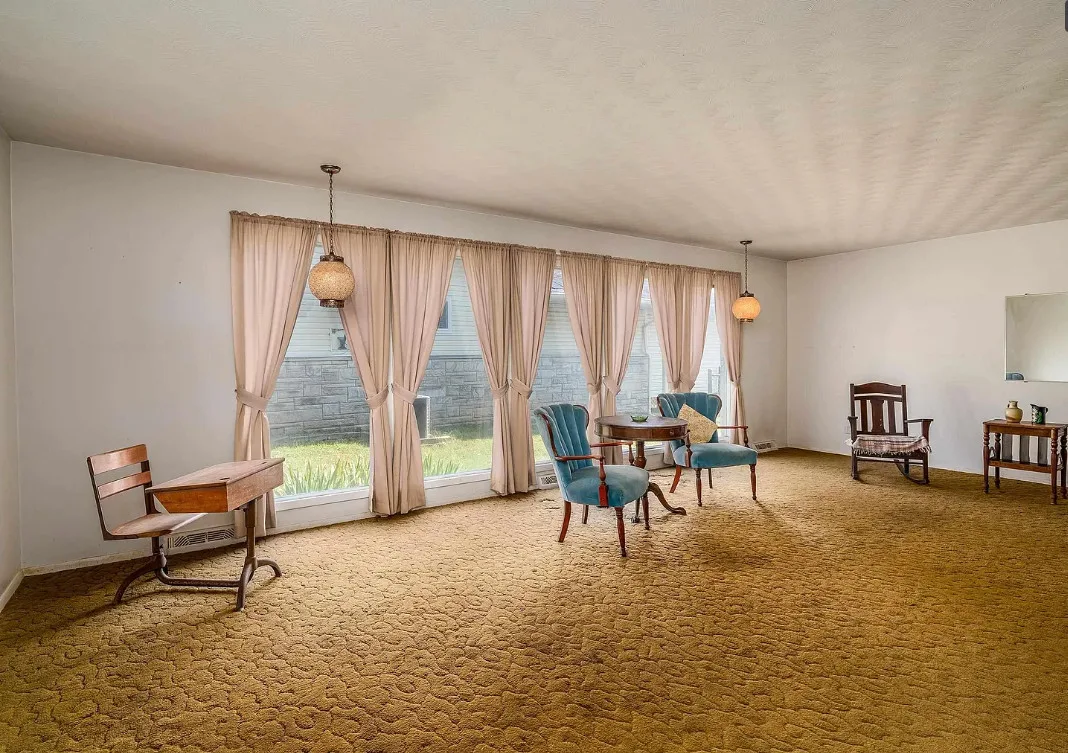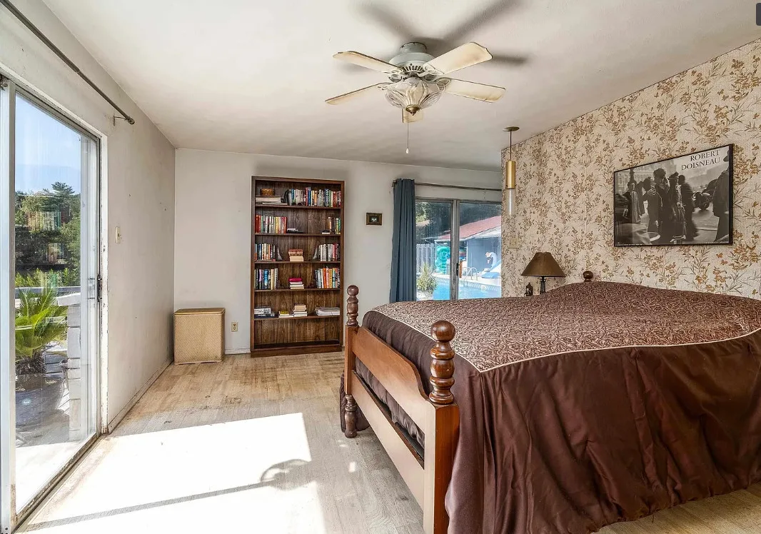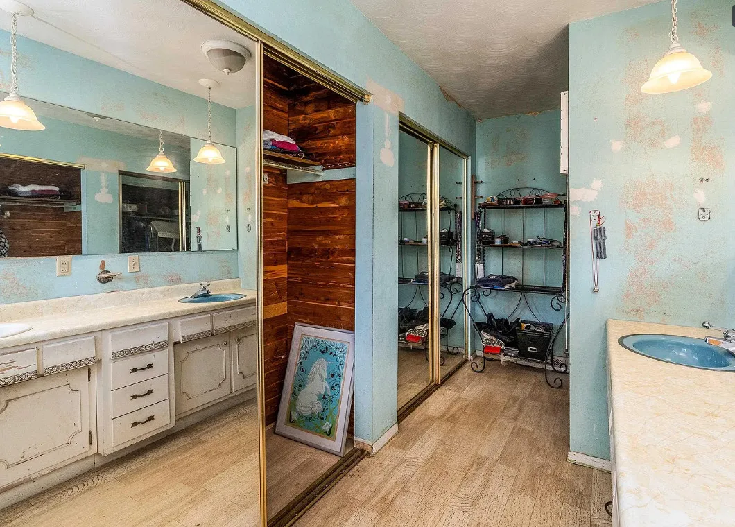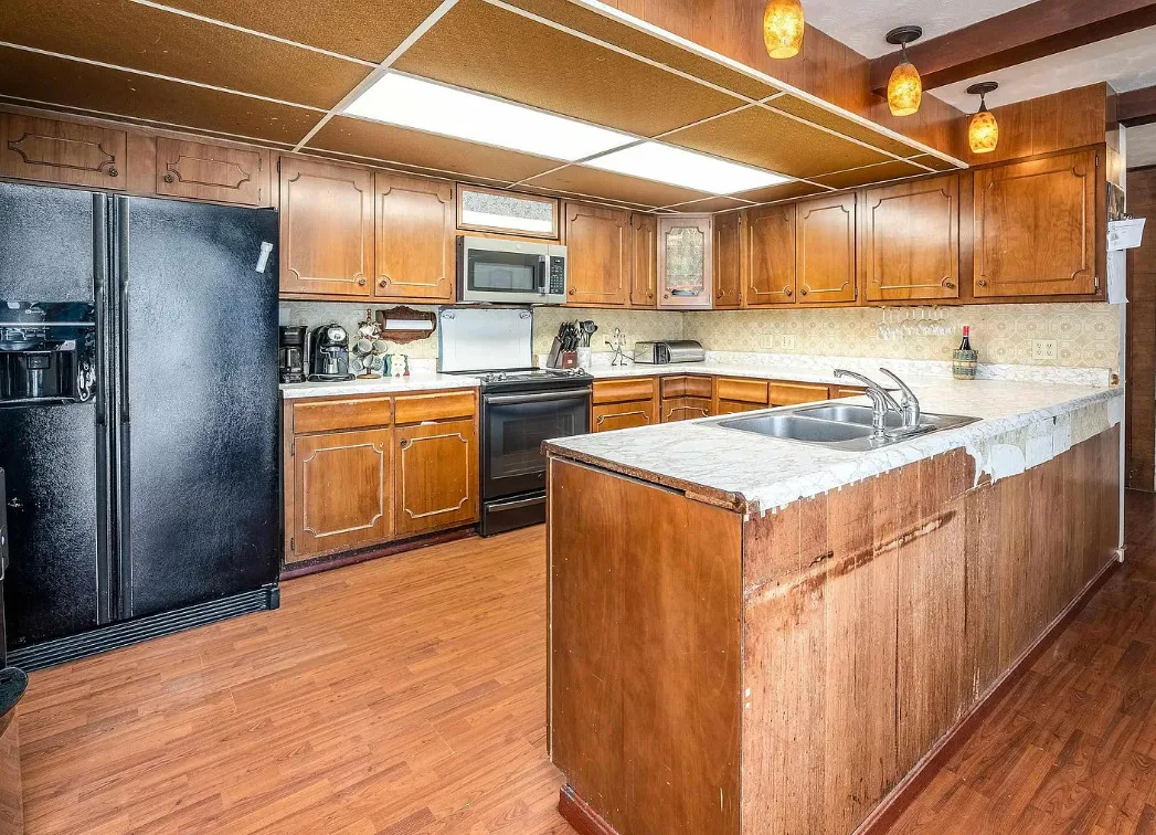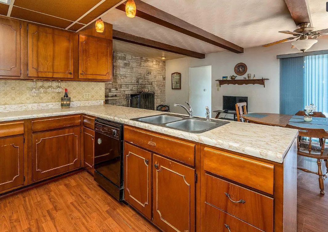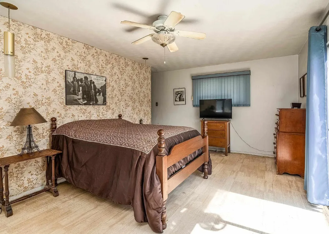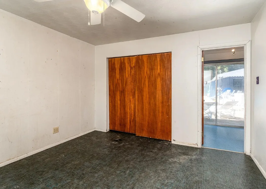 This sure would be a fun house to work on! The pool is nice! The house was built in 1960. It is located in Murphysboro, Illinois. The house features a covered front porch, large patio, neat entryway and a large fireplace. How about that built-in grill beside the fireplace. There are exposed beams and a large kitchen. The backyard is fenced with a large pool and patio. Four bedrooms, three bathrooms and 3,267 square feet. $150,000