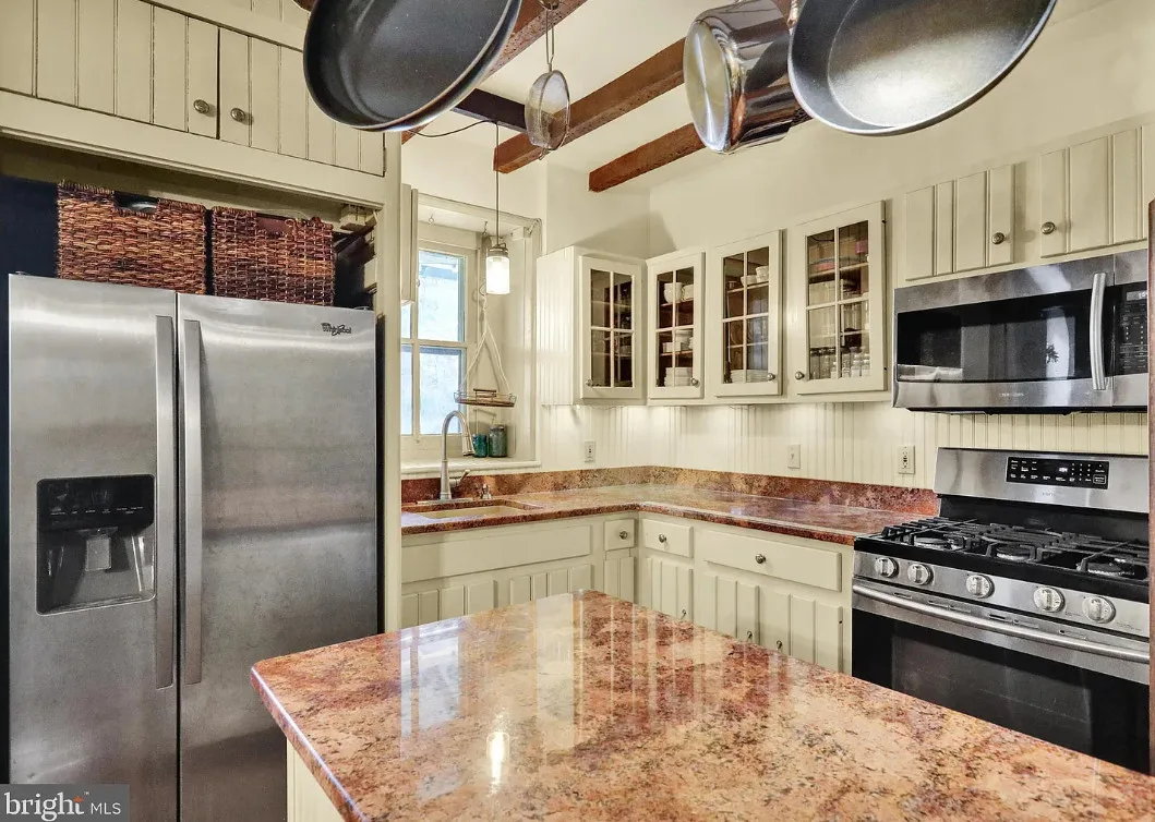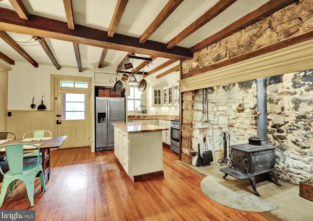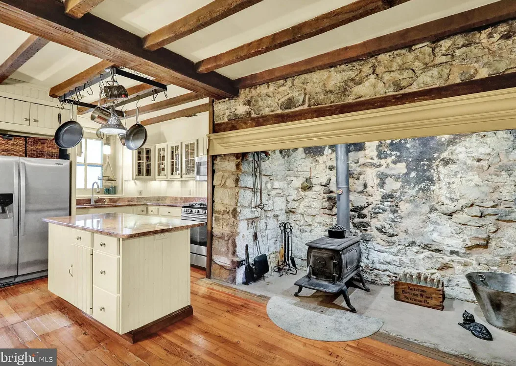 Welcome to 615 W Bellevue Avenue, a one-of-a-kind historic treasure in the Muhlenberg School District, just moments from Laurel Run Park’s walking trails, picnic areas, athletic fields, and pickleball courts. Tucked among mature trees for ultimate privacy yet conveniently close to major highways, this iconic Daniel Zacharias Homestead seamlessly marries Berks County heritage with thoughtful modern upgrades. The charming farmhouse greets you with a brick-paver entry that flows into a country-style eat-in kitchen boasting granite counters, a spacious island, stainless steel appliances, an exposed stone accent wall with wood stove, and open-beam ceilings. Entertain effortlessly in the dining room with soaring 9-foot ceilings and deep window sills, or relax in the living room featuring a dramatic floor-to-ceiling brick gas fireplace. A 1999 addition expands the main level by nearly 600 square feet, adding a generous family room, built-in cabinetry, and a full bath. Upstairs, discover three bedrooms—including a tranquil primary suite—a beautifully remodeled full bath with tile flooring and double vanity, a convenient half bath, and a versatile bonus room perfect as a nursery or dressing area. Among the many special features worth mentioning include a new roof, fresh paint, gleaming hardwood floors, two fireplaces, wood stoves, and efficient four-zone gas heat. Beyond the main residence, a converted smokehouse now serves as a cozy guest cottage with a large multi-purpose room and wood stove. An oversized two-story garage—drywalled, insulated, equipped with a mini-split system, upgraded electric, and abundant upper storage—completes the ensemble. A covered front porch with catwalk access to the guest house invites peaceful outdoor living. Rarely does a property offer such rich history, modern comfort, and versatile spaces—schedule your private showing today.