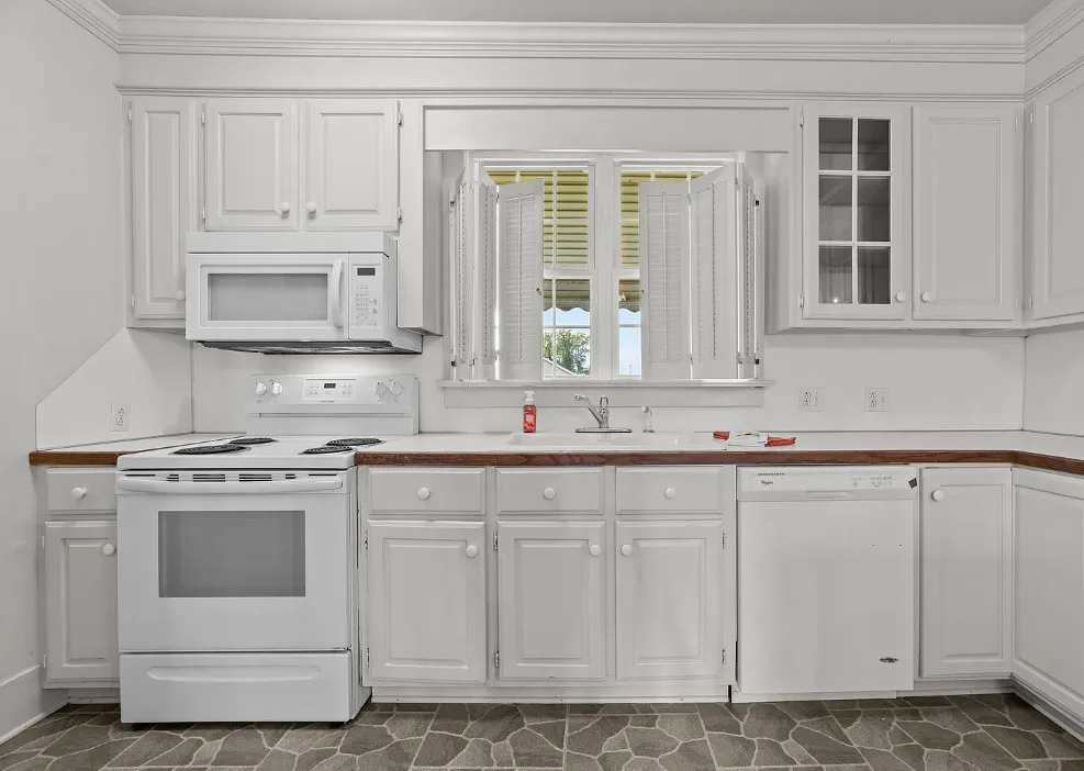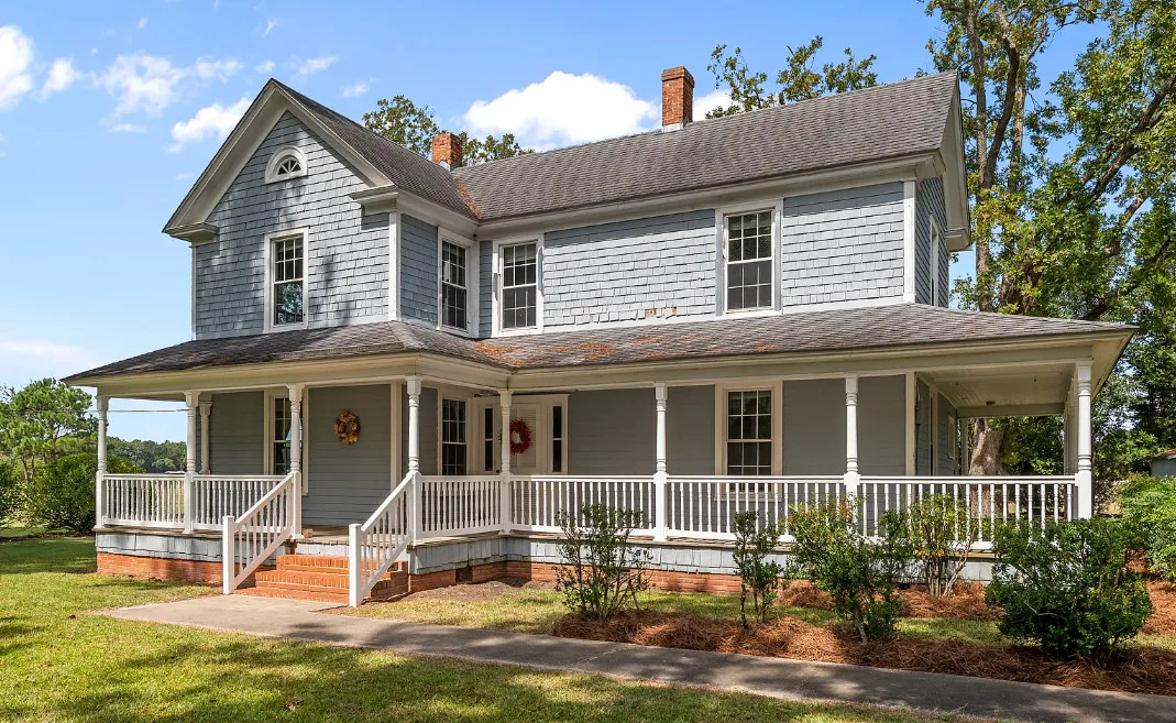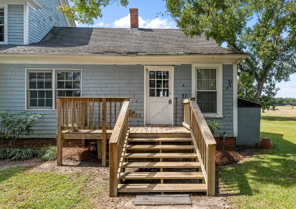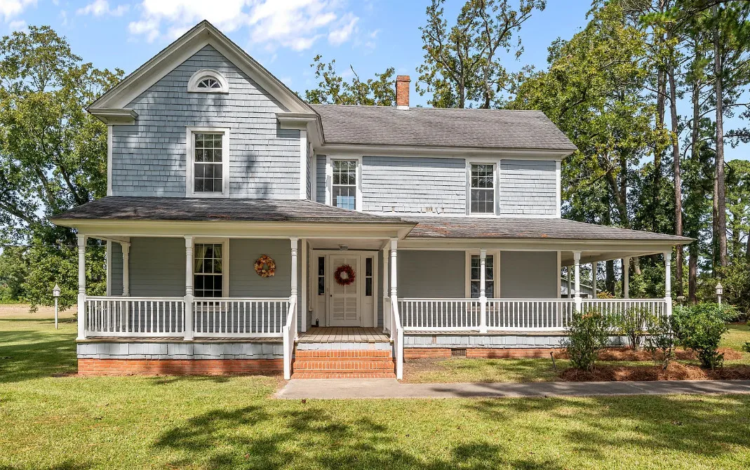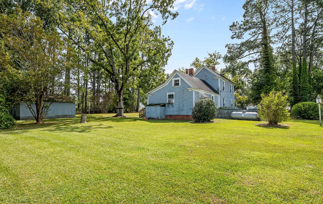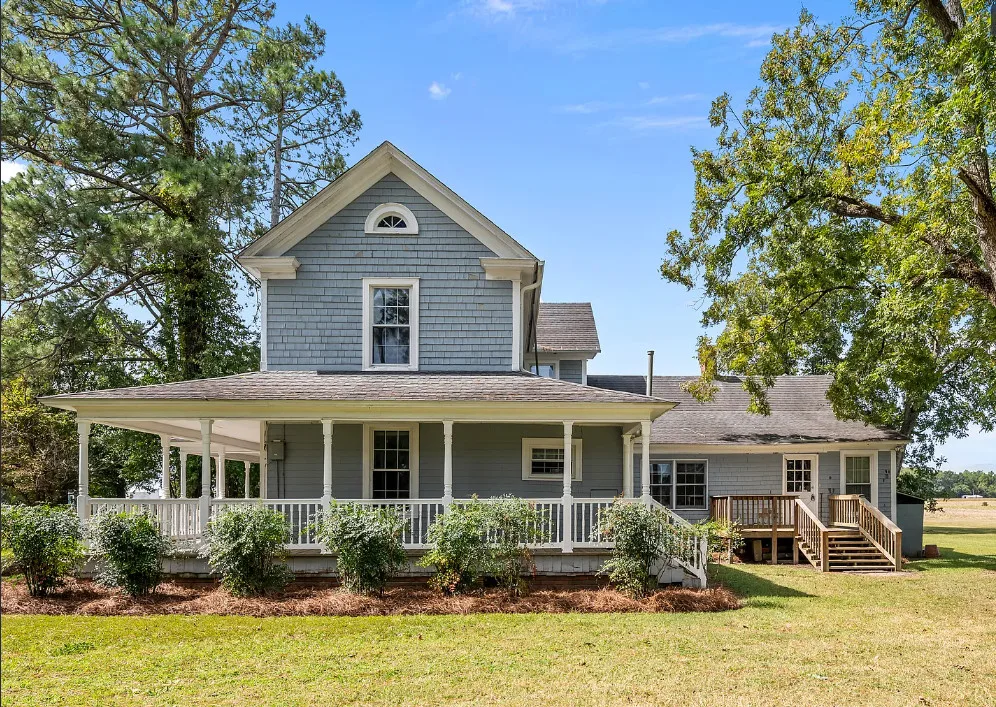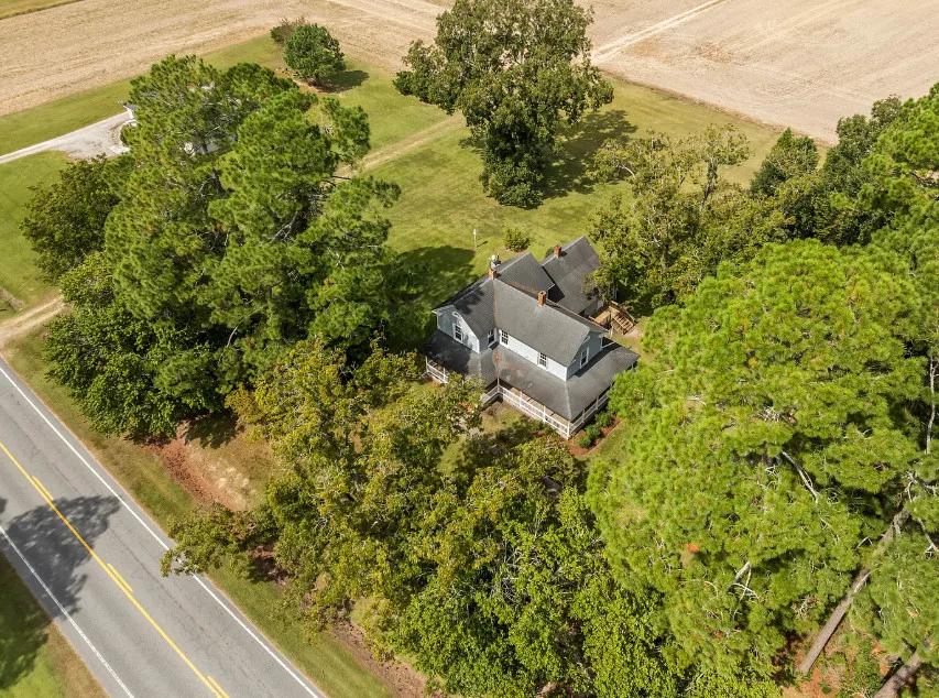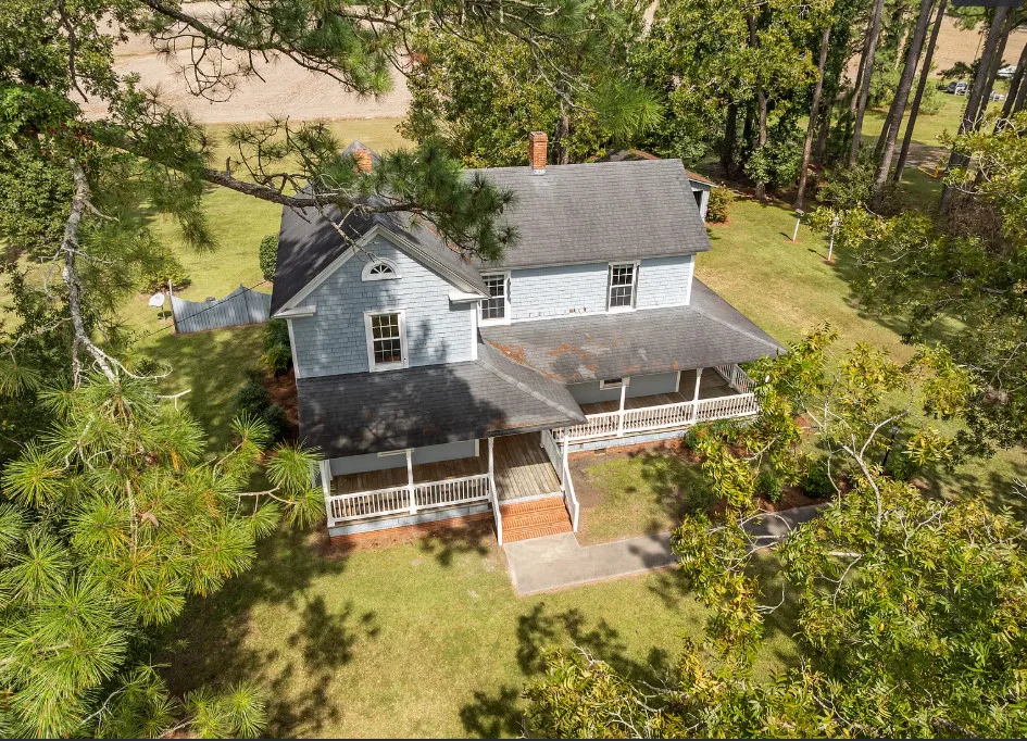Historic 1921 Victorian Farmhouse – 1 Acre in the village of Yeatesville – Pinetown Discover the charm of a true classic with this 1921 Victorian farmhouse set on 1 acre with farm views. Known locally as the (Sam, Edna, & Martha) Robbins Home, built by Dr. & Mrs. M. L. Jackson. This 2-story, 2,600+ sq. ft. home offers 4 bedrooms, 2 full baths, and 10-ft ceilings. Special features include wood shake siding, a wrap-around porch, tongue-and-groove walls, and a kitchen fireplace, hardwood pine floors, herringbone pattern hardwood floor in foyer. The kitchen also offers updated cabinets, appliances, prep island, and breakfast area. A laundry closet with washer and dryer, plus a spacious walk-in attic, provide everyday convenience and storage. Comfort is provided by propane heaters and window A/C units, with pricing reflecting the opportunity to add a central HVAC system and updates to suit your vision. Extras include a 20′ x 22′ detached garage, Thermoglass windows throughout, and a termite bond in place. Just minutes from Historic Bath (7 mi), Belhaven (9 mi), and Washington (20 mi), with local schools nearby. A rare chance to own a piece of history and make it your own!