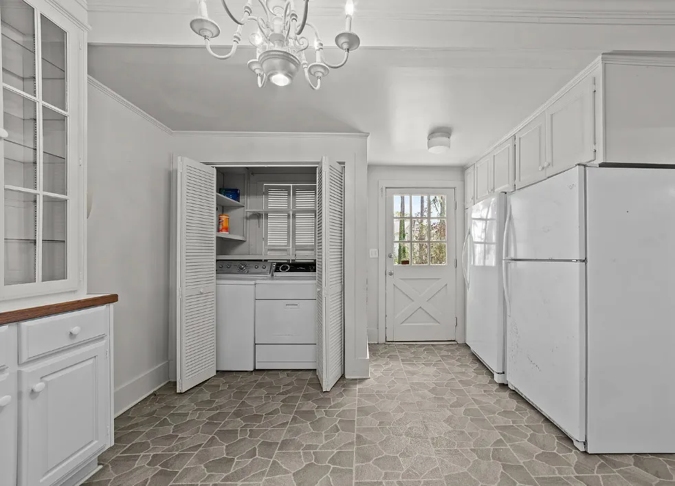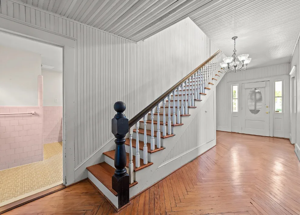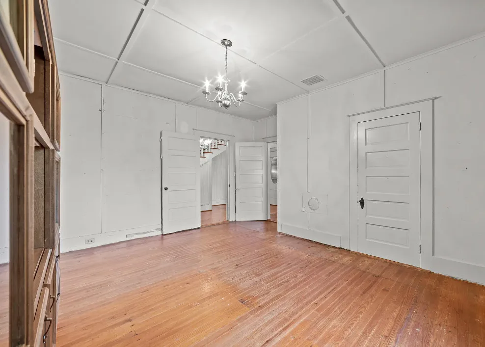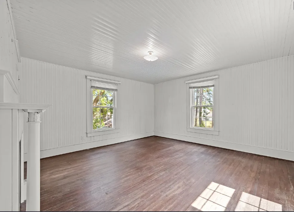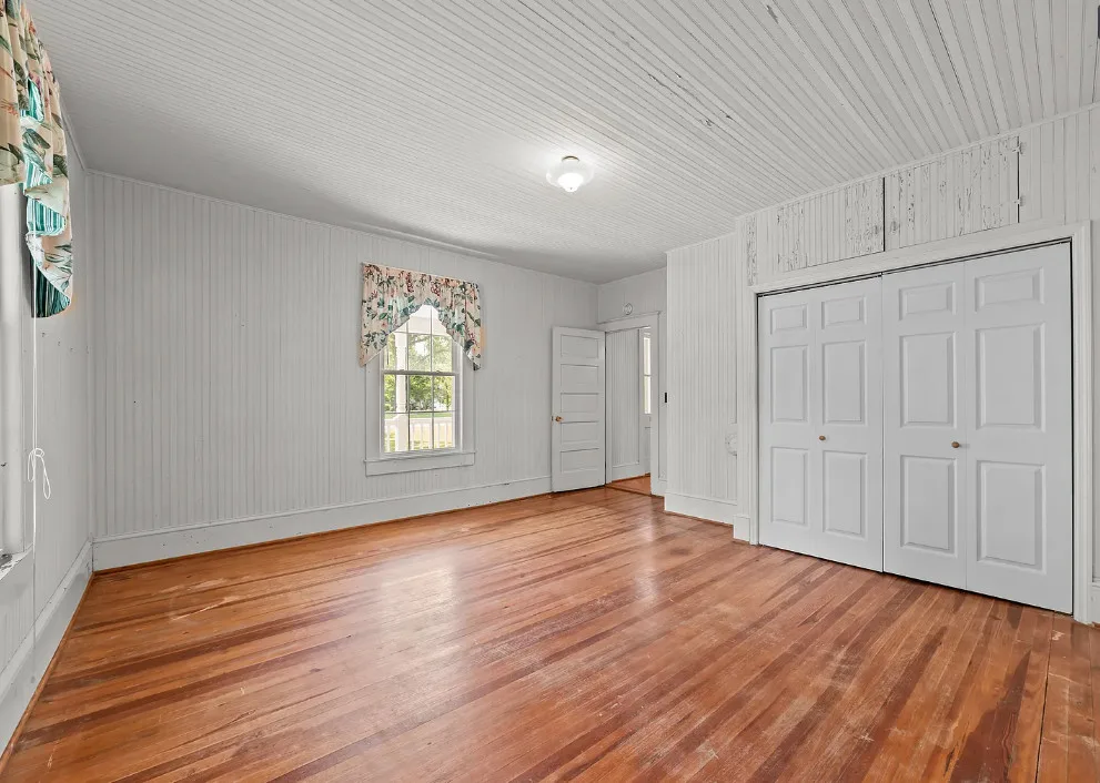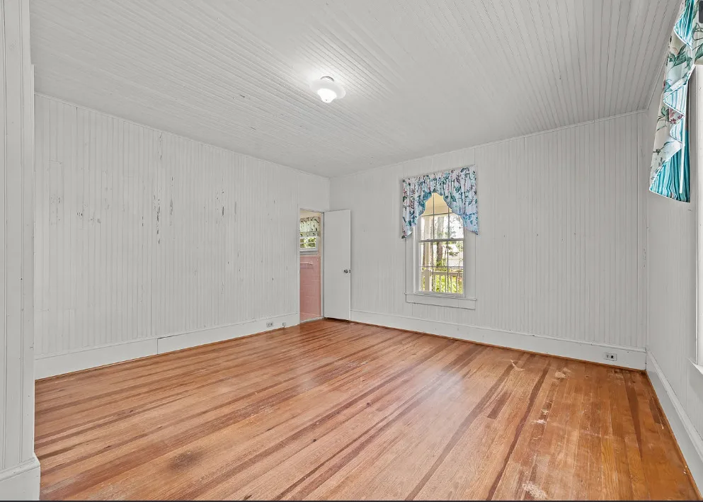 Porch goals! What a great porch! This house is known as the Robbins Home. It was built for Dr. and Mrs. M. L. Jackson. The house was built in 1921. It is located on one acre in Yeatesville, North Carolina. The house features a large wrap around front porch, original wood floors, bead board for days, wide baseboards, crown moulding and a spacious kitchen. The house could really use some color inside, but at least it is like a blank slate. There is a detached garage on the property. Four bedrooms, two bathrooms and 1,819 square feet. $245,000 New price: $215,000 New price: $195,000