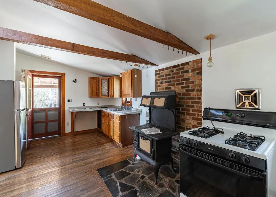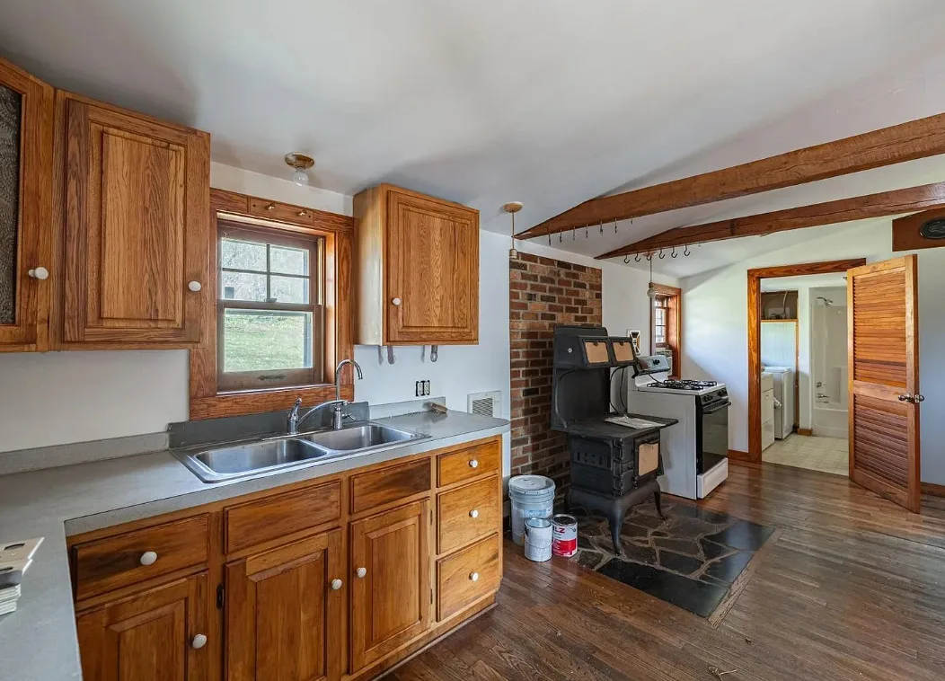 Near Walton’s Mountain Museum, wineries and breweries! This has an interesting history! It was built by the Alberene Soapstone Company so bachelors working for the company had a place to sleep at night. The house was built in 1912. It is located on 1.04 acres in Schuyler, Virginia. The house features a covered porch, covered side porch, original wood floors, exposed beams, bead board and baseboards. There are multiple outbuildings on the property, including a garage. Three bedrooms, one bathroom and 1,230 square feet. $250,000