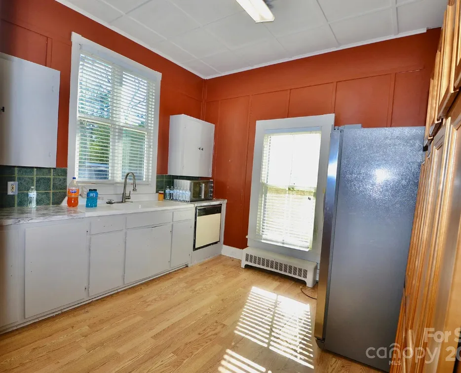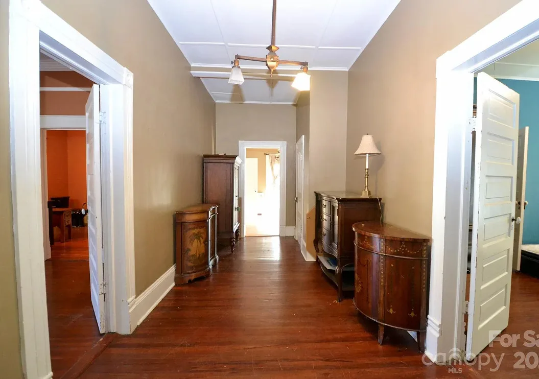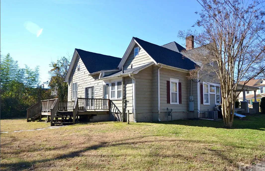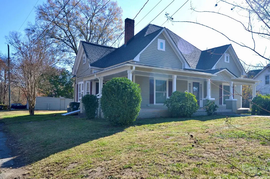 Southern charm and character abound in this spacious home set on two lots with beautiful curb appeal and a welcoming wraparound front porch. A tree incident several years ago led to a renovation of the front two rooms, including new windows, flooring and front half of the roof (entire roof had been replace approx 6-8 years prior). Hardwoods throughout most of the home. Third bedroom could be used as an office/flex room (no closet). New instant water heater was installed earlier this year. Offering generous square footage and abundant potential, this property is ready for your vision. At time of listing, some water was noted in the cellar/unfinished basement; seller has since installed a new sump pump and added a cover over the exterior steps. Rear deck is weak—please use caution. Home is priced well below tax value and is being sold As-Is.