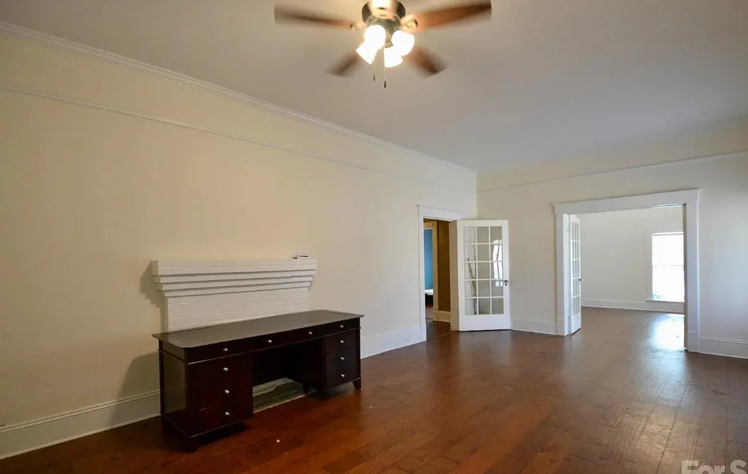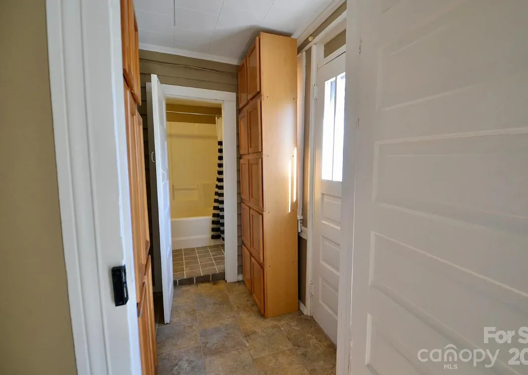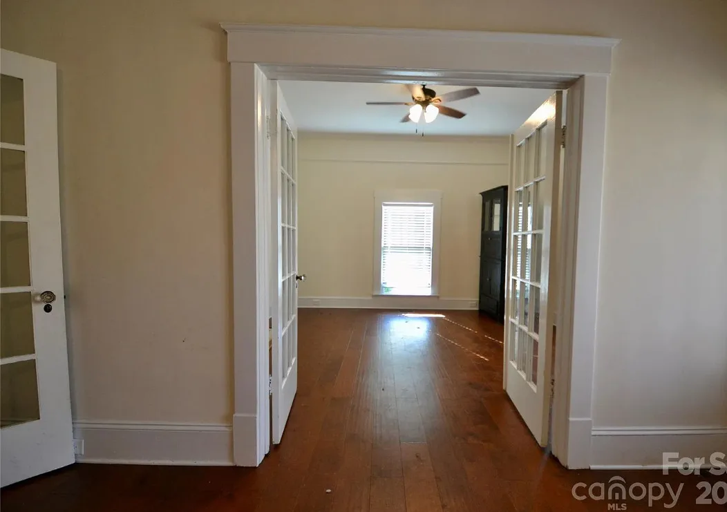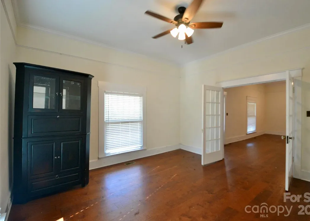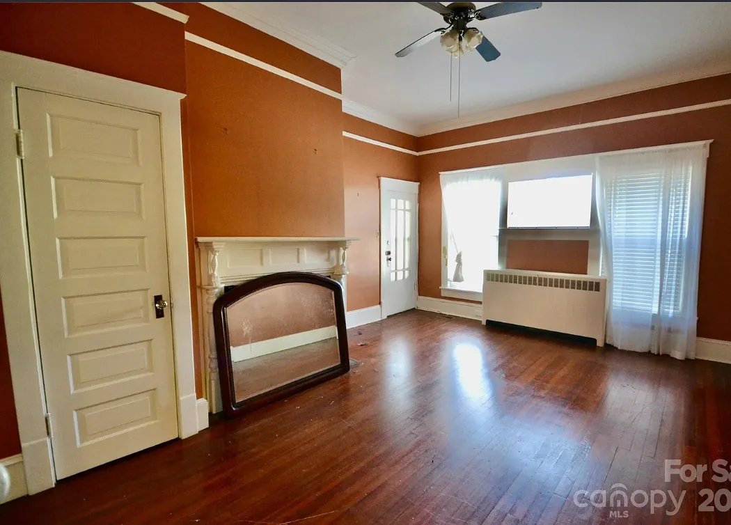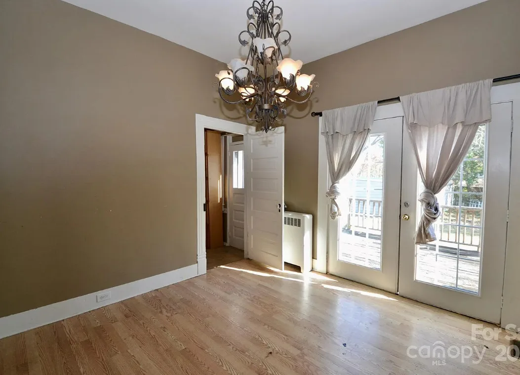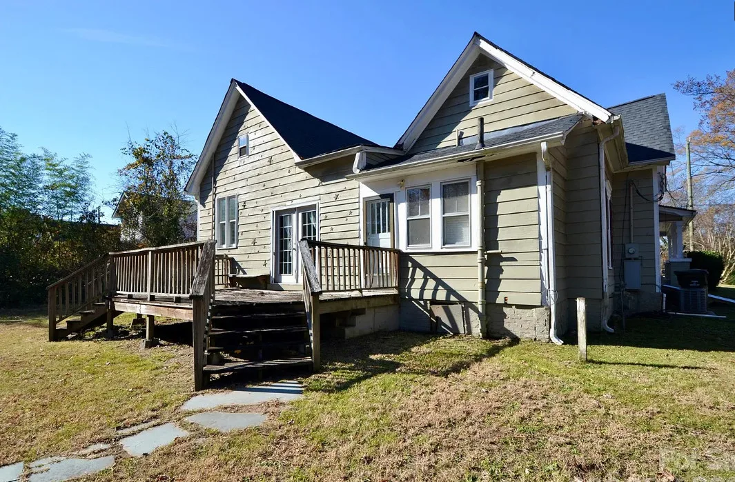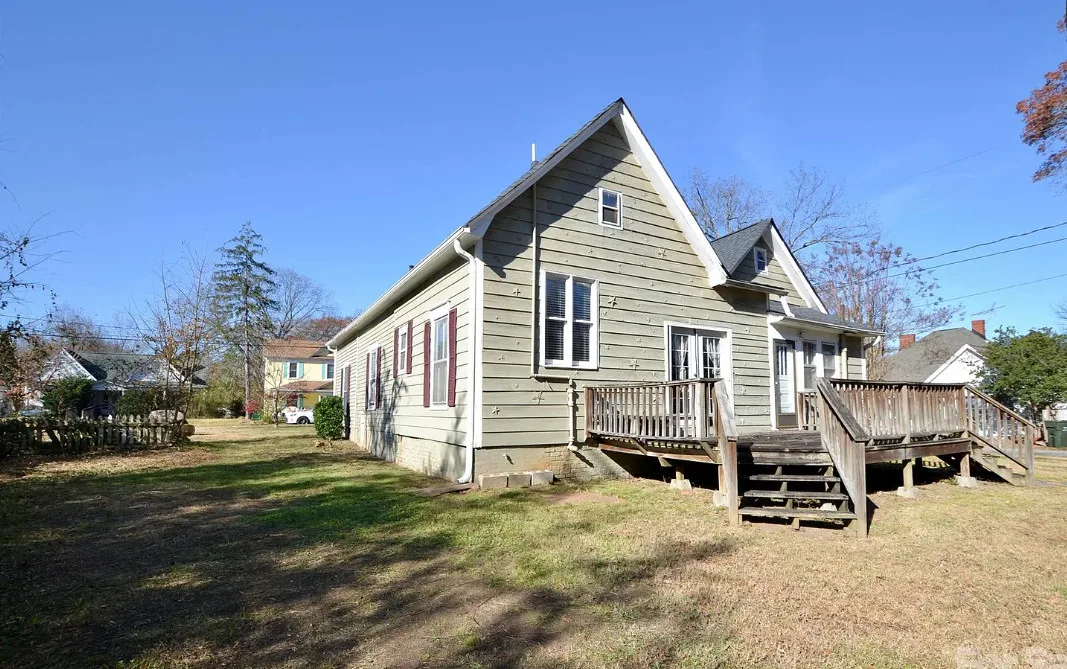 This house has a nice interior and a pretty porch! The house was built in 1904. It is located on .33 acre in Spencer, North Carolina. The house features a large covered front porch, a big back deck, wood floors, tall ceilings, picture rails, crown moulding, wide baseboards and french doors. There is a detached garage and a storage shed on the property. Three bedrooms, two bathrooms and 1,845 square feet. $155,000