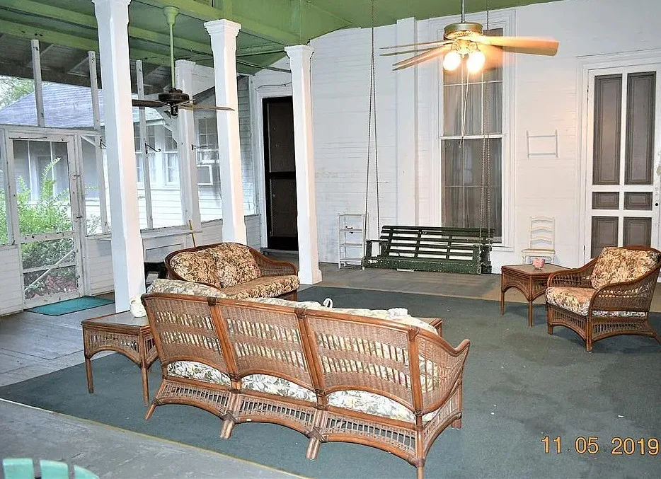 Talk about porch goals! This is amazing! The house was built in 1867. It is located on 1.15 acres in Eufaula, Alabama. The house features a large wrap around porch, tall ceilings, double front doors, jib windows, wainscoting, crown moulding, screened in back porch and built-in bookshelves. This is a big house! Six bedrooms, four bathrooms and 6,709 square feet. $454,900