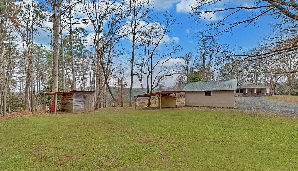 This is a beautiful area in the North Carolina mountains! The house is being sold furnished. The home was built in 1941. It is located on 4.17 acres in Murphy, North Carolina. The house features a covered front porch, original wood floors, stone fireplace and wainscoting. The kitchen looks a bit disjointed. It could use some work. Outside there are multiple outbuildings, including a detached garage. Two bedrooms and one bathroom. $329,900 New price: $319,900