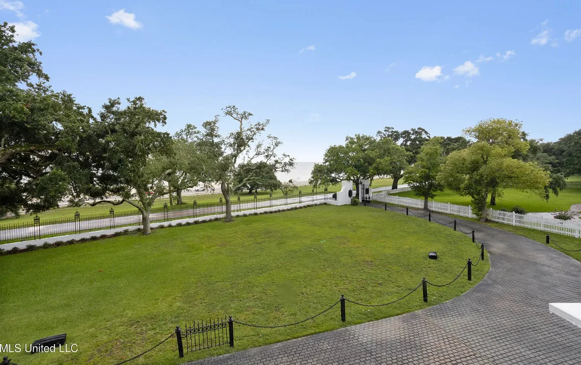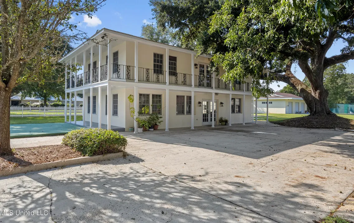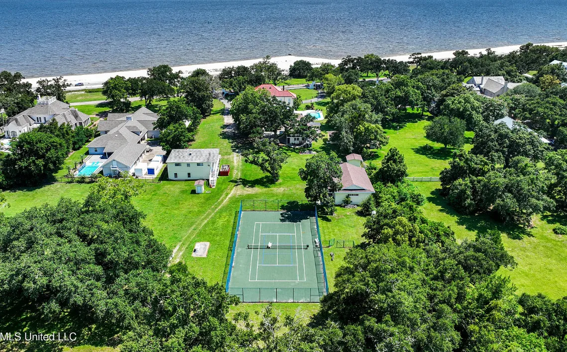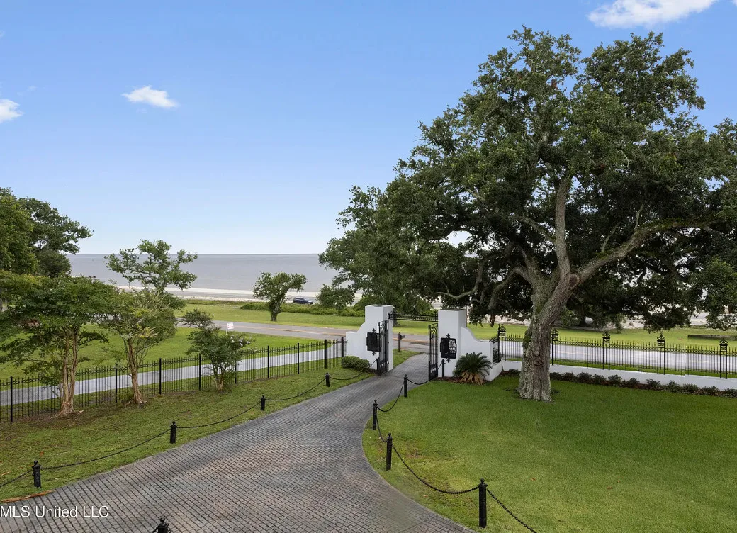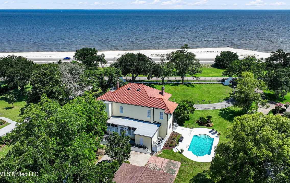 This unique beachfront luxury property, available now for the first time in decades, offers remarkable flood-free elevation, structural integrity, aesthetic and historical appeal, and livable comfort. Start your tour by coming through the massive wrought-iron gates, up the curved and cobblestoned drive, and stepping onto the wraparound front porch through the semicircular, Tuscan-columned portico. Originally built in 1920, the main residence features a concrete stucco exterior, terra cotta hip roof, and steel understructure, with a stucco-and-wrought-iron fence surrounding much of the property. Upstairs, three full bedrooms include recently refreshed en suite baths, while downstairs includes the wood-paneled library, airy sitting room and foyer, formal dining room, cheery sunroom, spacious utility room, and two half baths. The newly-remodeled kitchen centers around the enormous stone-topped island, complete with prep sink, overlooking the poolside. Luxury finishings include include flooring of marble tile and clear (top-grade) heart pine timber, plaster mouldings, beautiful staircase woodwork, and exquisite hardware throughout, such as leaded glass doors. The main chandelier and front gates are said to come from to the king of New Orleans hotels, the St. Charles, which stood in the Crescent City for nearly 140 years. Underneath the home, built into the Scenic bluff itself, the wine cellar can hold more than 1,200 bottles of wine in chilled comfort. On the west side of the home, a chlorinated, plaster-sided pool is the perfect relaxation spot with views of the beach. The property comes with not one but FOUR outbuildings in the backyard, plus a small storage shed. Just north of the main home, the gorgeous guest house offers understated luxury throughout, starting with an array of premium kitchen appliances from Delta-based manufacturer Viking: refrigerator, gas range, ice machine, dishwasher, microwave, and trash compactor. A pot-filler, an undermount double sink, and stone countertops complete the kitchen amenities. The rest of the tiled ground level includes dining space, living space, and a three-quarter bathroom including handicap-accessible shower and washer/dryer hookups. Upstairs, the guest house features two bedrooms plus a kitchenette with sink and room for a fridge, with hardwood flooring throughout. One tiled bathroom includes a double vanity with stone countertops and a terrific view overlooking the pool, plus a balcony. Across the yard, the two-story apartment building features a 3BD/2BA apartment upstairs with all-new windows, plus a workshop downstairs with two single-entry garage doors and plenty of storage. Meanwhile, the pool building offers a perfect studio-style guest space, featuring a kitchenette, slate flooring, and three-quarter bathroom. Lastly, the large workshop features three roll-up doors, a half bath, electrical power, water, and plenty of room for all your toys. Speaking of room: In the front yard, through the gates and across Scenic Drive, the broad, grassy median provides nearly three-quarters of an acre sweeping down to Highway 90 and the white-sand beach overlooking the Gulf of Mexico. Plus, another two acres of more live oaks and sunny lawns can be purchased separately, with direct gate access to Second Street. The house has a richly documented social history throughout the years. After its initial construction for the for the Soria and Soulé families of New Orleans, it later served in the 1950s and 1960s as the main campus of the Kern School, a private school for many Coastians. The house has been home to four rulers of Carnival, and has hosted two Senate Majority Leaders, a presidential candidate, and many senators, governors, and other celebrities.