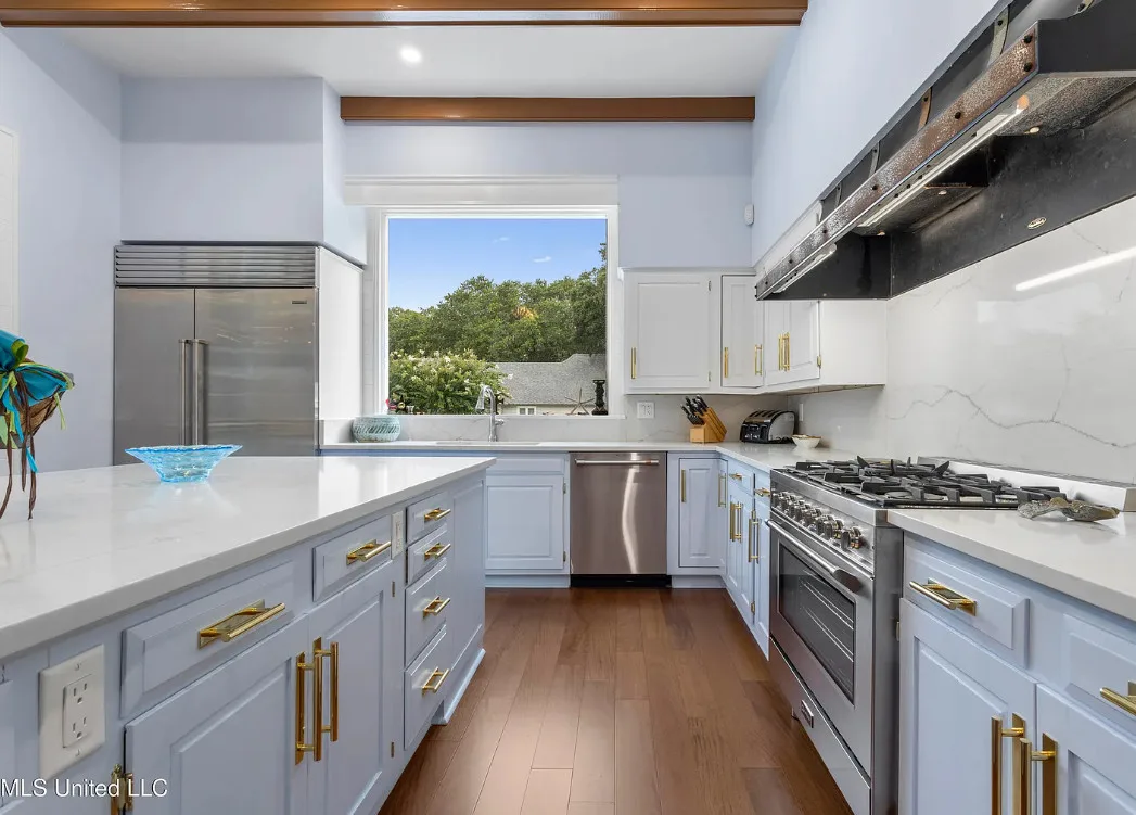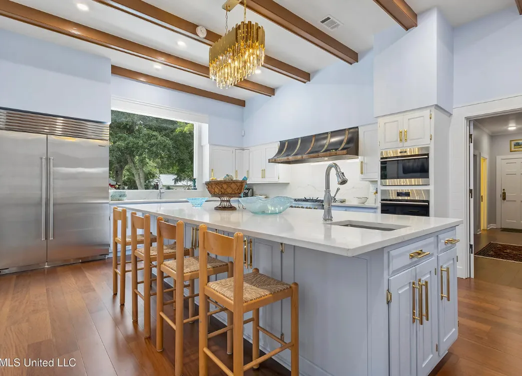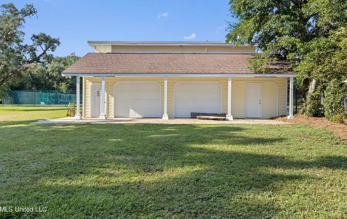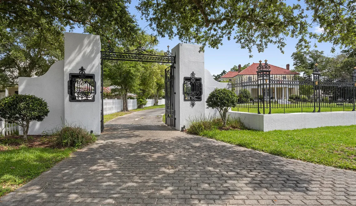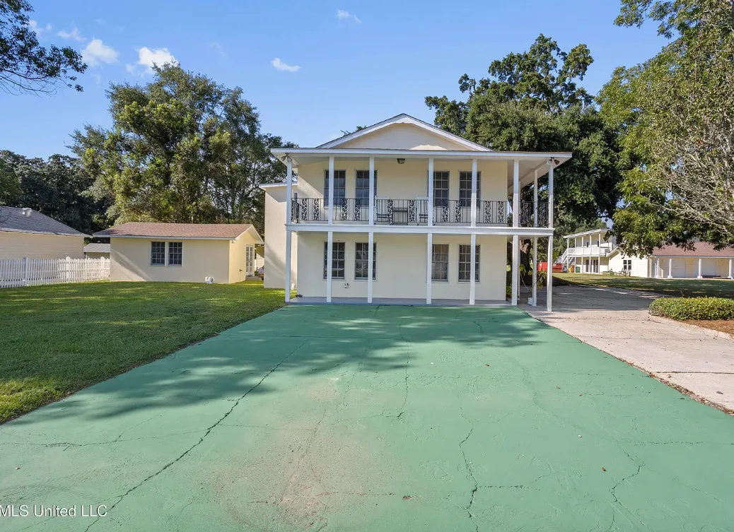 This unique beachfront luxury property, available now for the first time in decades, offers remarkable flood-free elevation, structural integrity, aesthetic and historical appeal, and livable comfort. Start your tour by coming through the massive wrought-iron gates, up the curved and cobblestoned drive, and stepping onto the wraparound front porch through the semicircular, Tuscan-columned portico. Originally built in 1920, the main residence features a concrete stucco exterior, terra cotta hip roof, and steel understructure, with a stucco-and-wrought-iron fence surrounding much of the property. Upstairs, three full bedrooms include recently refreshed en suite baths, while downstairs includes the wood-paneled library, airy sitting room and foyer, formal dining room, cheery sunroom, spacious utility room, and two half baths. The newly-remodeled kitchen centers around the enormous stone-topped island, complete with prep sink, overlooking the poolside. Luxury finishings include include flooring of marble tile and clear (top-grade) heart pine timber, plaster mouldings, beautiful staircase woodwork, and exquisite hardware throughout, such as leaded glass doors. The main chandelier and front gates are said to come from to the king of New Orleans hotels, the St. Charles, which stood in the Crescent City for nearly 140 years. Underneath the home, built into the Scenic bluff itself, the wine cellar can hold more than 1,200 bottles of wine in chilled comfort. On the west side of the home, a chlorinated, plaster-sided pool is the perfect relaxation spot with views of the beach. The property comes with not one but FOUR outbuildings in the backyard, plus a small storage shed. Just north of the main home, the gorgeous guest house offers understated luxury throughout, starting with an array of premium kitchen appliances from Delta-based manufacturer Viking: refrigerator, gas range, ice machine, dishwasher, microwave, and trash compactor. A pot-filler, an undermount double sink, and stone countertops complete the kitchen amenities. The rest of the tiled ground level includes dining space, living space, and a three-quarter bathroom including handicap-accessible shower and washer/dryer hookups. Upstairs, the guest house features two bedrooms plus a kitchenette with sink and room for a fridge, with hardwood flooring throughout. One tiled bathroom includes a double vanity with stone countertops and a terrific view overlooking the pool, plus a balcony. Across the yard, the two-story apartment building features a 3BD/2BA apartment upstairs with all-new windows, plus a workshop downstairs with two single-entry garage doors and plenty of storage. Meanwhile, the pool building offers a perfect studio-style guest space, featuring a kitchenette, slate flooring, and three-quarter bathroom. Lastly, the large workshop features three roll-up doors, a half bath, electrical power, water, and plenty of room for all your toys. Speaking of room: In the front yard, through the gates and across Scenic Drive, the broad, grassy median provides nearly three-quarters of an acre sweeping down to Highway 90 and the white-sand beach overlooking the Gulf of Mexico. Plus, another two acres of more live oaks and sunny lawns can be purchased separately, with direct gate access to Second Street. The house has a richly documented social history throughout the years. After its initial construction for the for the Soria and Soulé families of New Orleans, it later served in the 1950s and 1960s as the main campus of the Kern School, a private school for many Coastians. The house has been home to four rulers of Carnival, and has hosted two Senate Majority Leaders, a presidential candidate, and many senators, governors, and other celebrities.