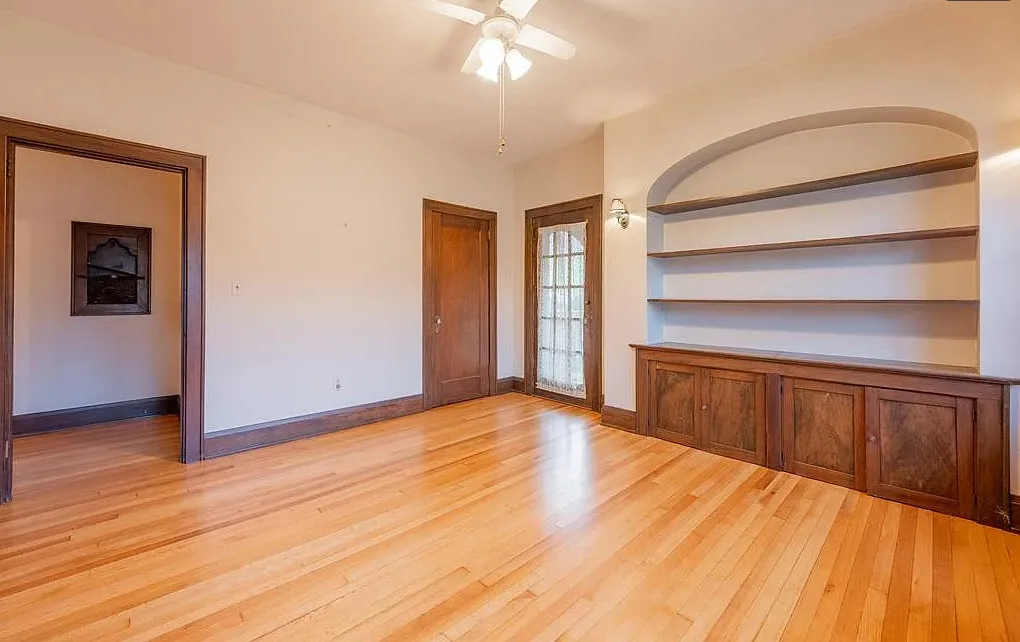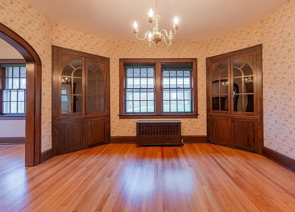 I love those built-in corner cabinets! This is a pretty area of Virginia. It’s not far from Hungry Mother State Park which has great hiking! The house was built in 1931. It is located on .43 acre in Marion, Virginia. The house features two covered porches, original wood floors, built-in corner cabinets, phone nook, original millwork, built-in bookshelves, laundry room and a spacious kitchen. There is an attached garage and a large unfinished basement. Four bedrooms, two bathrooms and 2,489 square feet. $255,000