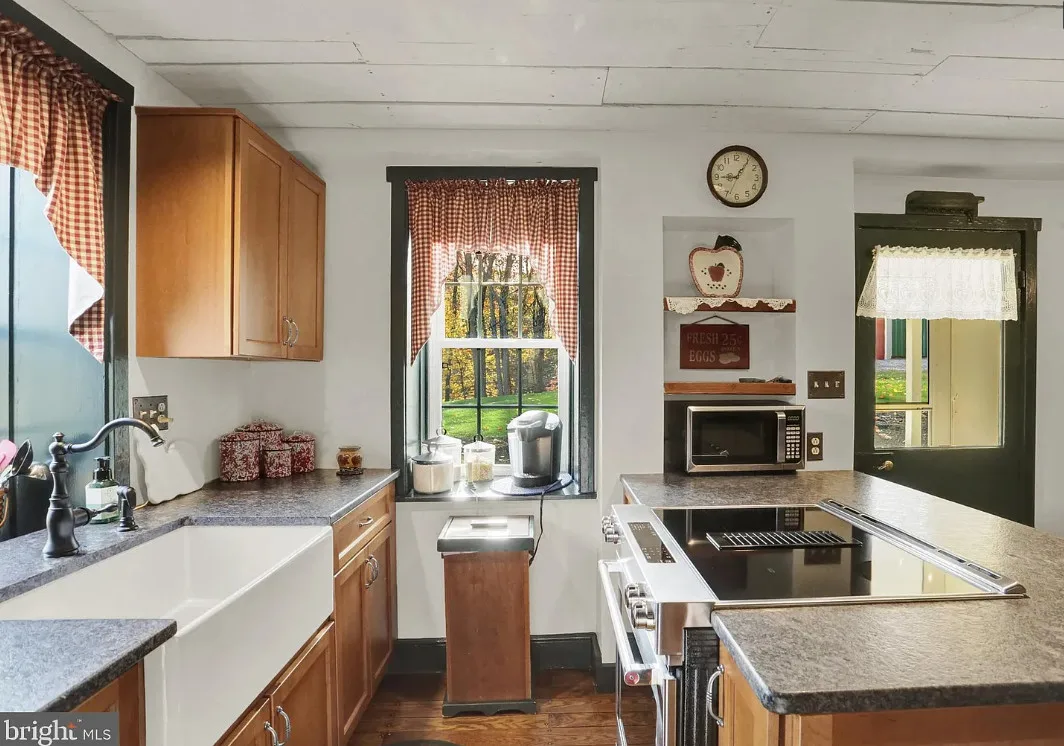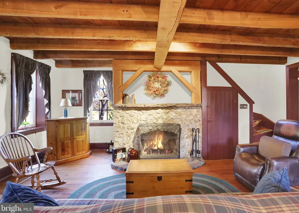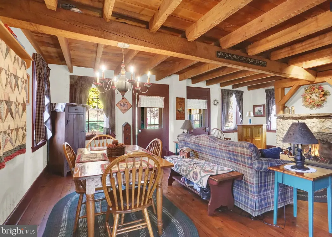 Experience the timeless charm of a Country Cottage at 950 Rosstown Rd, Lewisberry, PA. Set on nearly 2 acres of peaceful pastures and natural woodlands, this home offers privacy, serenity, and a cozy, inviting atmosphere that captures the essence of country living with a seamless connection to nature. Step inside to beautifully restored hardwood floors and exposed natural wood beams that set the tone for timeless elegance. The custom kitchen and updated bathroom are thoughtfully designed, combining country warmth with high-quality finishes. The living area features a stunning limestone fireplace, while a brand-new 2025 coal stove provides efficient backup heating. The primary bathroom is enhanced by exquisite stained glass details, creating a unique and refined retreat. A sunroom frames views of vibrant gardens, butterfly-filled meadows, and the surrounding landscape, offering a peaceful haven for relaxation. Outdoors, enjoy a welcoming front porch and a rear deck overlooking your private sanctuary. The property also includes a one-car garage and a shed for additional storage. With a newer roof, updated windows, and updated electrical systems, this property is a turnkey home designed for peace of mind. 950 Rosstown Rd is a rare find—a luxurious country escape where classic character, modern comfort, and natural beauty come together for a truly exceptional living experience.