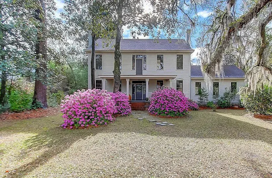 This charming country home, located in the peaceful town of Saint George, offers a unique blend of classic Southern architecture and modern amenities. Situated on a 1.02 acre lot, the property is graced with azaleas, camellias, magnolias, and moss-draped live oaks, creating a serene and picturesque atmosphere. The expansive front porch invites relaxation or entertaining, evoking the feeling of Southern living.This spacious home features a grand entrance stairway with 12-foot ceilings, a living room flowing into the dining room, den, and kitchen. It includes several bedroom suites with unique features like fireplaces and private deck entrances and 7 renovated bathrooms throughout!Upon entering the home, you’re greeted by a spacious entrance hall with a grand stairway and 12-foot ceilings throughout. The living room, enhanced by a beautiful gas-insert fireplace, flows into the dining room, den/family room, and kitchen. The den opens onto a rear deck, and the former breakfast room offers potential for a modern chef’s kitchen. The layout includes several bedroom suites, each with its own unique features, including fireplaces and private entrances to the deck. The master suite on the main floor is separated into two rooms, with a large bath offering a soaking tub and separate shower. The upstairs master suite mirrors this layout, with two rooms and a shared bath, offering versatility for a variety of uses. The home also boasts several additional bedroom suites and bathrooms, with a total of seven renovated bathrooms. Significant renovations were made in 2007, including updates to the electrical, plumbing, and HVAC systems, as well as a new roof. The electrical wiring is commercial-grade, suitable for a potential bed and breakfast or inn. The home is also well-suited for an event space, large family home, or potential Inn, thanks to its ample space and flexible layout. This property is situated in Dorchester County, which is poised for growth, especially with the neighboring Volvo Plant in Ridgeville and the new middle school, and the new homes being developed in and around St. George. The owner believes the home was originally constructed in the late 1870s, with the 1933 date in the tax records referring to the kitchen addition. The home is believed to be around 4,600 square feet, offering ample space for a variety of purposes. There are endless possibilities with this beautiful, historic property!
