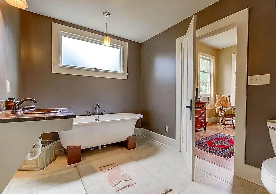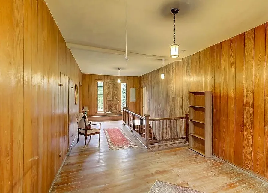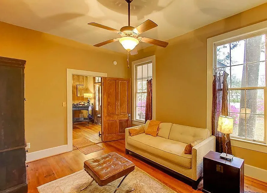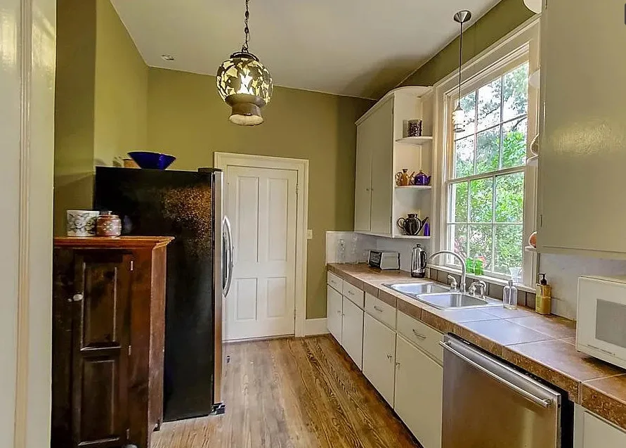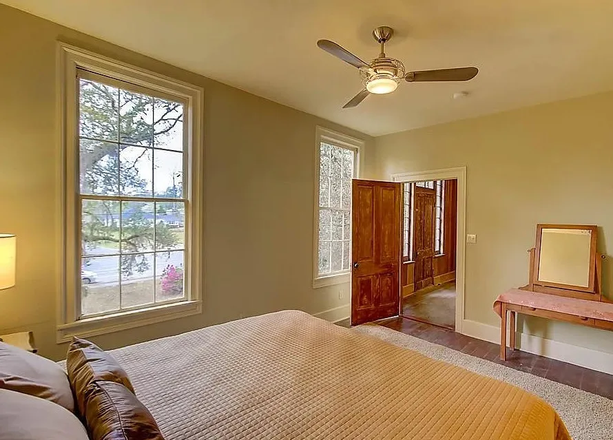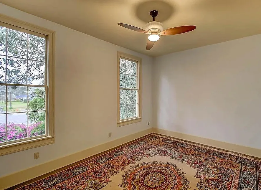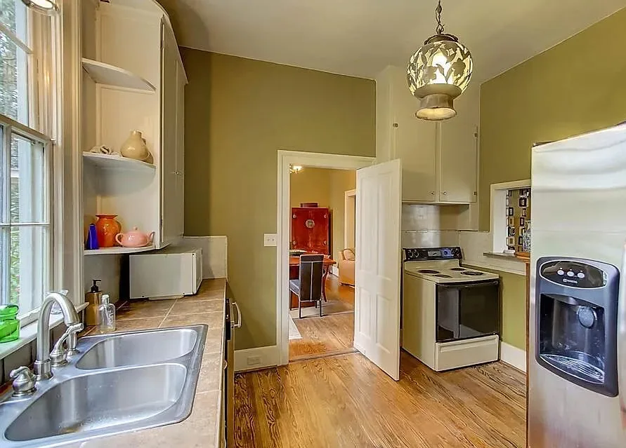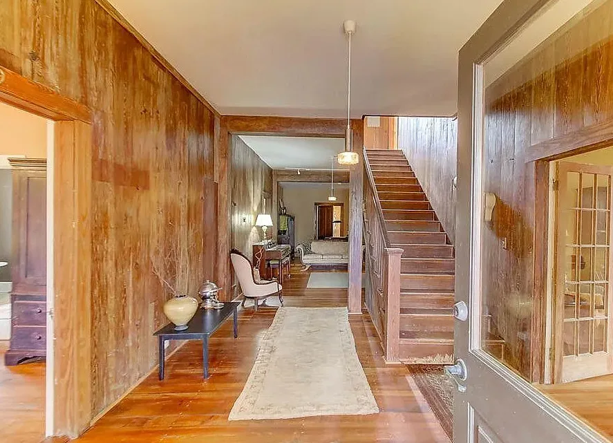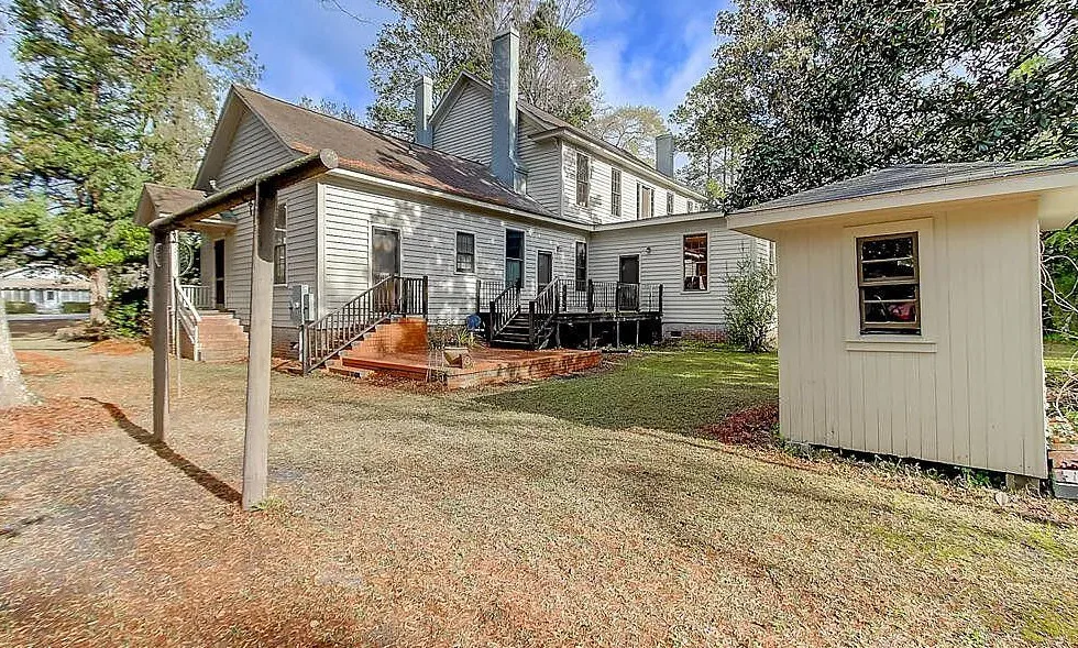 This house has a pretty setting! I love the moss-draped trees on the property! The house was built in 1933. It is located on 1.02 acres in St. George, South Carolina. The house features a covered front porch, a large back patio, back deck, wood floors, baseboards, french doors, vintage light fixtures and a claw foot tub. This is a big house! Seven bedrooms, seven bathrooms and 4,350 square feet. $339,000