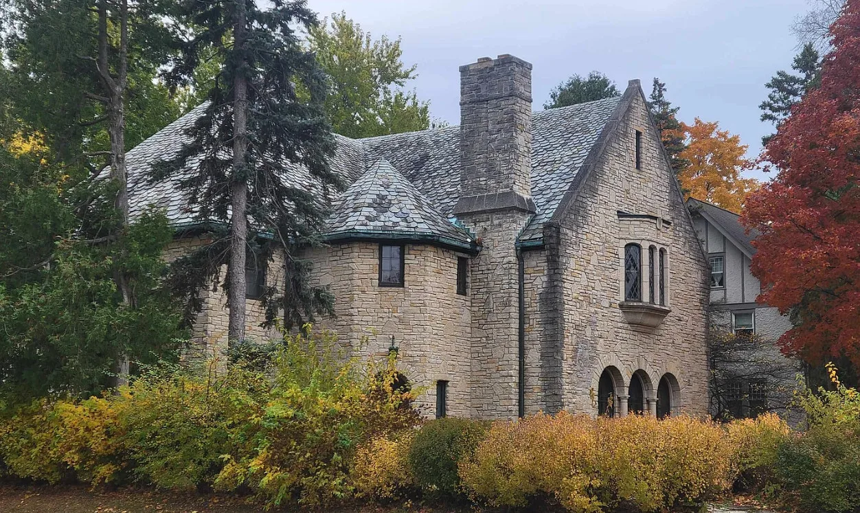 This seems like a lot of house for the money! I love that basement! It’s a big house with almost 10,000 square feet. The house was built in 1926. It is located on .36 acre in Green Bay, Wisconsin. The house features wood floors, grand staircase, arched windows with stained glass, baseboards, paneled den, crown moulding, vintage tiled bathrooms, built-in bookshelves, slate roof, basement with english style pub and built-in china cabinets. Five bedrooms, six bathrooms and 9,588 square feet. $625,000