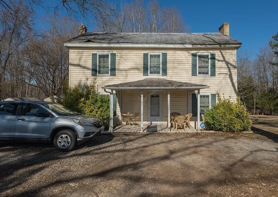 This house has potential! They place all the value in the acreage, but I have seen worse. The house was built in 1923. It is located on 14.68 acres in Powhatan, Virginia. The house features a covered front porch and wood floors. Wish they showed more of the interior. There are two detached storage sheds on the property. Three bedrooms, one bathroom and 1,577 square feet. $248,000