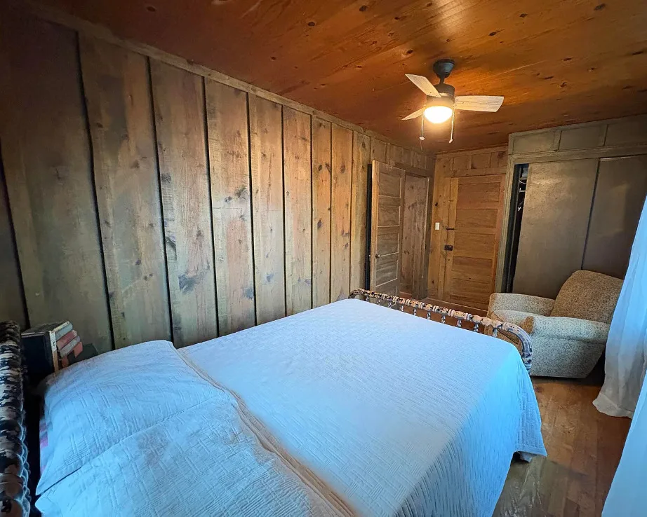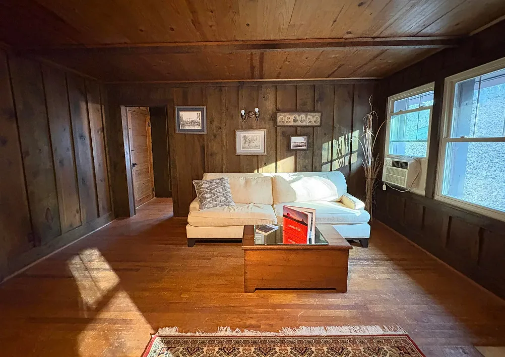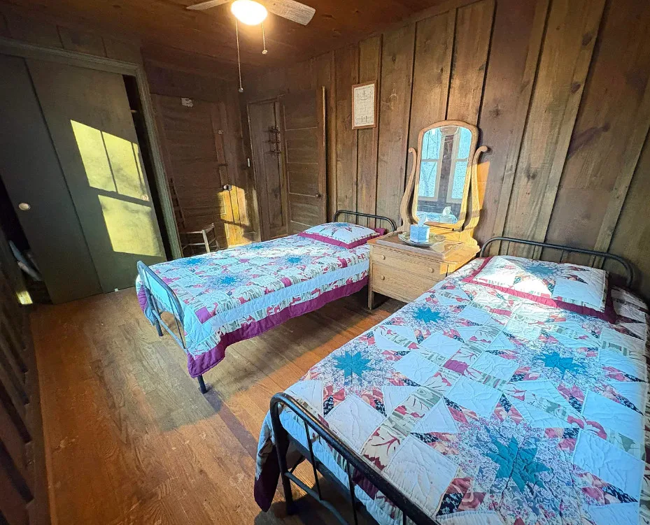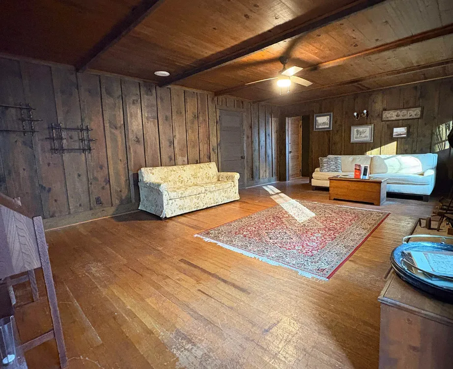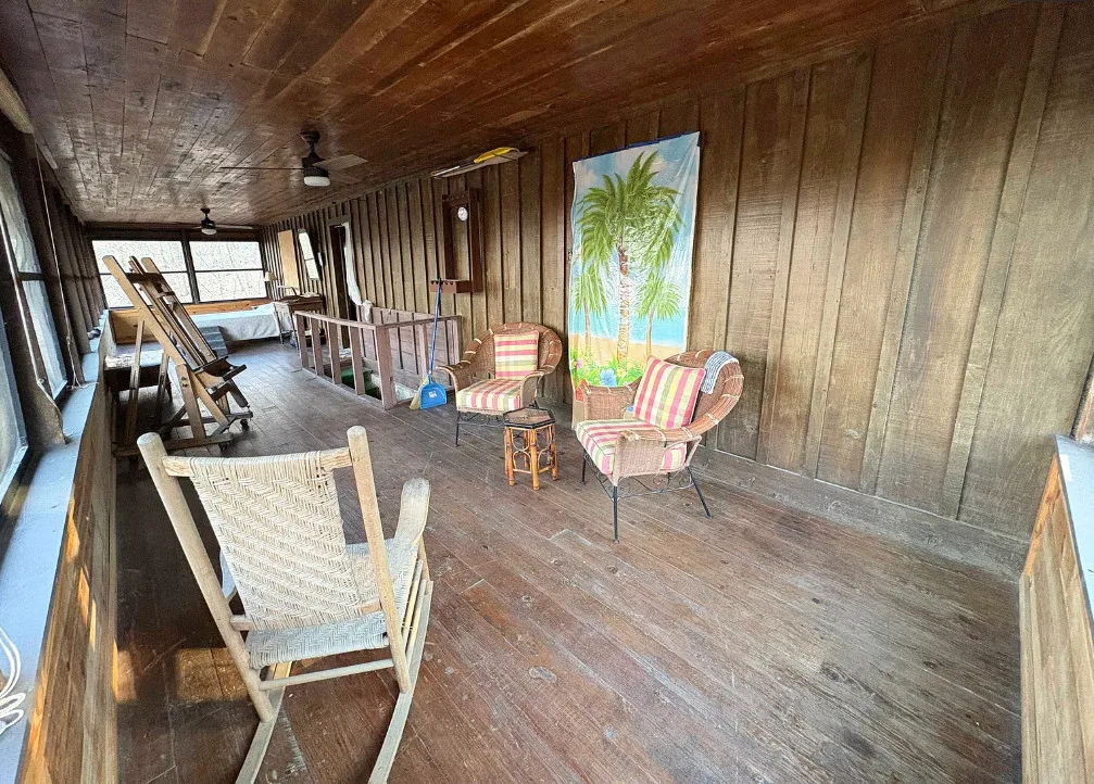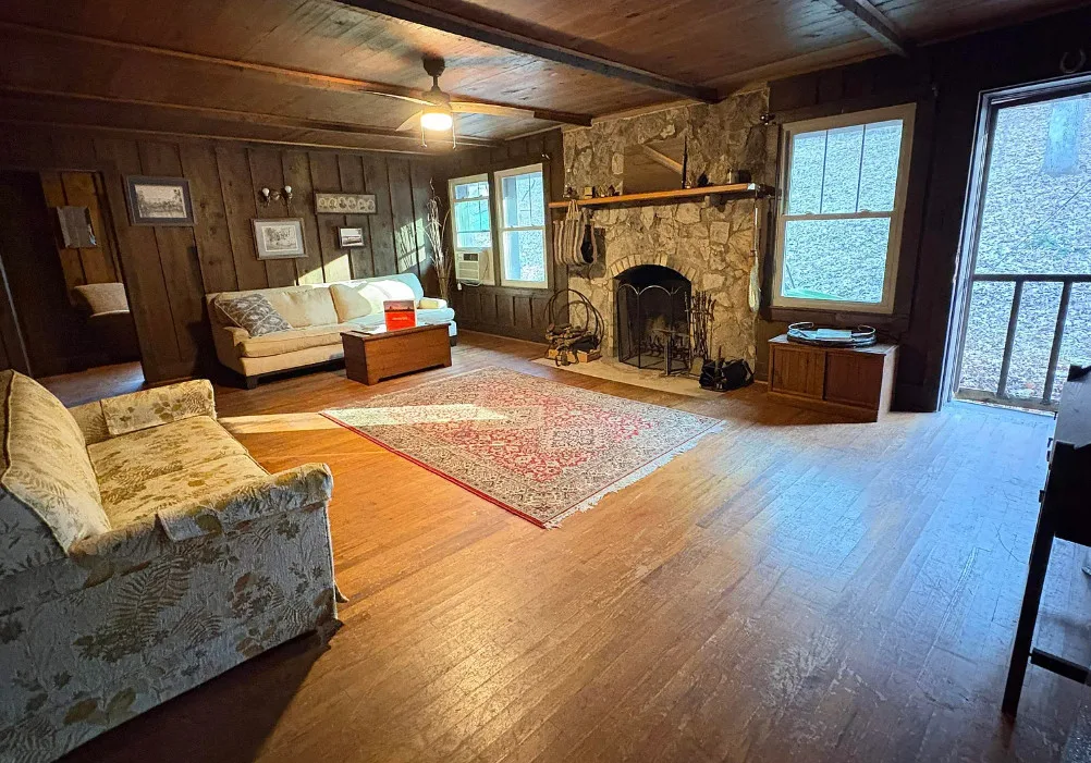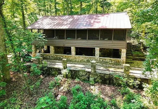 This is a nice cabin in the Ozark Mountains. It sits high above the Spring River. The cabin was built in 1937. It is located on 4.34 acres in Highland, Arkansas. The house features a covered front porch, stone work, covered upper porch, wood floors, exposed beams, stone fireplace and bead board. The kitchen and bathrooms could use some work. Two bedrooms, two bathrooms and 1,512 square feet. $199,000