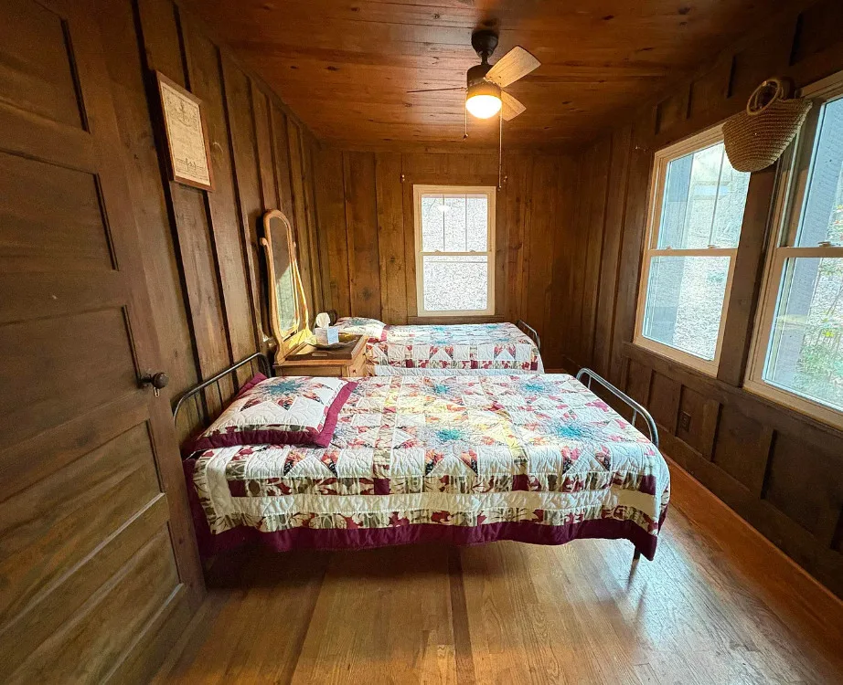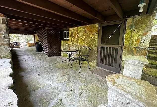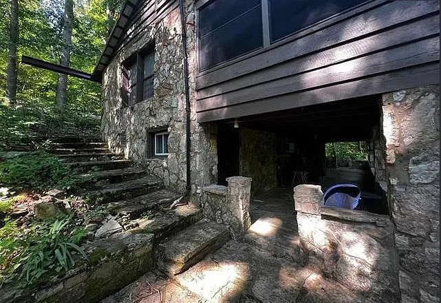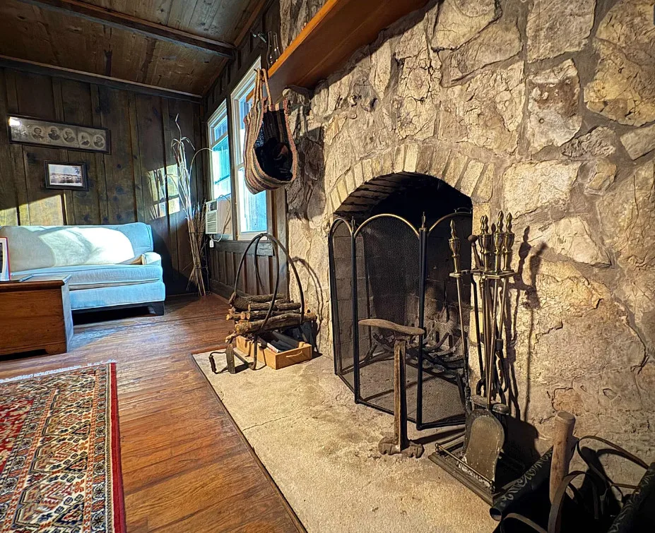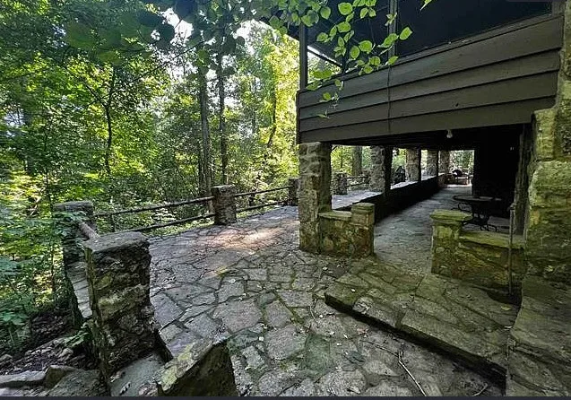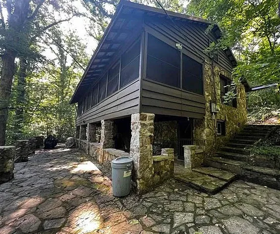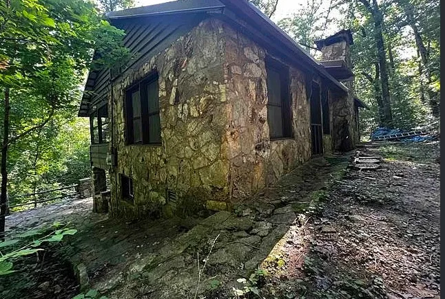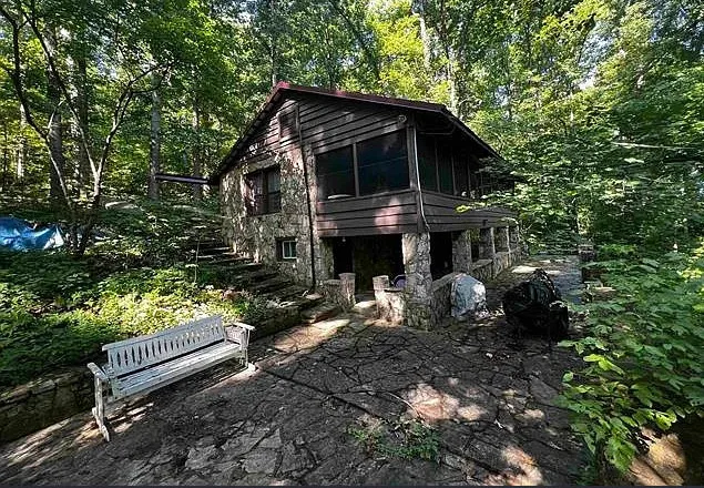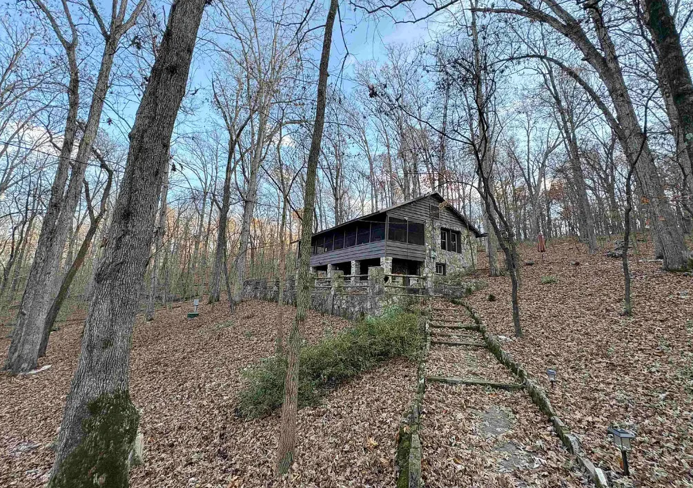 Unique 1937 cabin located in the Ozark Mountains on Historic Wahpeton Hill high above and just a short distance to Spring River, Loberg park, the river trails, the Hardy beach river access for swimming, kayaking, floating, world class fishing and downtown Old Hardy! 2 bed, 1.5 bath on 4.34 surveyed acres+/- in the depth of the woods yet minutes away from town amenities. Beautiful rock work all around the home, sit and relax outside while enjoying the fruits of nature. Main level includes living area, 2 bedrooms, large screened in porch, and a warming fireplace. Downstairs includes kitchen, full bath and half bath. Check out the history of this one of a kind property. Includes new roof 2022, new windows 2024, new insulation 2024.