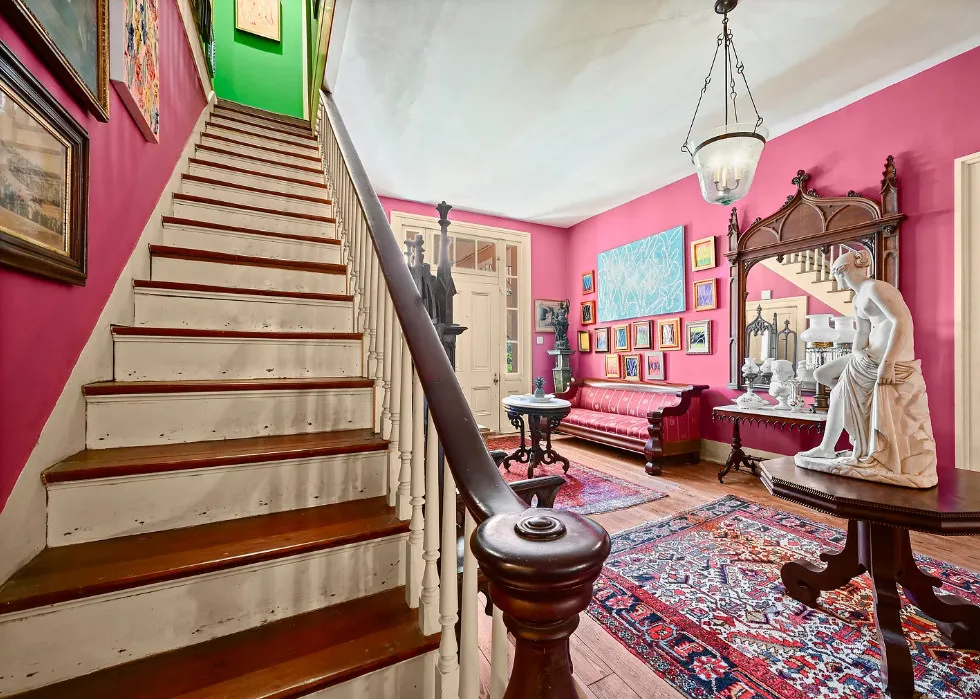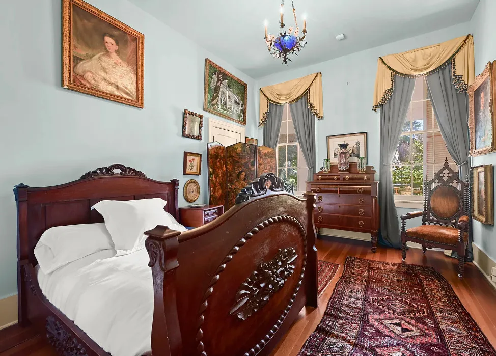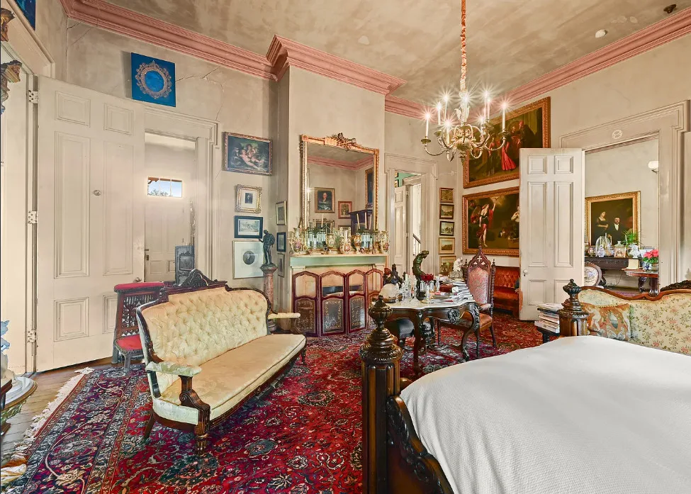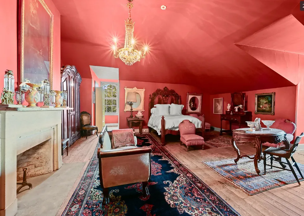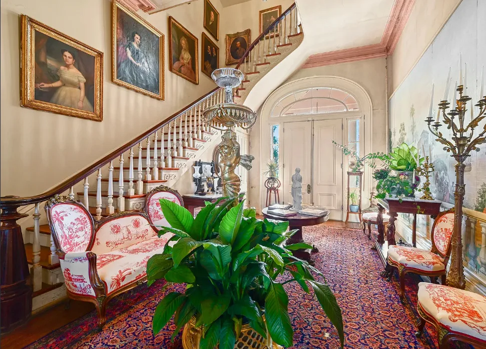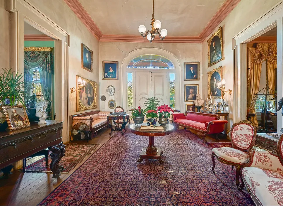 Talk about maximalism! That is this house! The home was built in 1830 by Charles Stewart. The land was once gifted by Thomas Jefferson to Marquis de Lafayette. The home is situated on 14 acres in Batchelor, Louisiana. The house features a grand staircase, soaring ceilings, wood floors, double porches, wide baseboards, pretty chandeliers and crown moulding. The house is on the banks of the Old River. Eleven bedrooms, four bathrooms and 11,270 square feet. $1,325,000