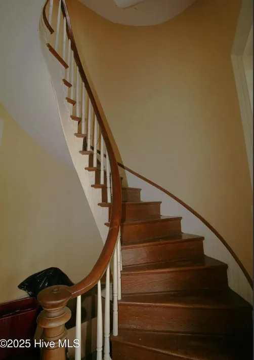 I love the staircase in this house! About an hour or so from the Outer Banks. The house features a large covered front porch, a detached garage. wood floors, wide baseboards, crystal chandelier, grand staircase, built-in bookshelves and finished attic space. The home is just one block from the Roanoke River. Wish there were more interior pictures. Three bedrooms, three bathrooms and 2,459 square feet. $254,900 New price: $240,000