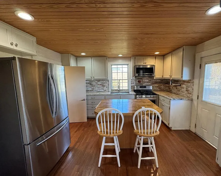 This 3-bedroom – 2-bath farmhouse is nestled on approximately two open acres in Patrick County, VA. The main floor features an foyer that leads into the living room and kitchen with center island, dining area, main-floor bedroom, full bath and laundry room. The full bath and laundry room was added in 2023. Step outside to enjoy the patio—perfect for relaxing or entertaining with friends and family from the dining area. Upstairs, the second floor offer 2 bedrooms and a large open area at the top of the stairs that can be used as an office. Recent updates include an on-demand water heater, double-pane double-hung windows and a new well pump installed in 2022. Workshop 14′ x 28′ with windows and electricity, also a 20′ x 12′ wooden storage building. Fenced-in garden area ready for your vegetables or flowers. The open, level land provides plenty of space to enjoy the peaceful country lifestyle. Just minutes from Stuart, VA. 35 minutes to Mt. Airy, NC. It’s ideal for anyone seeking the comfort and beauty of rural living. Sold as is!