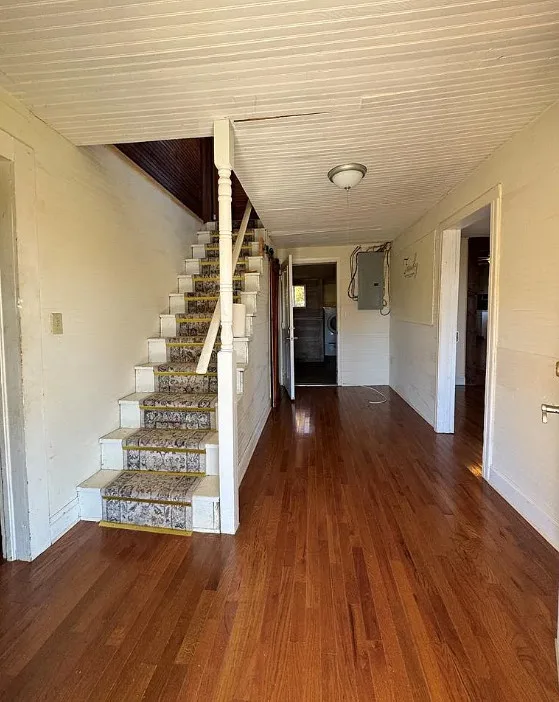 This house is in a pretty area of Virginia! I love the setting! The house was built in 1900. It is located on two acres in Stuart, Virginia. The house features a covered front porch, wood floors, baseboards, bead board and wide plank wood floors upstairs. There is a detached one car garage. The house has an updated kitchen. Three bedrooms, two bathrooms and 1,739 square feet. $244,000