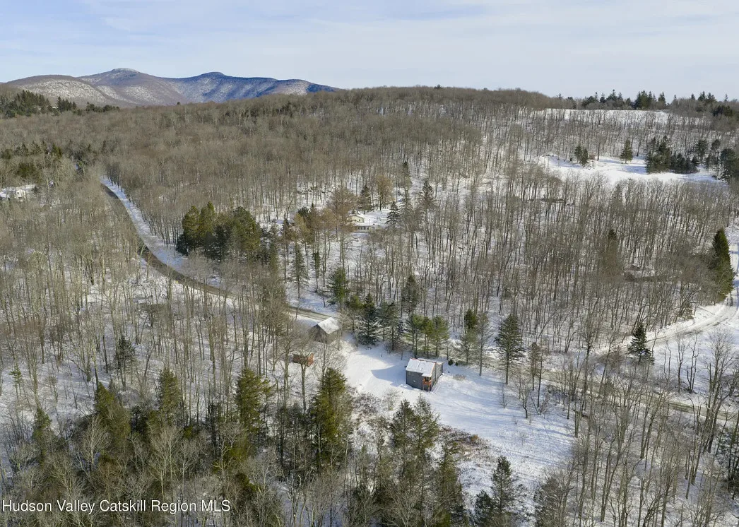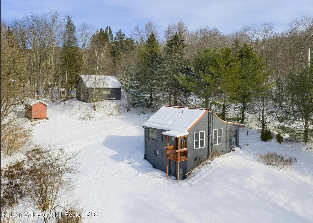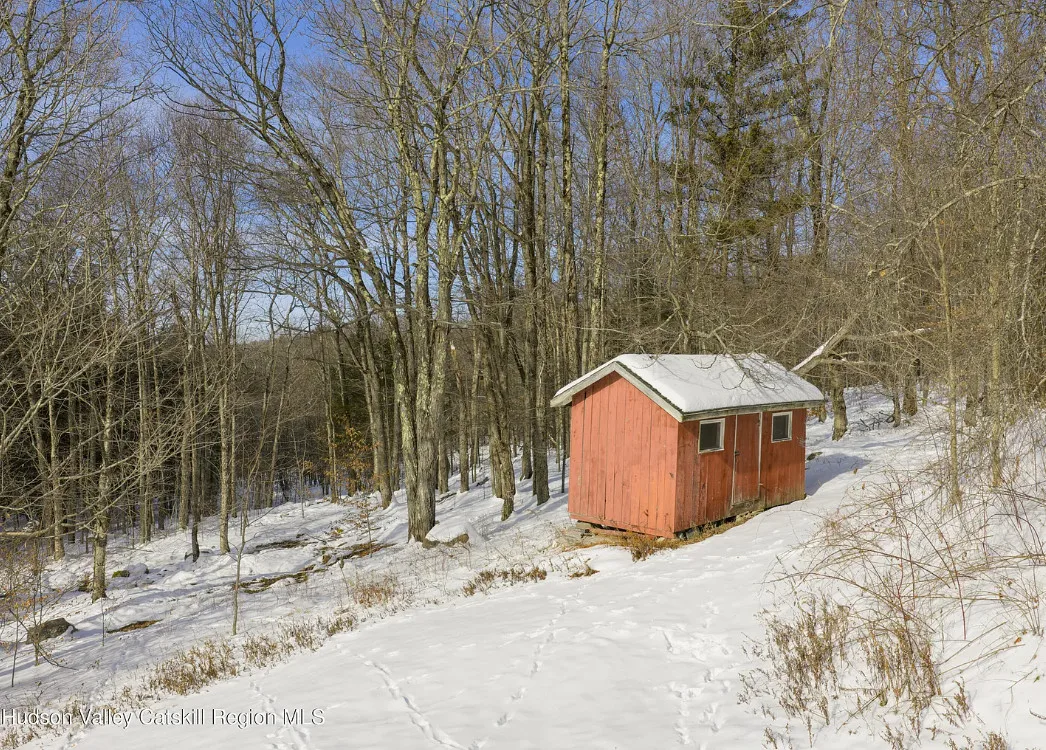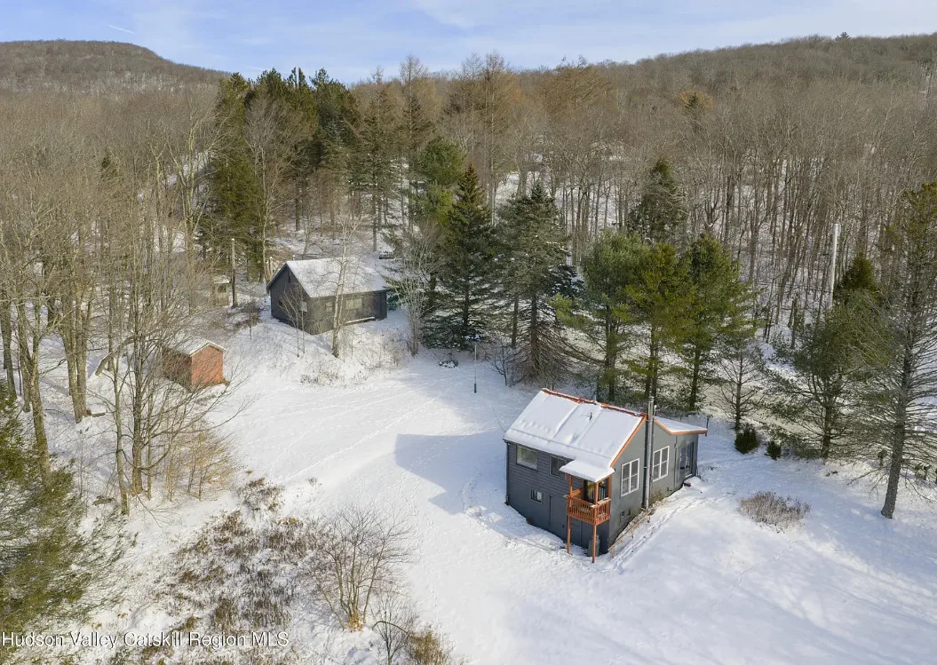 Where the meadows meet the mountains. Winding roads guide you through this special corner of the Catskills, where open fields and rolling hills shift into steeper slopes and dramatic views. Situated on 3 bucolic acres, surrounded by mountains and hundreds of acres of state land, this perfectly appointed petite retreat packs a big punch. Vaulted ceilings create an open and airy vibe, and the lofted area is perfect for extra storage, a cozy reading nook, or a weekend guest. Oversized windows fill the home with light and keep nature in sight at all times. The property features rolling hills, woods to wander, seasonal streams, and expansive views of the surrounding beauty. A shed and a partially finished two bay garage complete the property, and the garage is brimming with potential to be a workshop or art space, as well as parking and storage. Nestled into the Sundown Wild Forest, this property is the perfect jumping off point to explore the area. There are attractions for year round fun with swimming at Peekamoos Blue Hole (15 mins), hiking to Red Hill Fire Tower (5 mins), and mountains in every direction for enjoying the fall colors! It’s 30 mins to Ellenville and Kerhonkson for shopping, dining, farm stands, and too-many-to-name fun local businesses to support. Venture a little further on incredibly scenic roads for skiing at Bellayre or brunch at the Phoenicia Diner!
