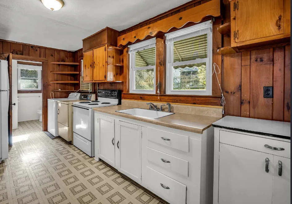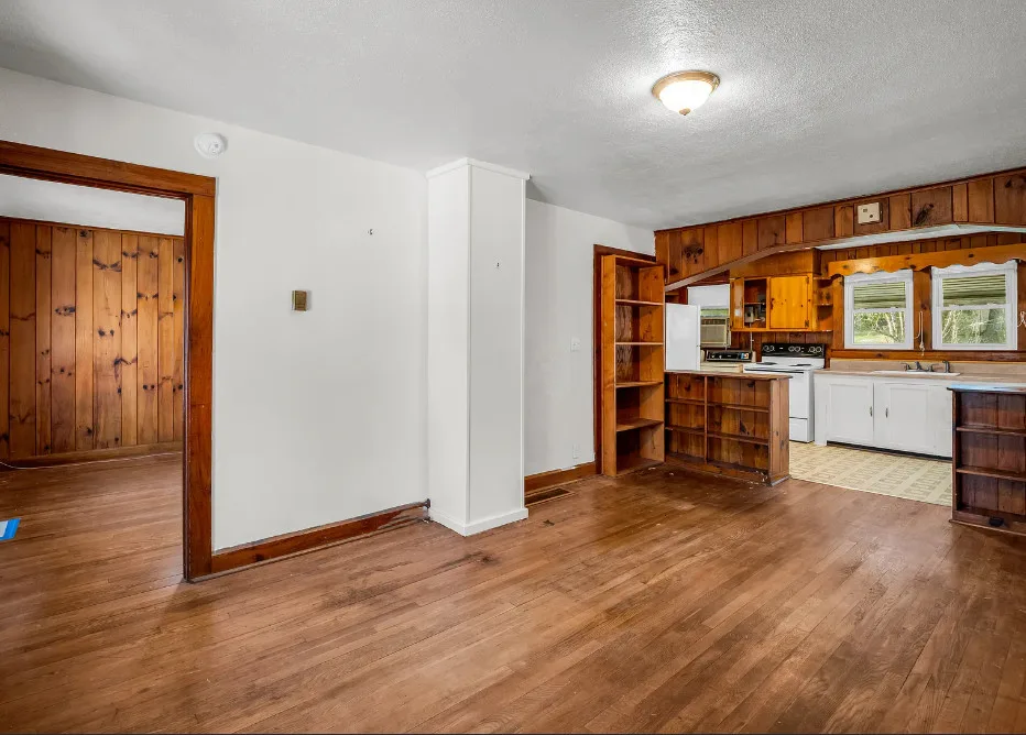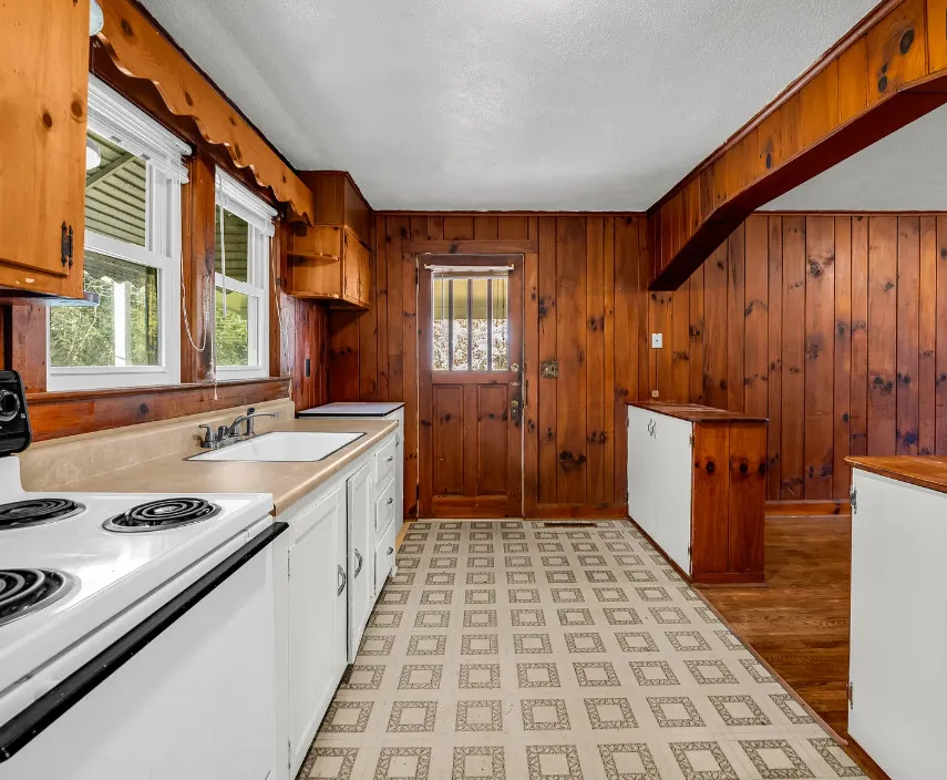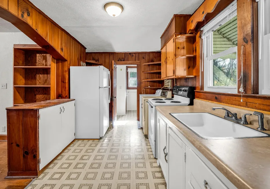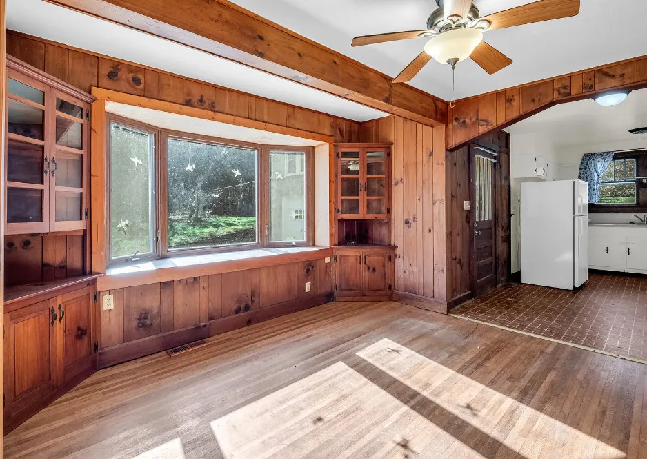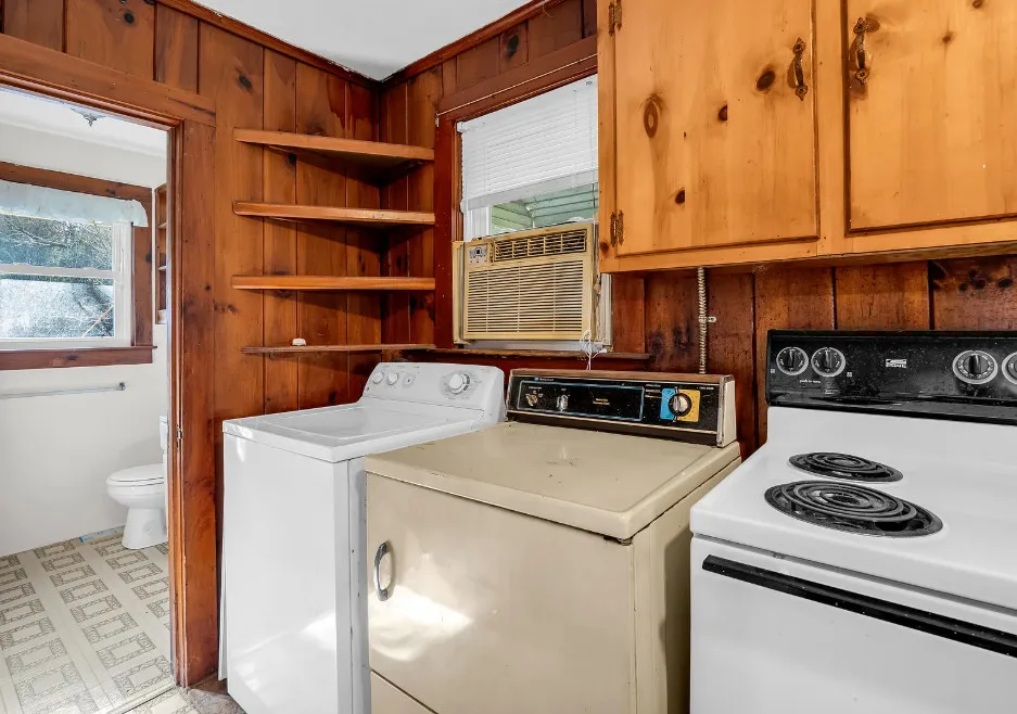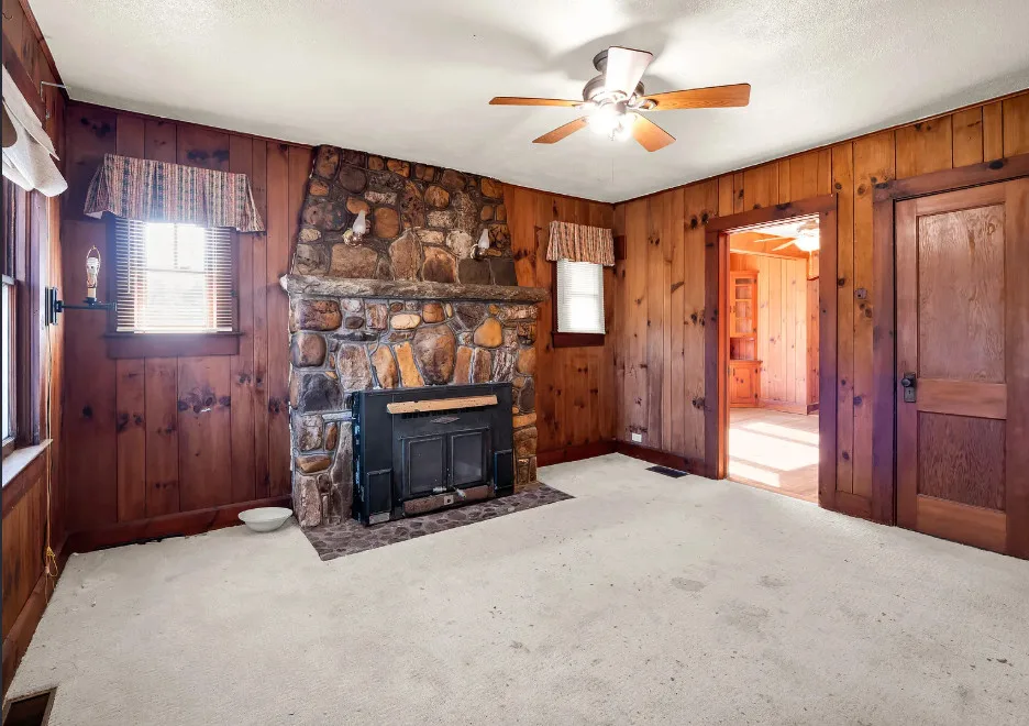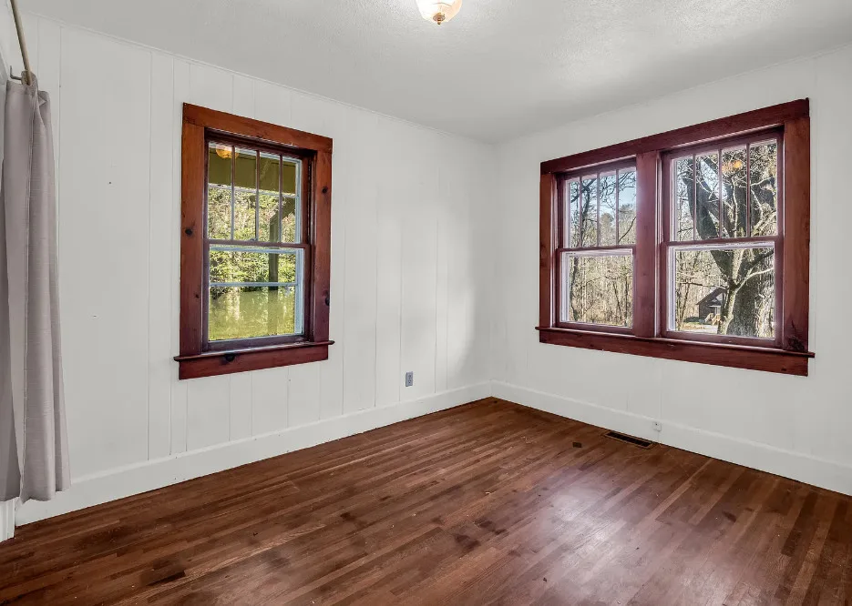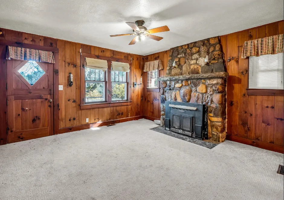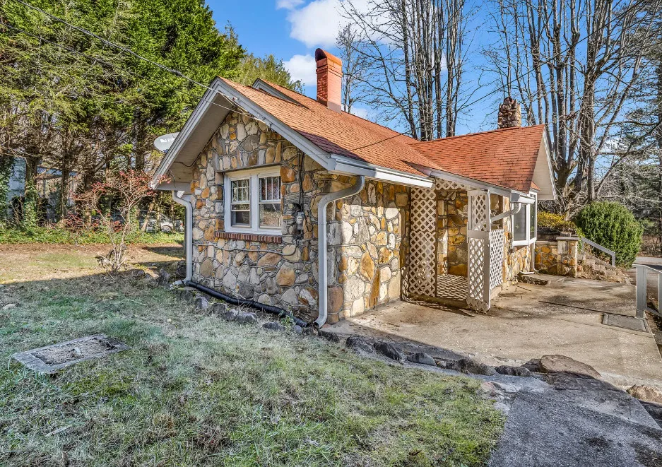 This house has pretty stonework! Beautiful area of North Carolina. Within walking distance to Lake Osceola. The house was built in 1936. It is located on .52 acre in Hendersonville, North Carolina. The house features a large patio, big stone fireplace, knotty pine, wood floors, built-in corner cabinets, built-in window sea and baseboards. There is a detached garage on the property. Two bedrooms, one bathroom and 946 square feet. $350,000