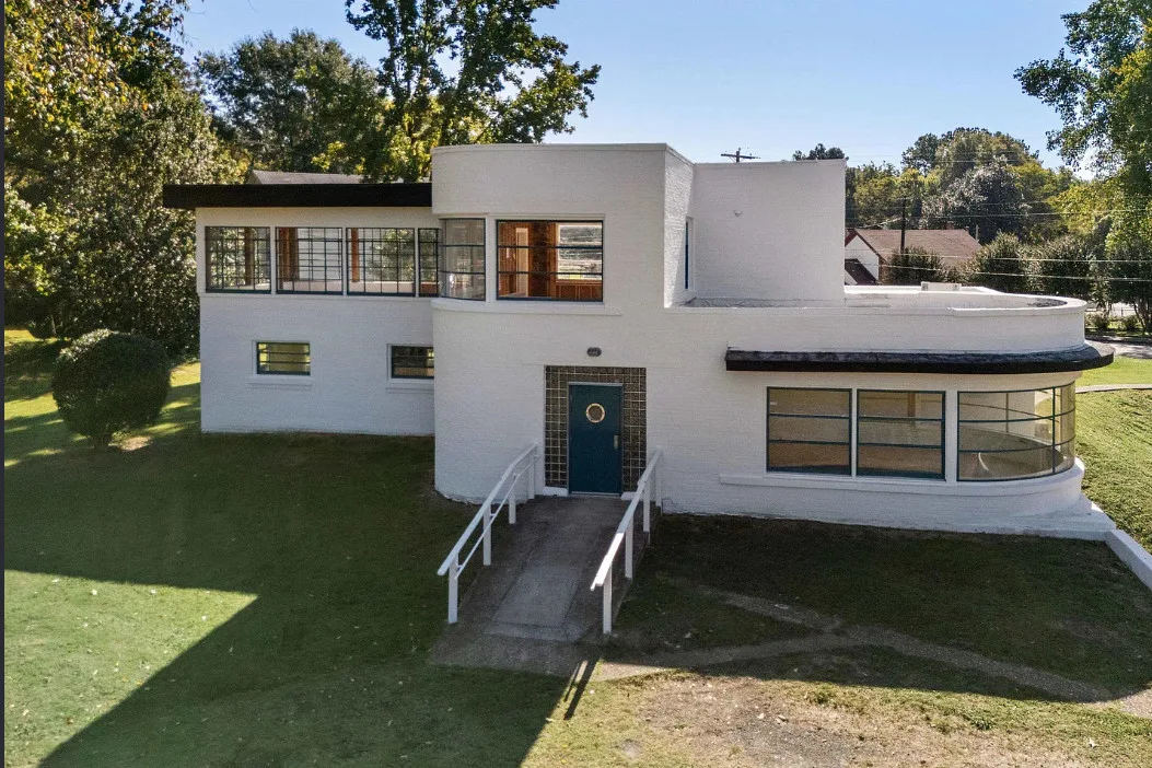 This looks like a house you would see in Miami, not Tennessee. This art deco home is known as the Frayser Bauhaus. It was built in 1946. It is located on 1.7 acres in Memphis,Tennessee. This house was last used as a private residence in 1958. This could definitely be a unique home! It has 3,055 square feet. $250,000