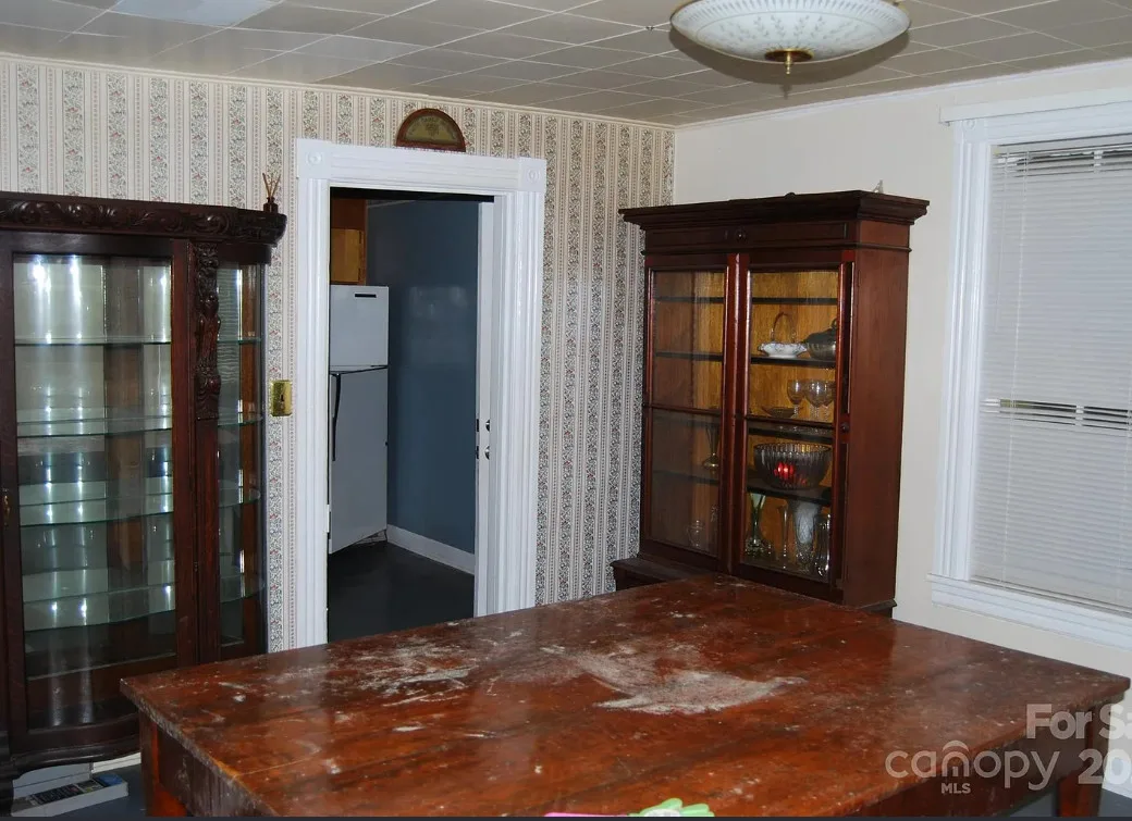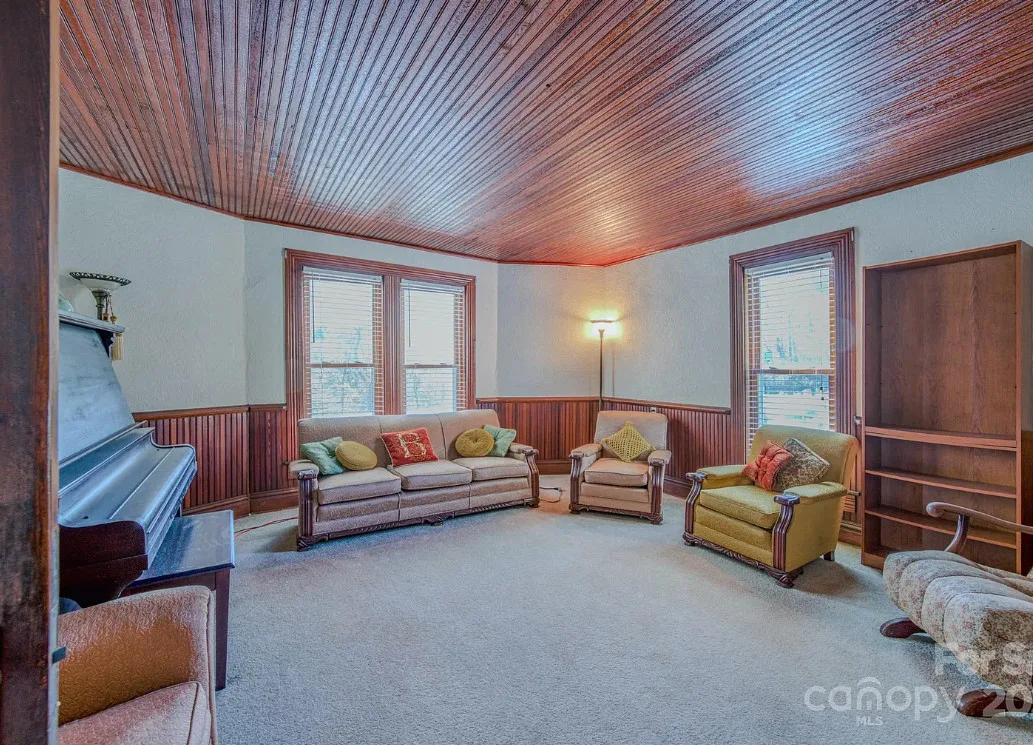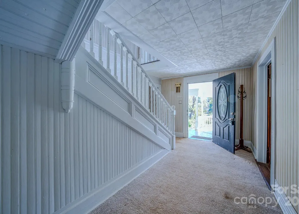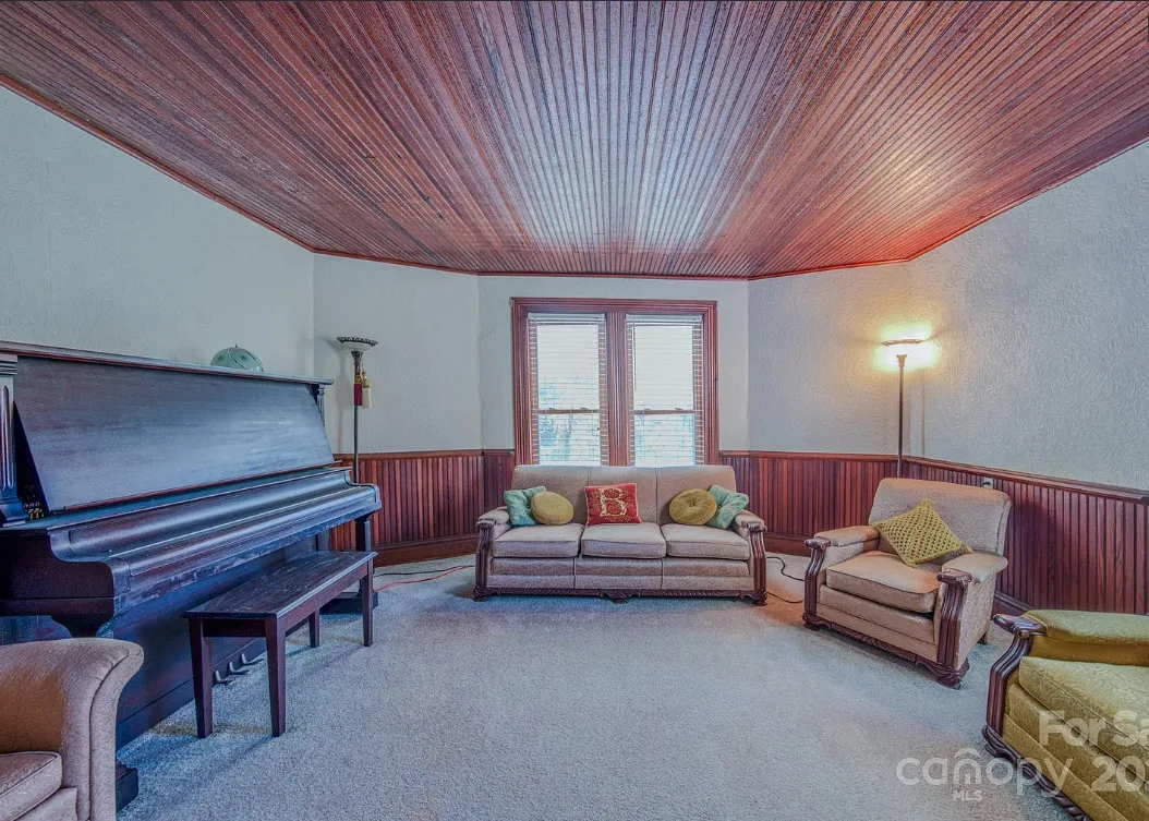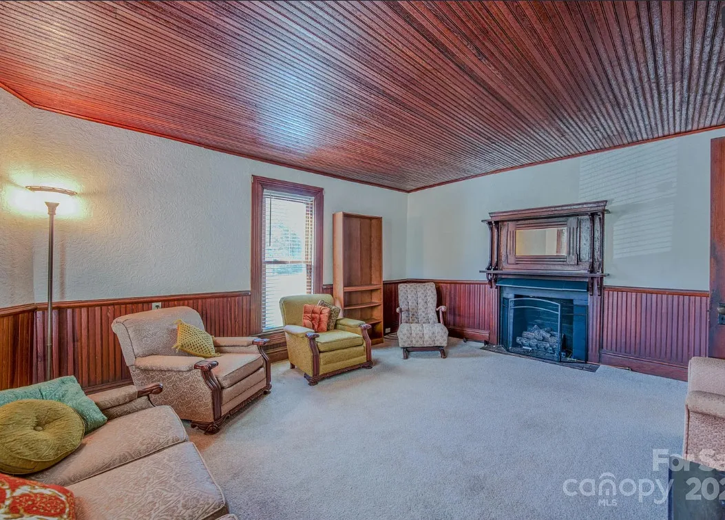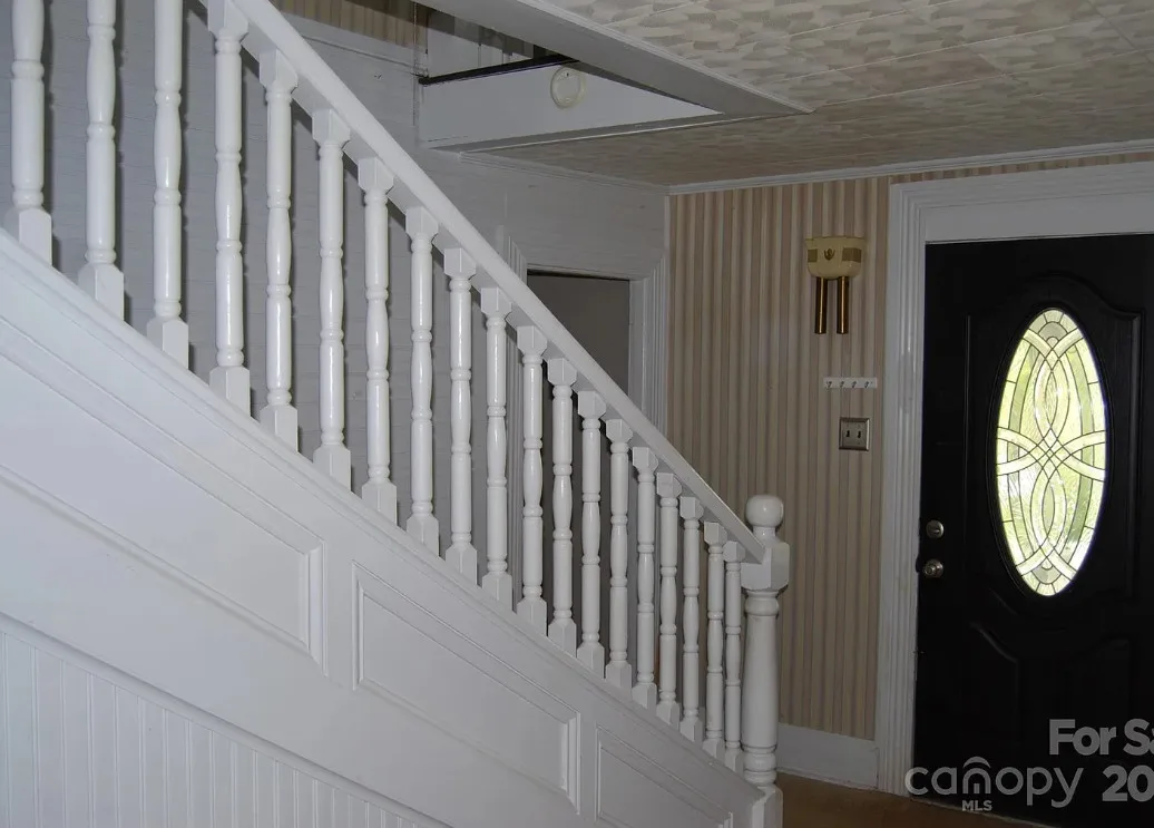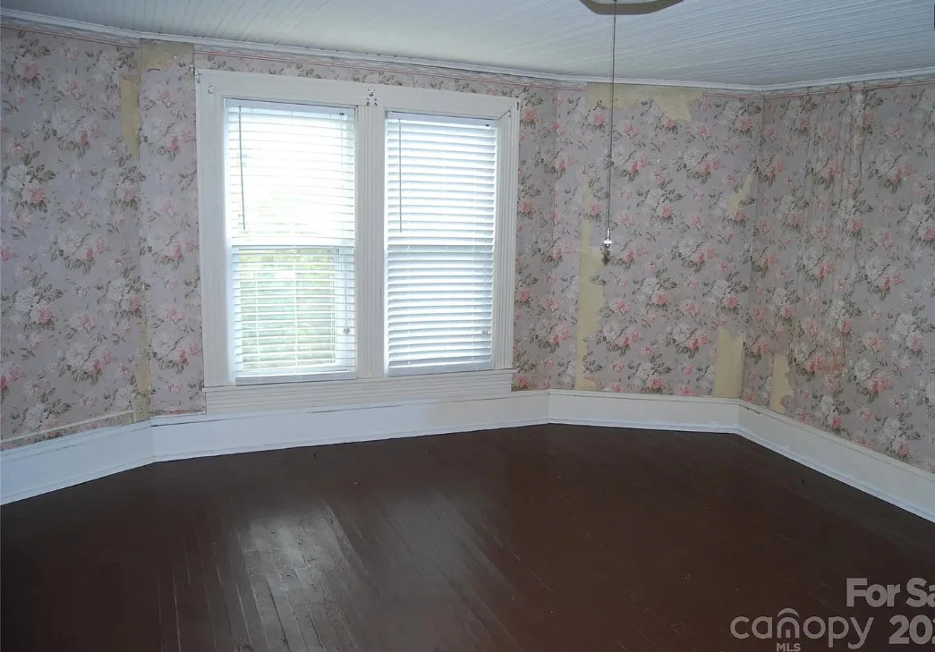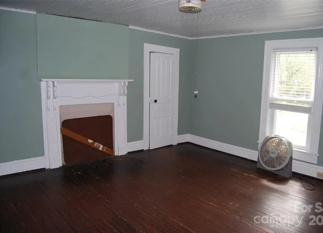 This house looks like a diamond in the rough to me! It has nice potential and a pretty setting! This house would really benefit from a floor plan being included with the listing. The house was built in 1884. It is located on 3.11 acres in Fairview, North Carolina. The house features a wrap around front porch, a large stone chimney, wide baseboards, crown moulding, wainscoting and bead board. There is a detached garage on the property. Five bedrooms, two bathrooms and 2,425 square feet. $345,000