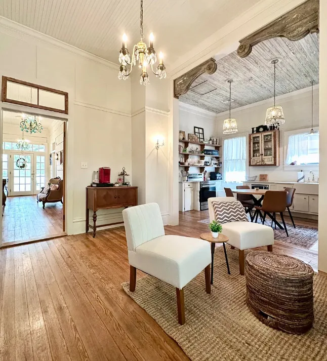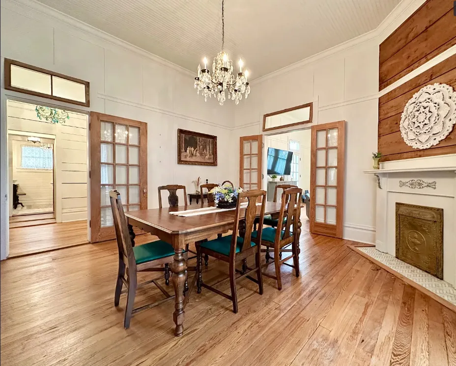 Love this house! It has a lot of pretty details! The house was built in 1911. It is located in Morgan City, Louisiana. The house features a covered front porch, original wood floors, tall ceilings, bead board, wide baseboards, transom windows, crown moulding and a claw foot tub. There is a large back yard, huge patio, big oak trees and a detached storage shed. Two bedrooms, two bathrooms and 1,852 square feet. $279,000