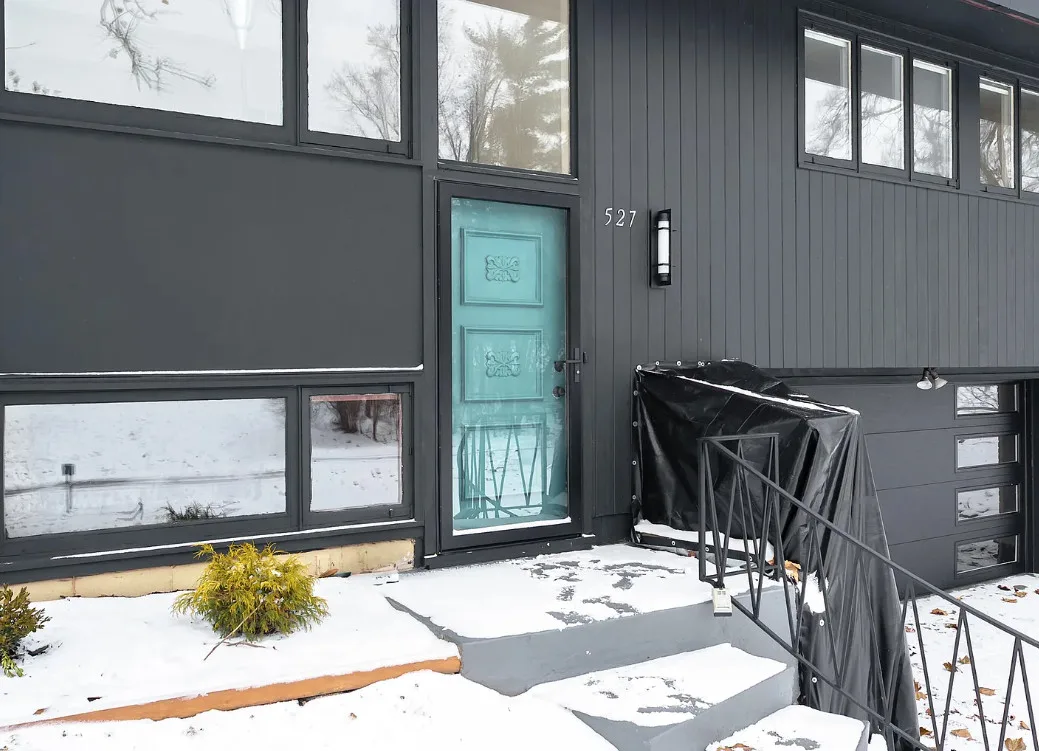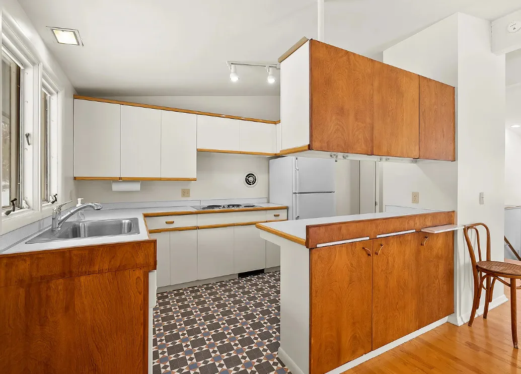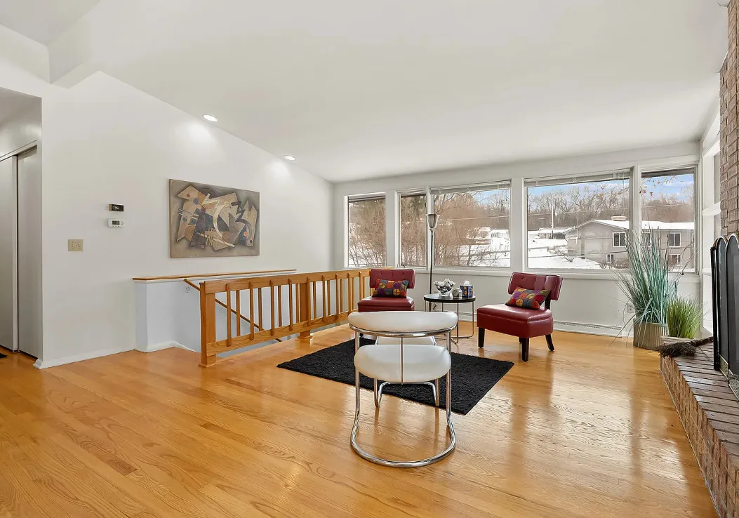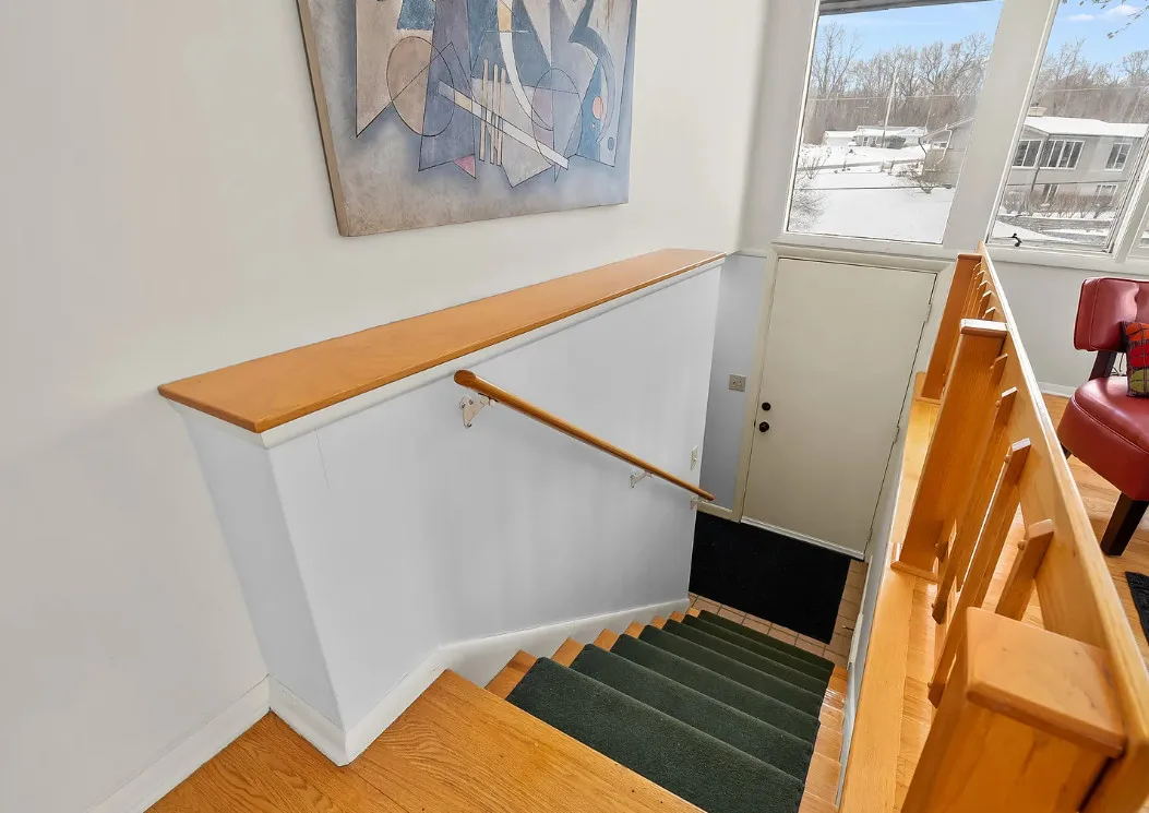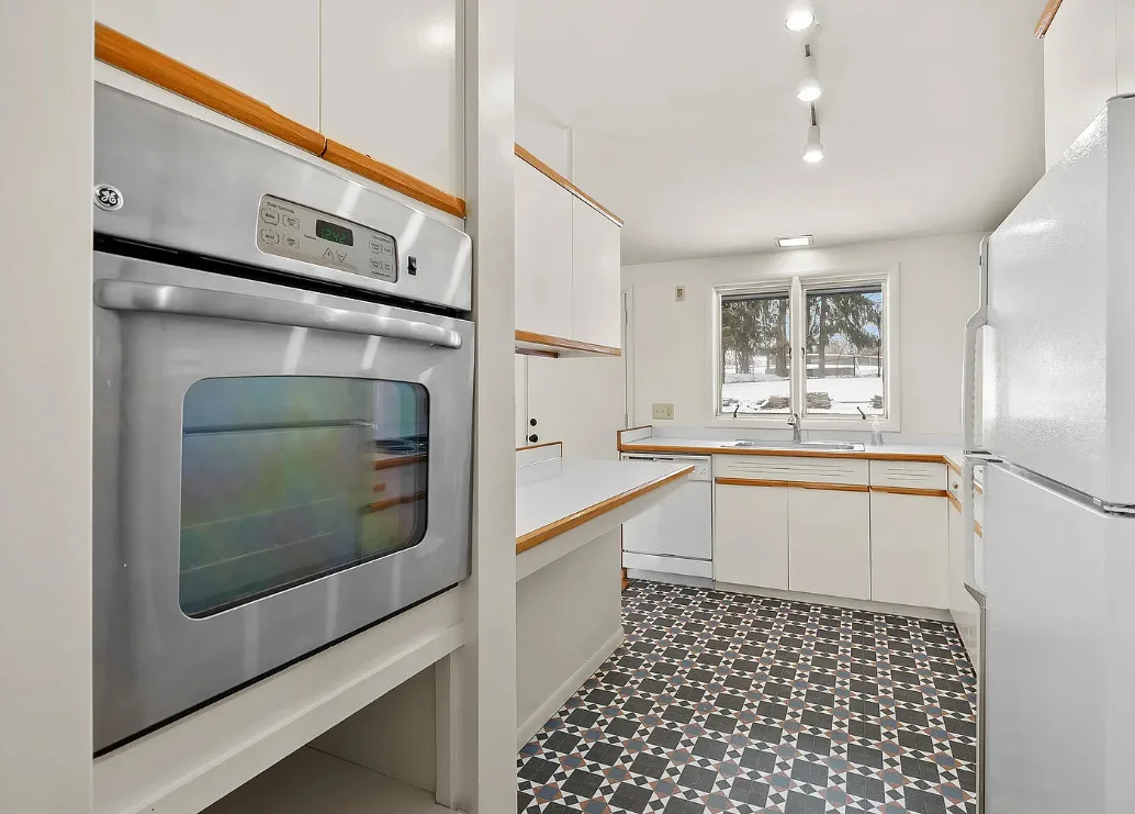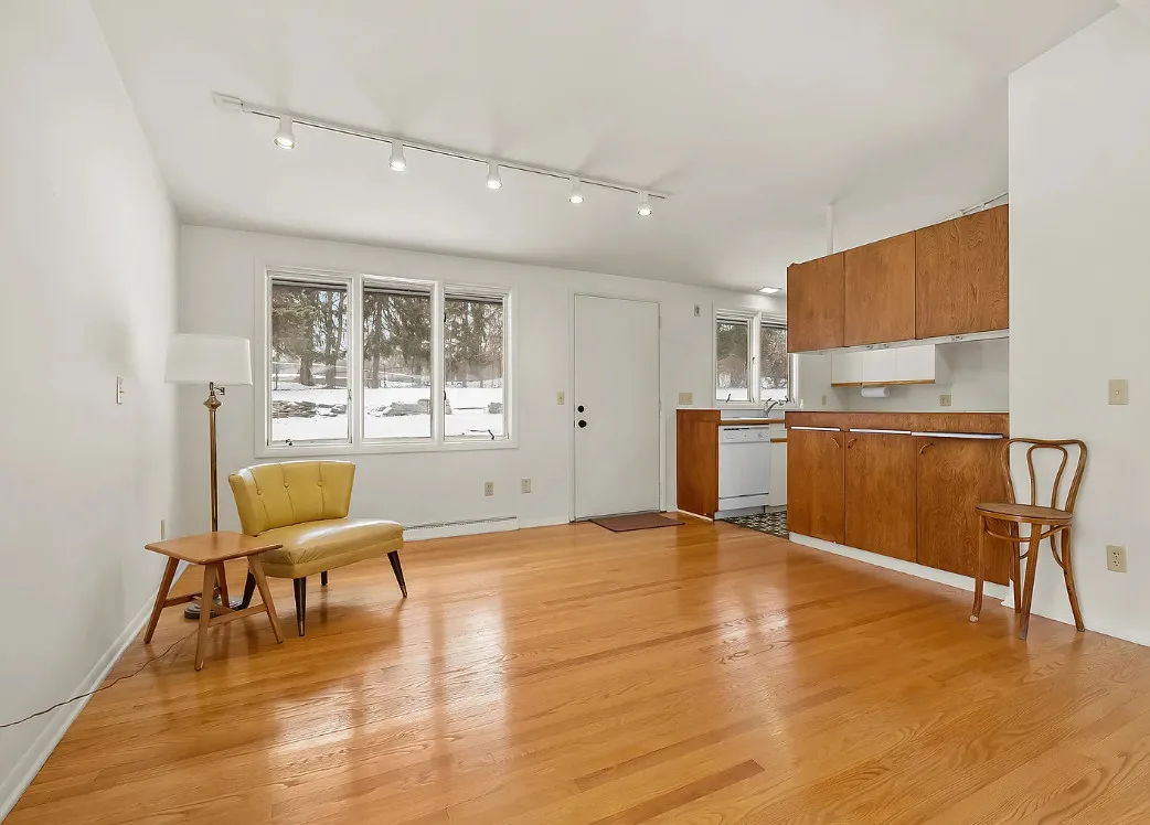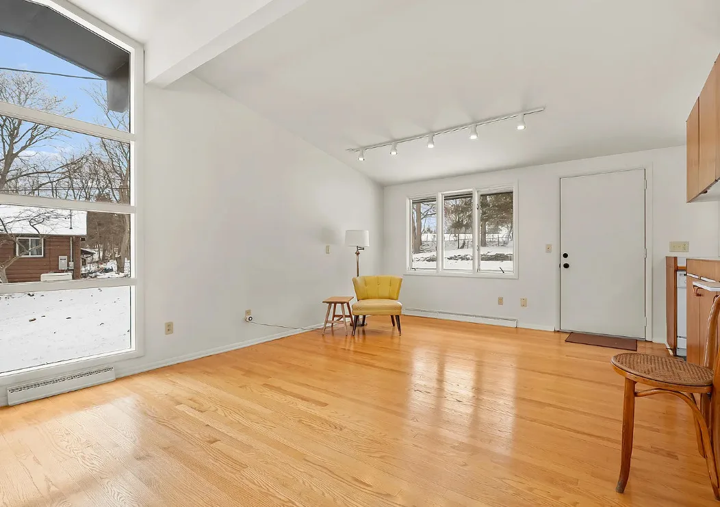Love the mid-century look of the exterior! The interior could use some mid-century infused back in. The house was built in 1957. It is located on .53 acre in Parchment, Michigan. The house features an attached garage, wood floors, brick fireplace, built-in bookshelves and a basement. There is a large backyard. Three bedrooms, two bathrooms and 1,432 square feet. $259,700