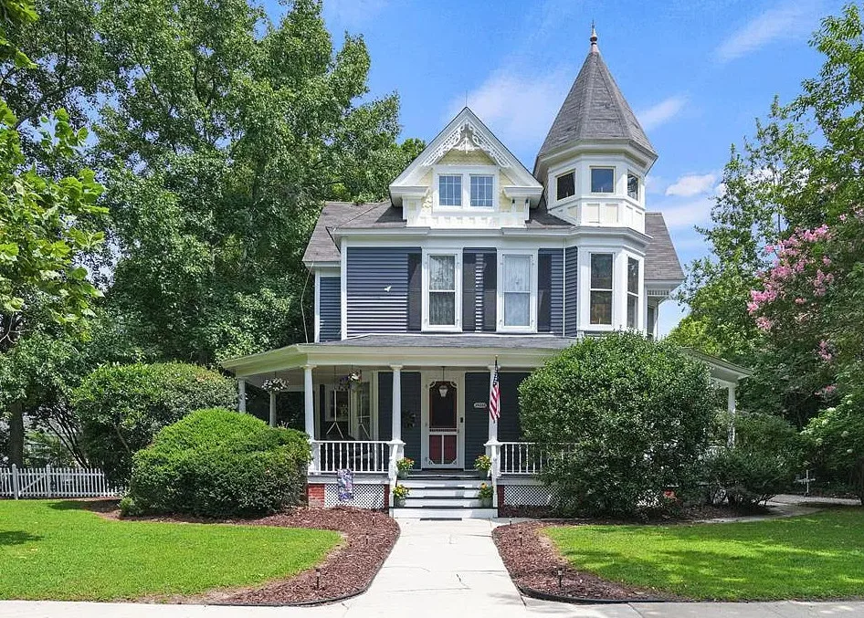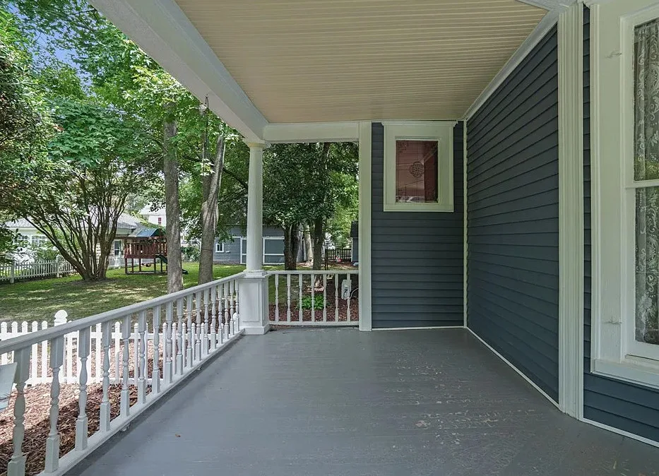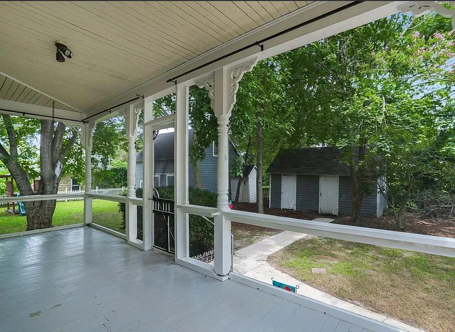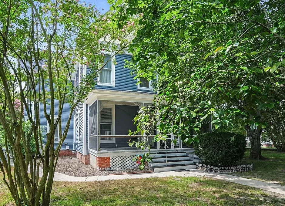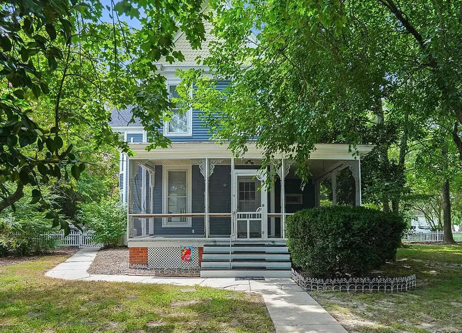 Porch goals! This house has some nice curb appeal! Pretty interior that is move in ready! The house was built in 1905. It is located on .45 acre in Parksley, Virginia. The house features a large wrap around front porch with swing, pretty staircase, original wood floors, tall ceilings, leaded glass, baseboards, crown mouldin, wainscoting, spacious kitchen, claw foot tub, picture rails, large bedrooms and a screened in back porch. There is a fenced in backyard with two storage buildings. Three bedrooms, two bathrooms and 2,672 square feet. $375,000