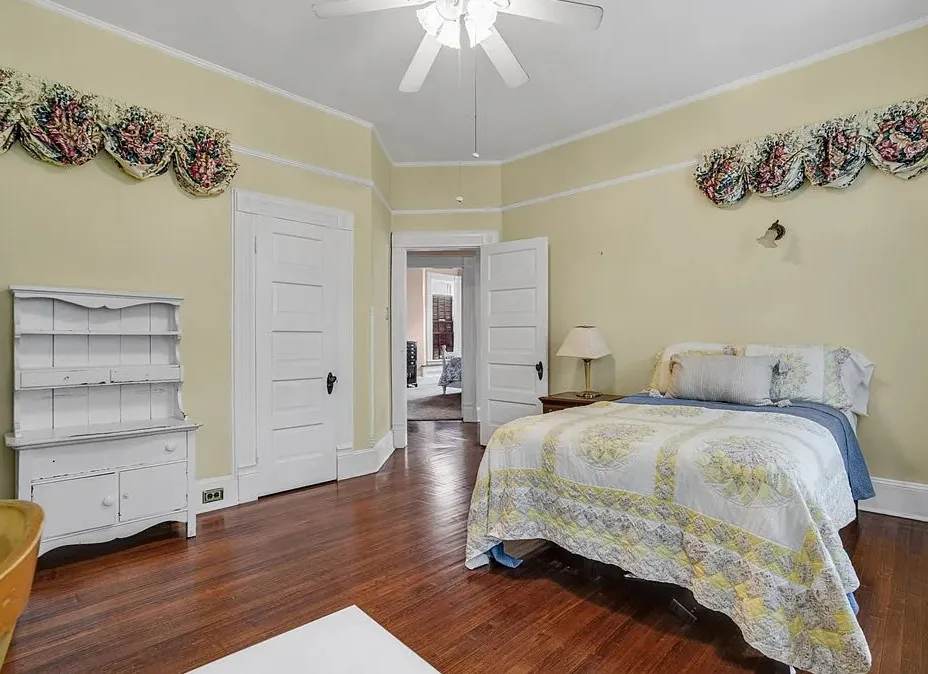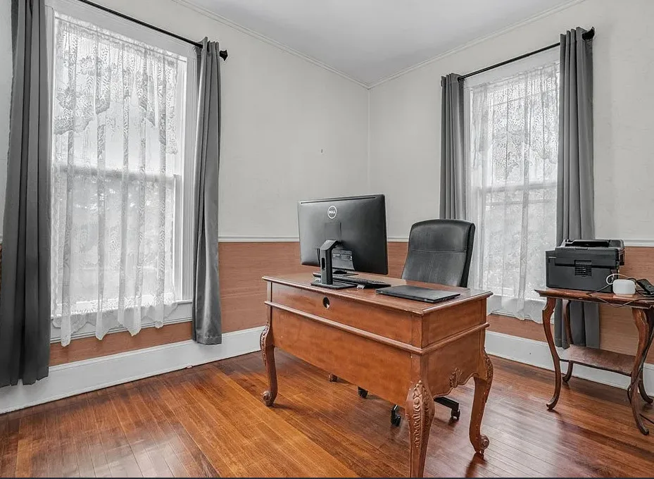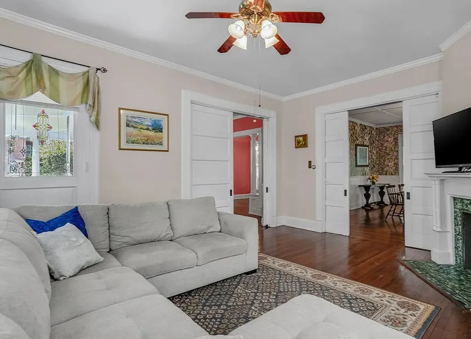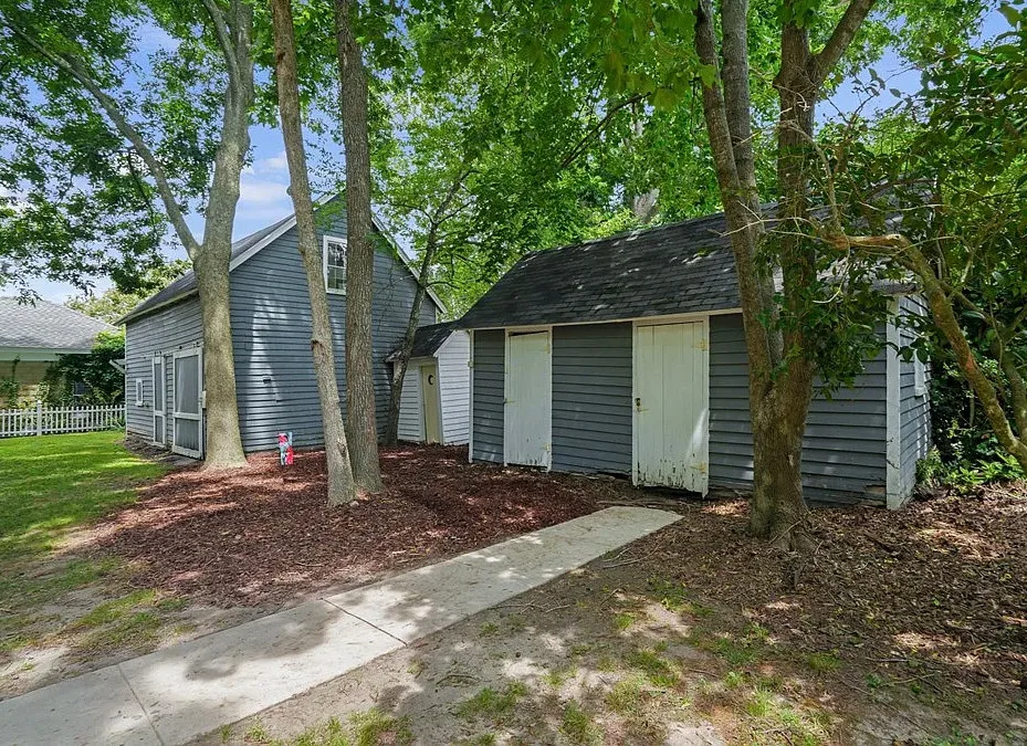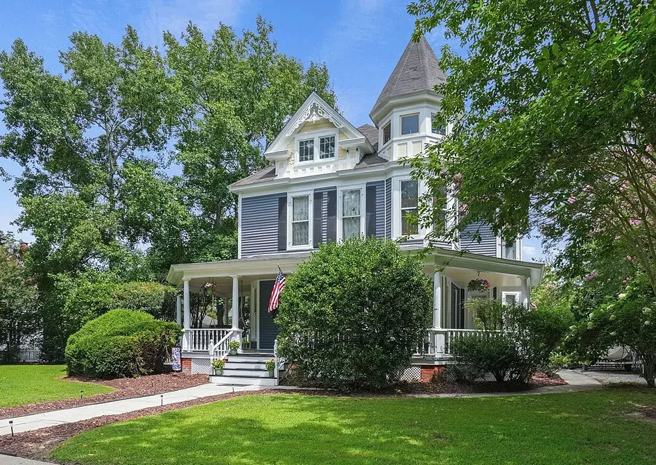 Porch goals! This house has some nice curb appeal! Pretty interior that is move in ready! The house was built in 1905. It is located on .45 acre in Parksley, Virginia. The house features a large wrap around front porch with swing, pretty staircase, original wood floors, tall ceilings, leaded glass, baseboards, crown mouldin, wainscoting, spacious kitchen, claw foot tub, picture rails, large bedrooms and a screened in back porch. There is a fenced in backyard with two storage buildings. Three bedrooms, two bathrooms and 2,672 square feet. $375,000