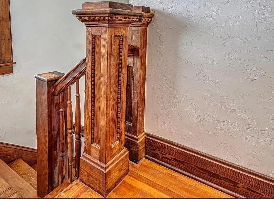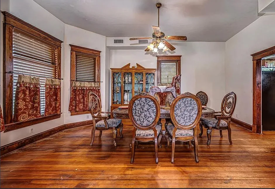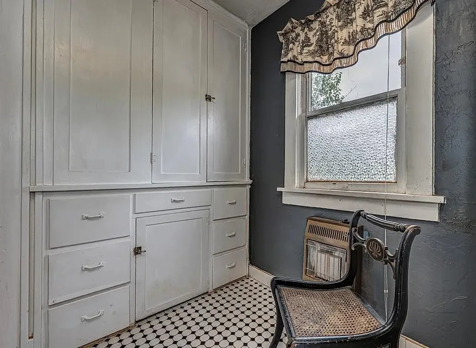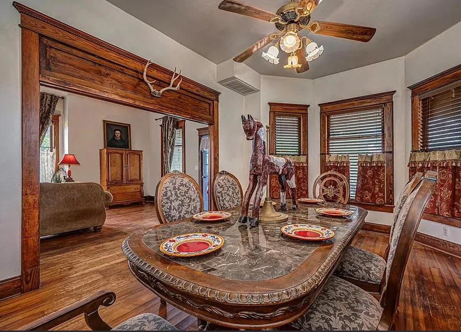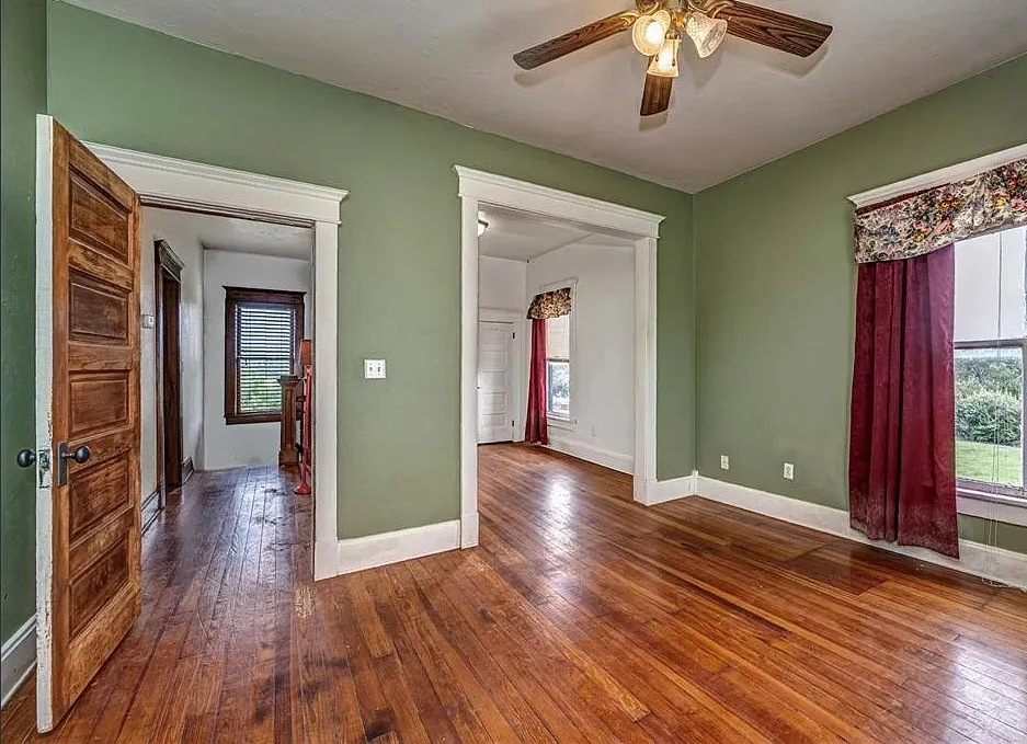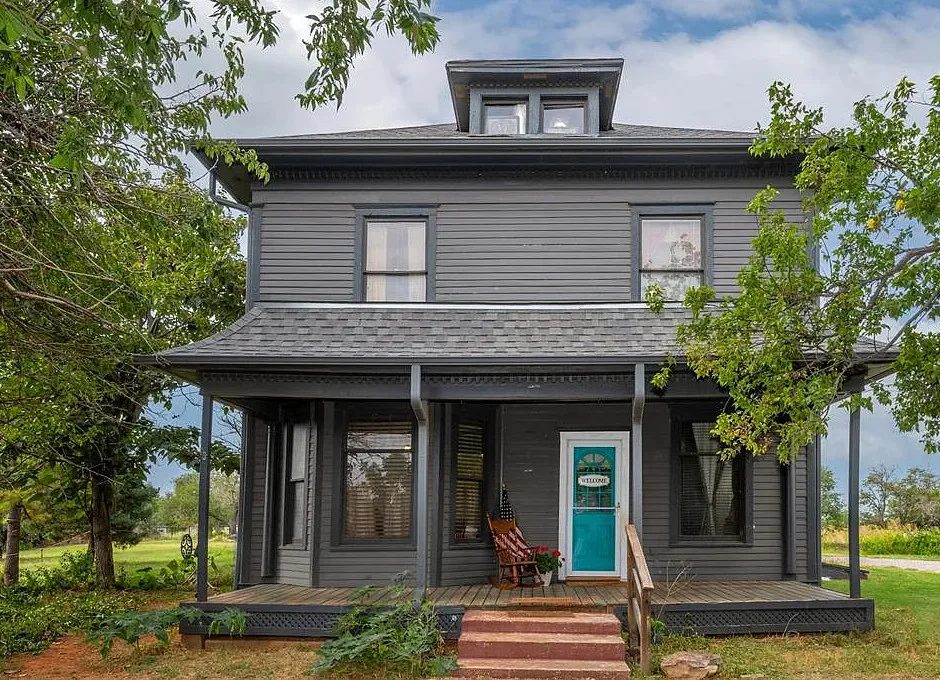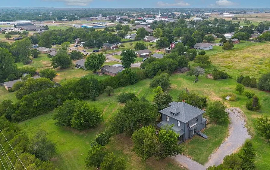 This house has some pretty woodwork! The house was built in 1940. It is located on 2.5 acres in Piedmont, Oklahoma. The house features a covered front porch, original wood floors, nice staircase, baseboards, built-in window seat and nice bathrooms. The house has a new roof. Three bedrooms, two bathrooms and 1,959 square feet. $229,000