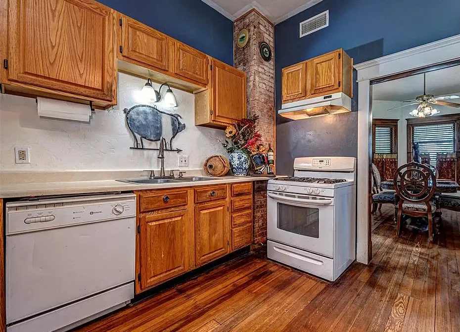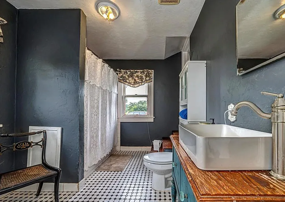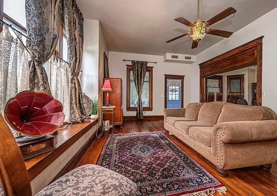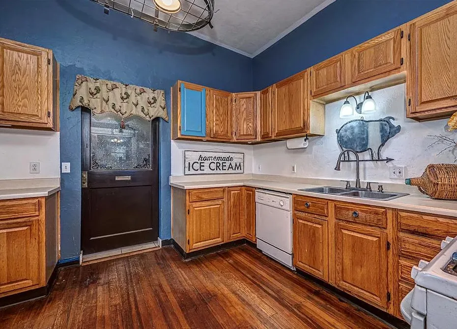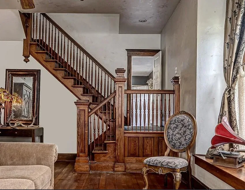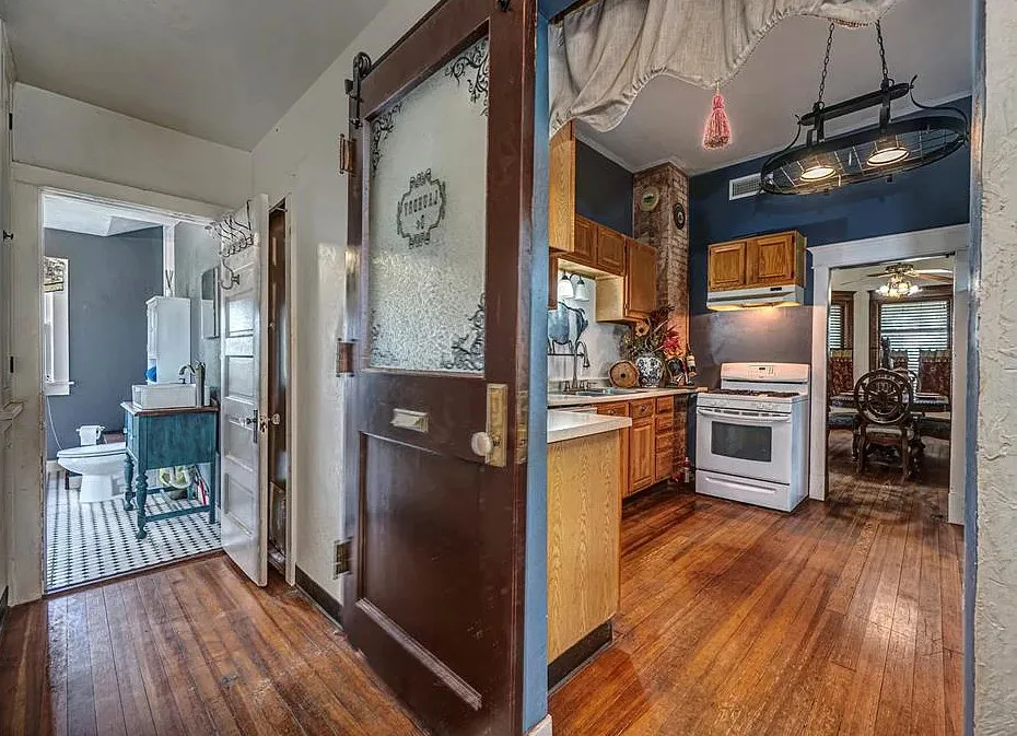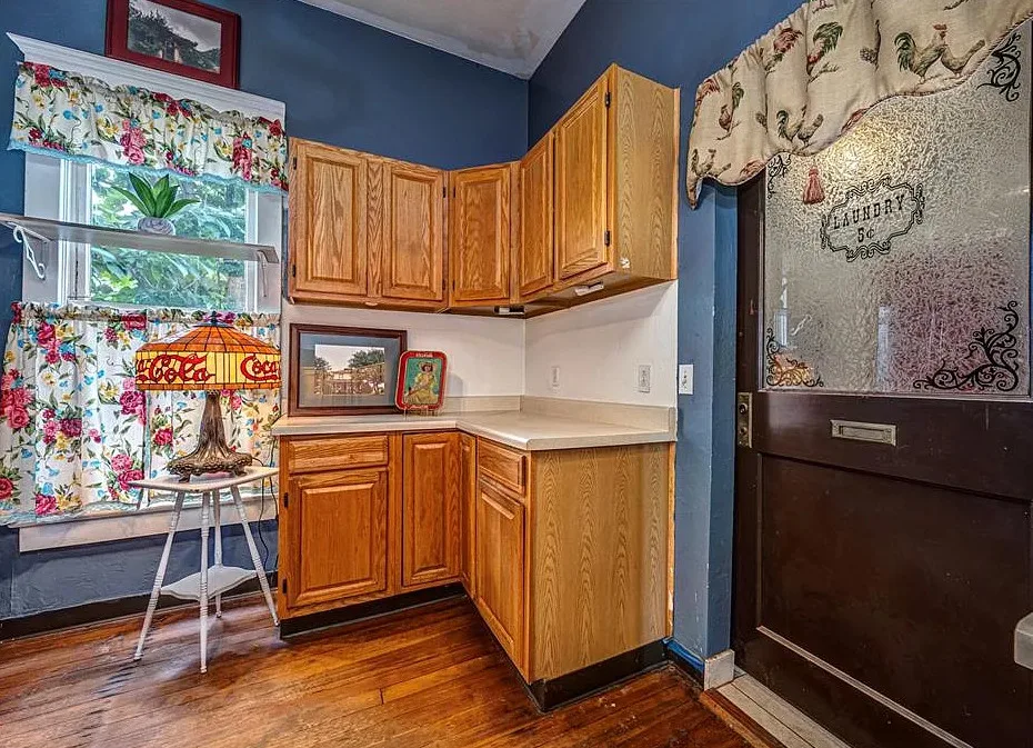 This house has some pretty woodwork! The house was built in 1940. It is located on 2.5 acres in Piedmont, Oklahoma. The house features a covered front porch, original wood floors, nice staircase, baseboards, built-in window seat and nice bathrooms. The house has a new roof. Three bedrooms, two bathrooms and 1,959 square feet. $229,000