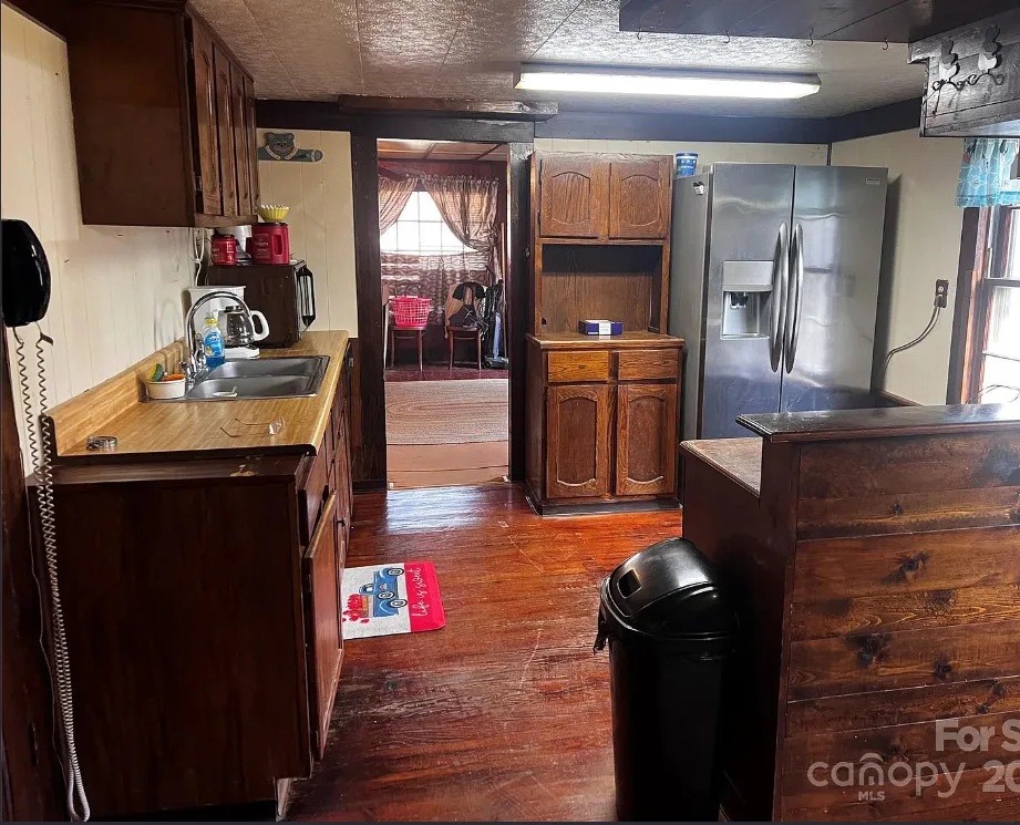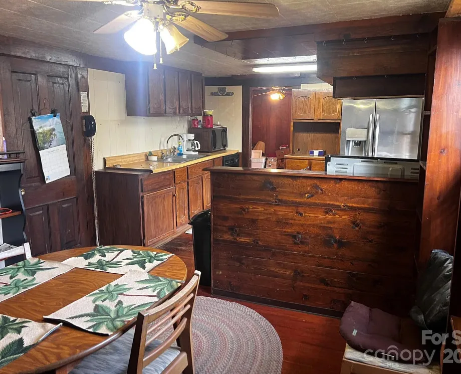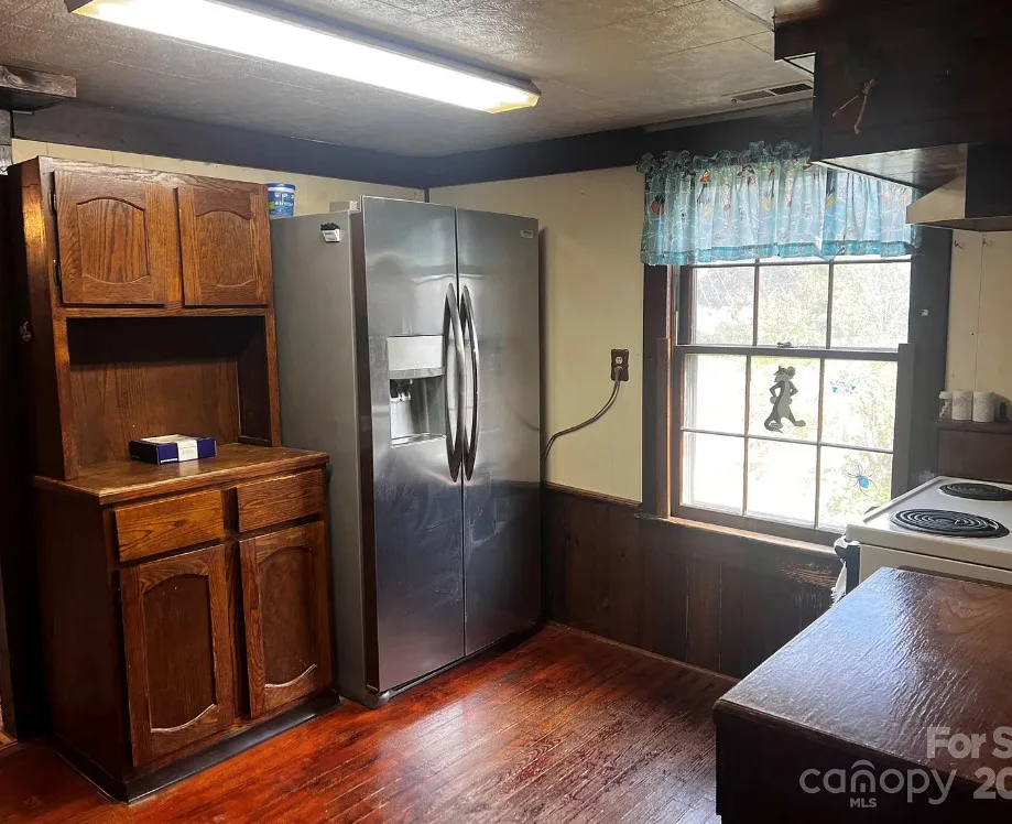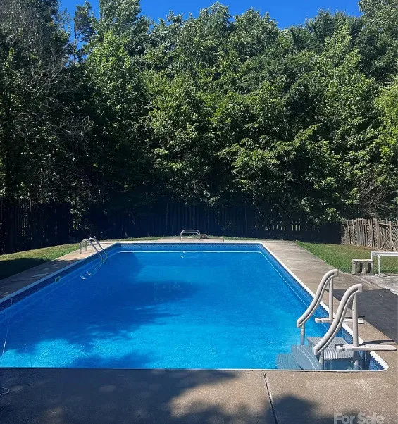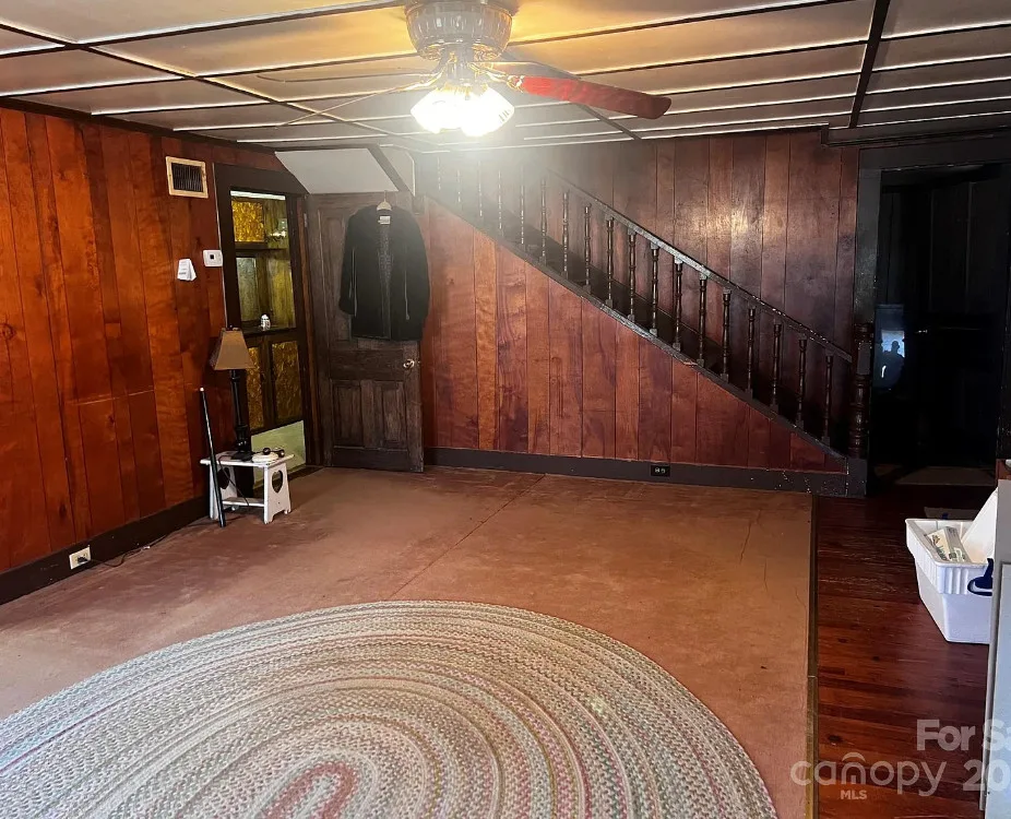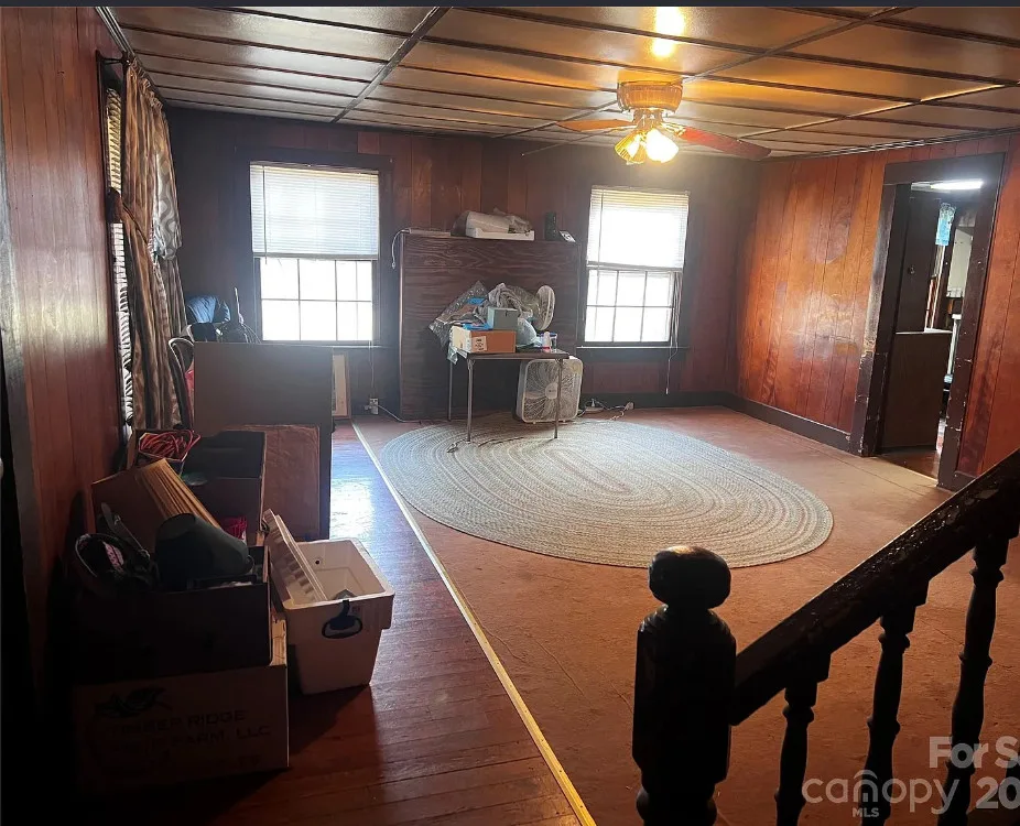 That looks like a nice pool! The house could use some work and lightening up inside. The house was built in 1900. It is located on .65 acre in Faith, North Carolina. The house features a covered front porch, some original wood flooring and baseboards. Getting rid of paneling and drop ceilings would really help this house. Four bedrooms, two bathrooms and 1,877 square feet. $150,000