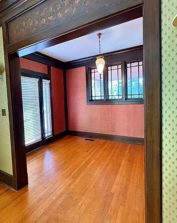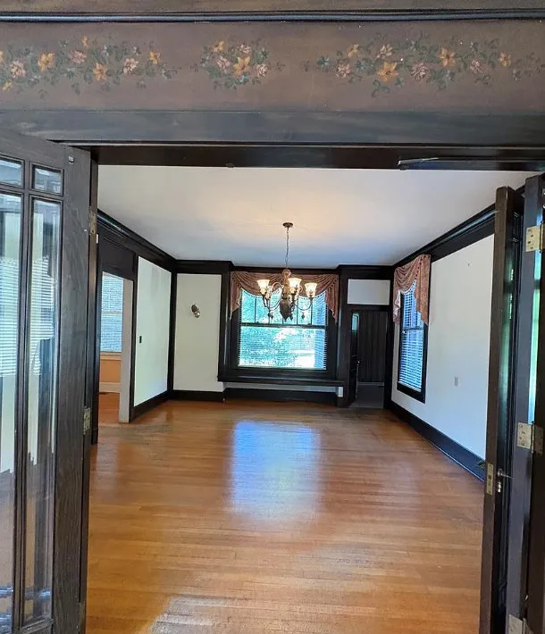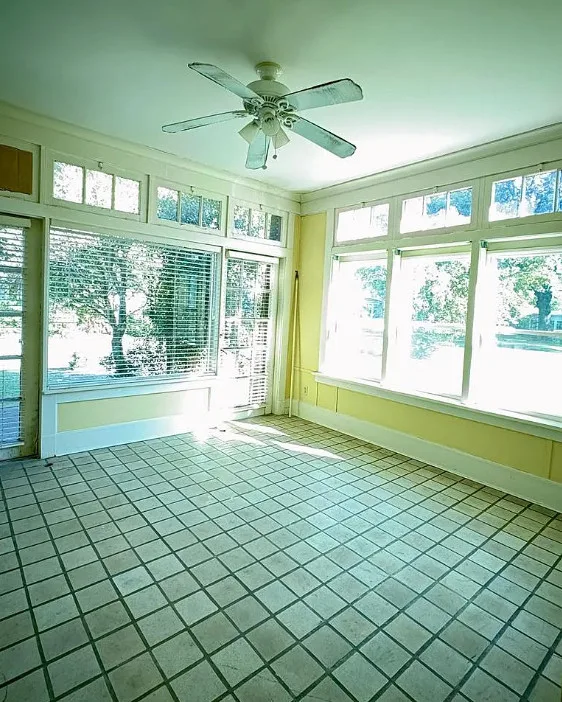 This house has a nice interior! Big yard too! The house was built in 1920. It is located on 1.05 acres in Osceola, Arkansas. The house features a porte cochere, pretty wood floors, original windows, vintage light fixtures, baseboards, crown moulding, french doors, built-in china cabinet, spacious kitchen and a large sunroom. There is a detached garage and a detached storage shed on the property. Four bedrooms, two bathrooms and 3,167 square feet. $185,000