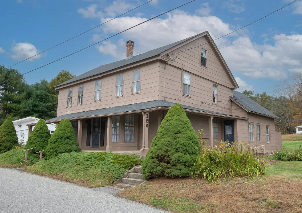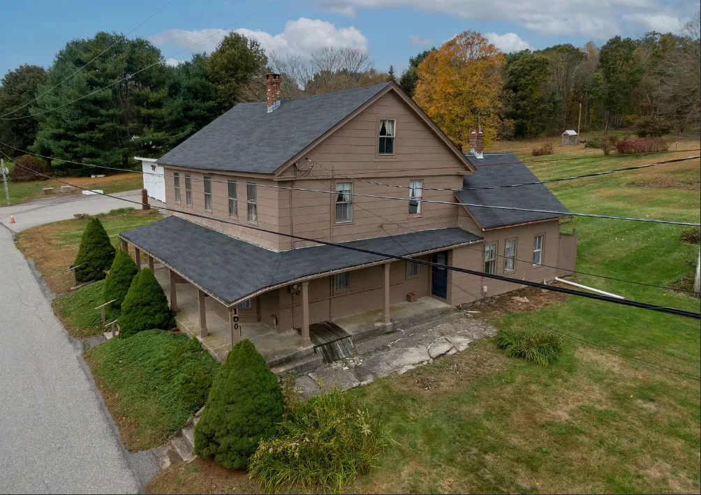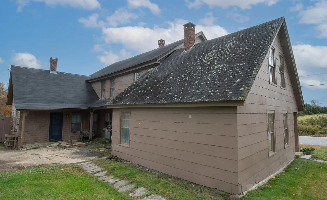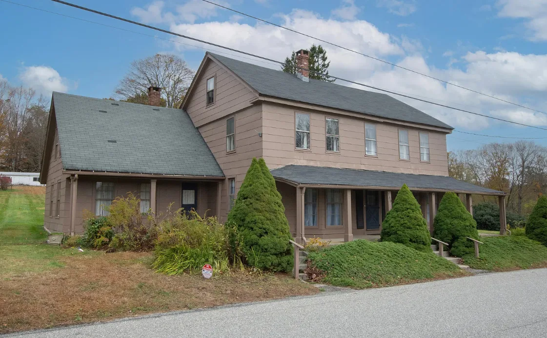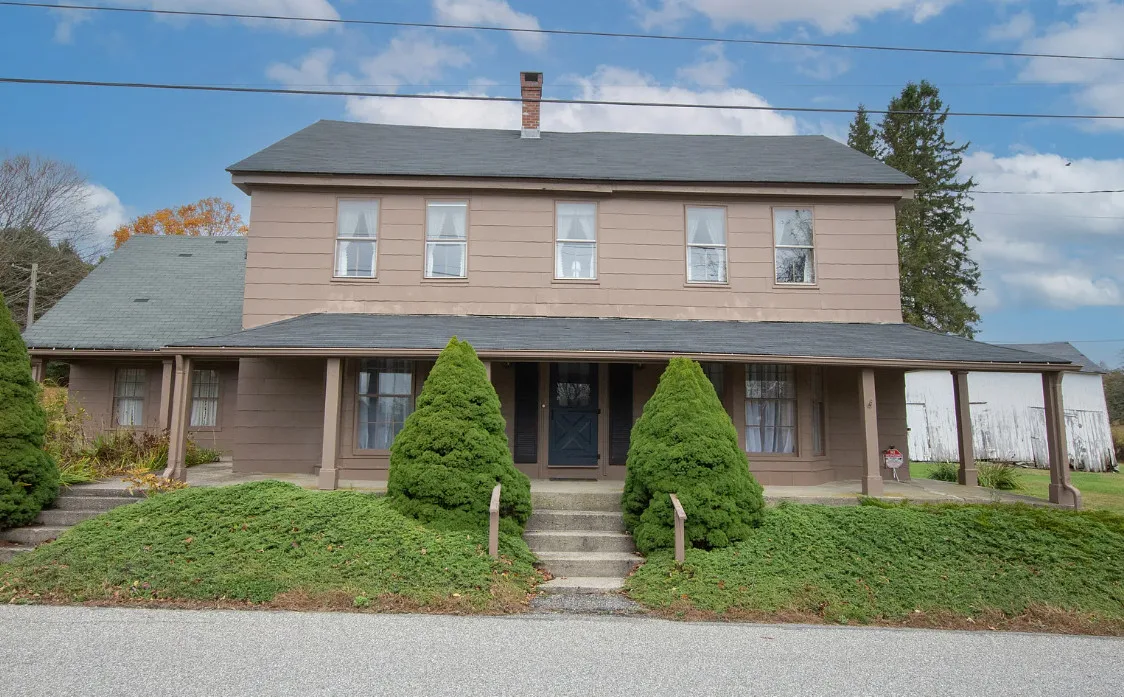There are 50-60 mature blueberry bushes on this property! 200 year old apple trees also. The listing says this house has foundation issues. At first glance, I’m not seeing anything glaringly obvious. Going to guess there is a basement and that is where it’s most noticeable. The house was built in 1785. It is located on four acres in Windham, Connecticut. The house features two covered front porches, some wood floors and a nice staircase. Most likely there are wood floors underneath all of the carpeting. There are a few outbuildings on the property. Street view is really pretty! Six bedrooms, two bathrooms and 2,634 square feet. $179,900