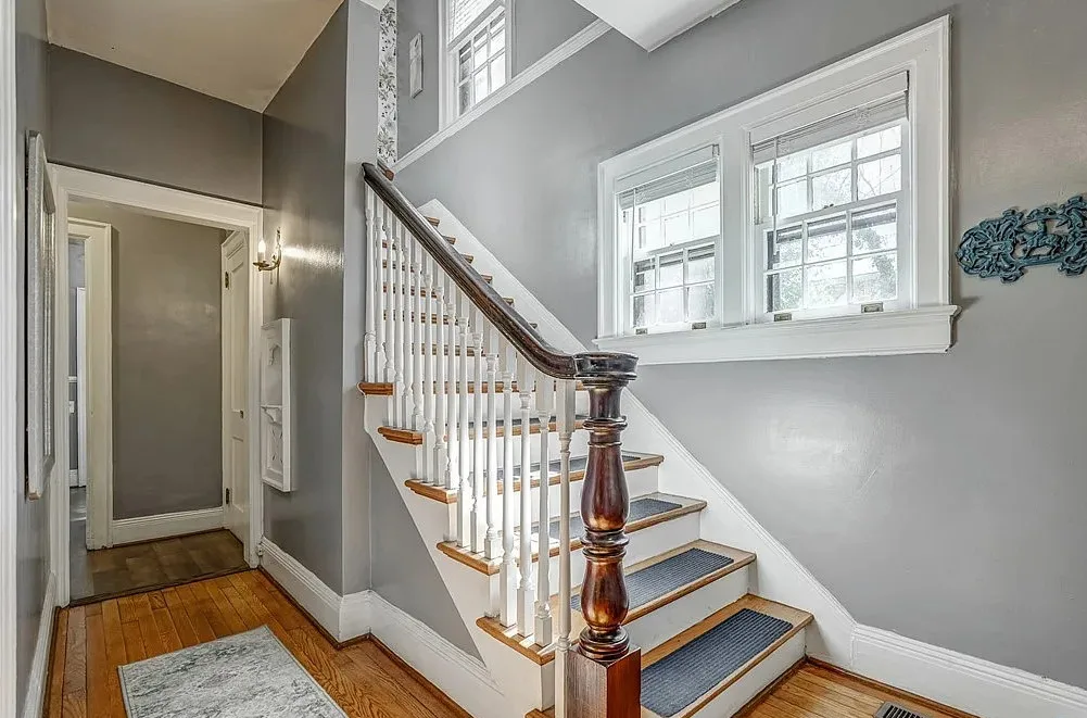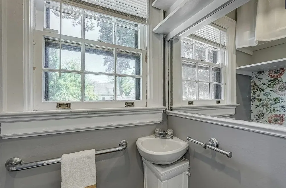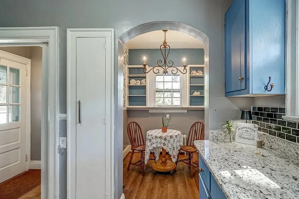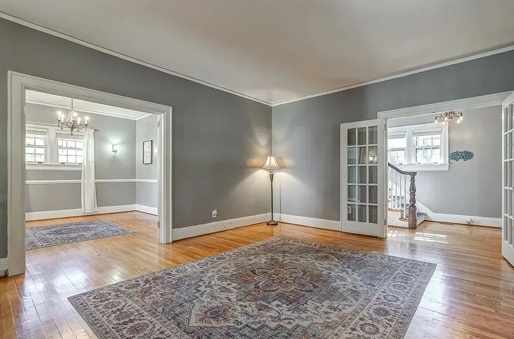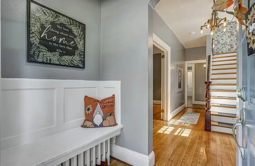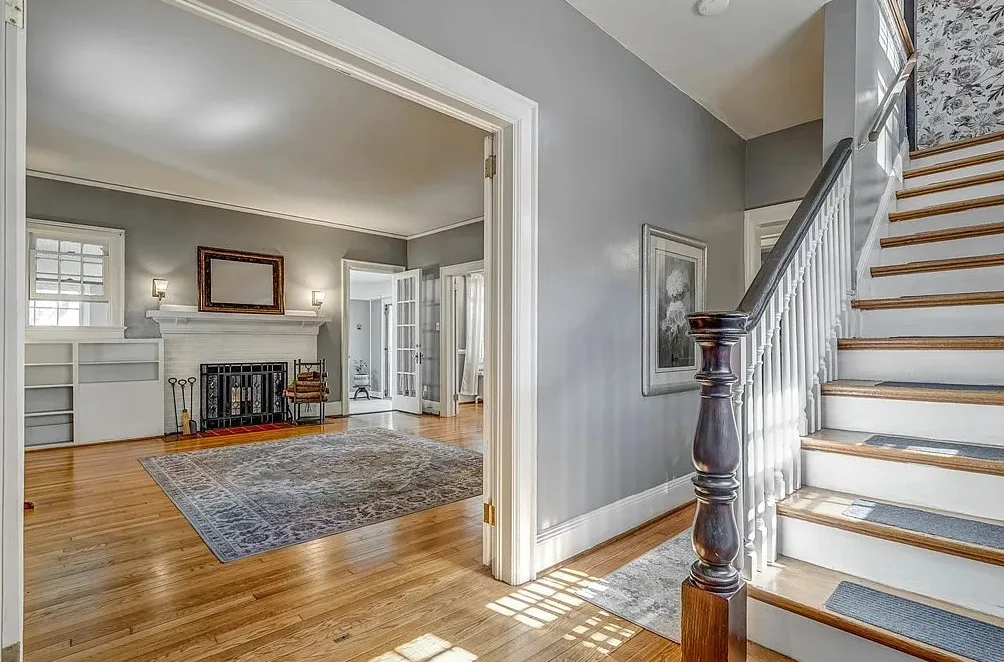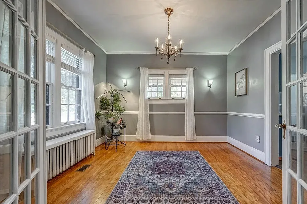 This house has a pretty interior! Nice yard also. The house was built in 1927. It is located on .33 acre in Hopewell, Virginia. The house features original wood floors, built-in seating, wide baseboards, telephone nook, french doors, chair rails, crown moulding, nice eat in kitchen area and a spacious kitchen. Three bedrooms, three bathrooms and 2,039 square feet. $334,950